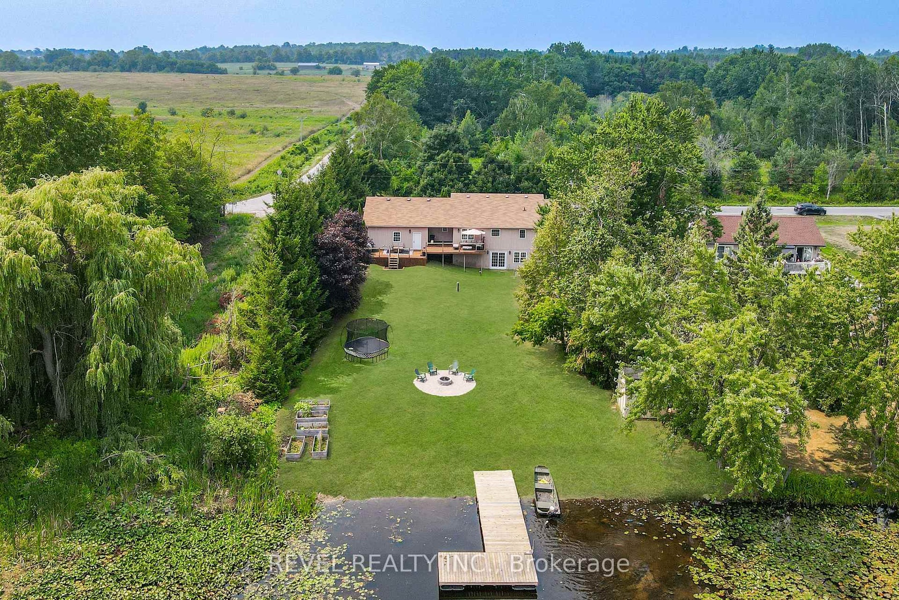 Stunning Modern Board & Batten Bungalow with Walkout Basement & Waterfront Access. Welcome to this immaculate, open-concept 3-bedroom, 3-bathroom bungalow, perfectly situated in a year-round waterfront community on beautiful Lake Scugog. Meticulously updated throughout, this home offers a bright and modern aesthetic with elegant engineered hardwood floors, oversized windows, and serene water views from every angle. The heart of the home features a newly renovated white kitchen with solid surface countertops and ample cabinetry, flowing seamlessly into a cozy living room with a stylish fireplace perfect for relaxing or entertaining. Bonus mudroom between house & garage with storage & powder room. All bathrooms have been thoughtfully updated, main bathroom has double sink vanity, heated floors, walk in shower & semi ensuite to primary suite, a full 3-piece bath in the fully finished walkout basement, complete with a walk-in shower and heated floors. Downstairs offers incredible versatility, featuring a large finished laundry room, propane fireplace, plenty of storage, and potential for a fourth bedroom or flex space. Step outside to your private 100 shoreline, complete with mature trees, landscaped gardens, and a 2-tier deck leading to your personal dock ideal for boating, fishing, or simply soaking in the views. The oversized double garage with pony panel is perfect for hobbyists or extra storage. Located on a municipal road with school bus service, this home is ideal for families, retirees, or anyone seeking a peaceful waterfront lifestyle. Enjoy four seasons of fun with boating, fishing, skating, and more right at your doorstep. Dont miss your chance to own this turnkey waterfront gem.