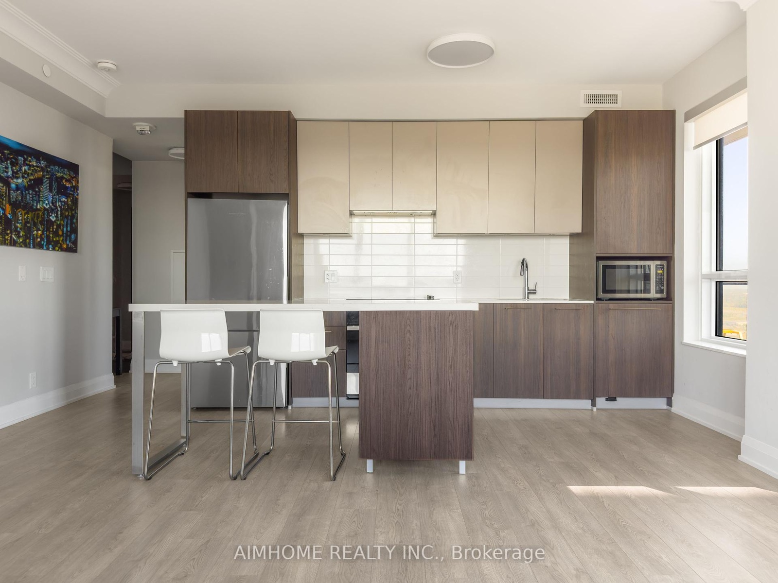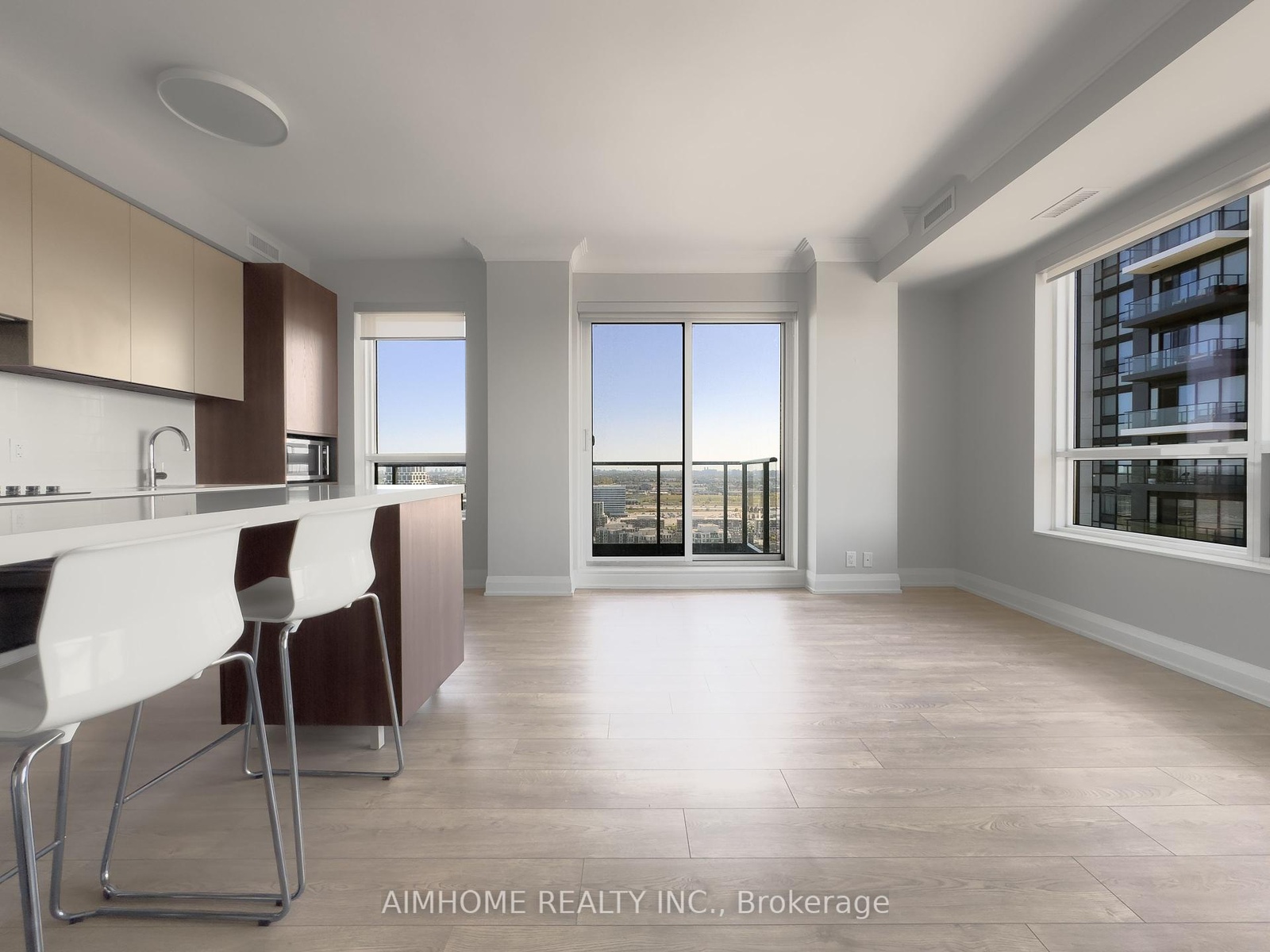 Stunning one year new two bedrooms + den, one parking suite in the heart of Unionville / Downtown Markham. Spectacular south-west corner view in all directions of the river, park, skyline and sunsets. Enjoy this fabulous layout with split bedrooms, two full washrooms. Bright, open concept living space and modern kitchen with full-size stainless steel appliances, island with granite countertop. Embrace sunshine and blue sky from all windows and full-length balcony. One parking, One locker, and internet included. Tenant pays utilities. A luxurious building with 24 hour concierge, indoor pool, gym, rooftop terrace with BBQ, party room, pet wash, ample visitor parking and more! Just steps to Whole Foods, LCBO, close to Unionville GO Train station, VIP Cineplex, Main Street, abundant restaurants and shopping. Transit in front of building. Minutes to Hwy 407. More and more!