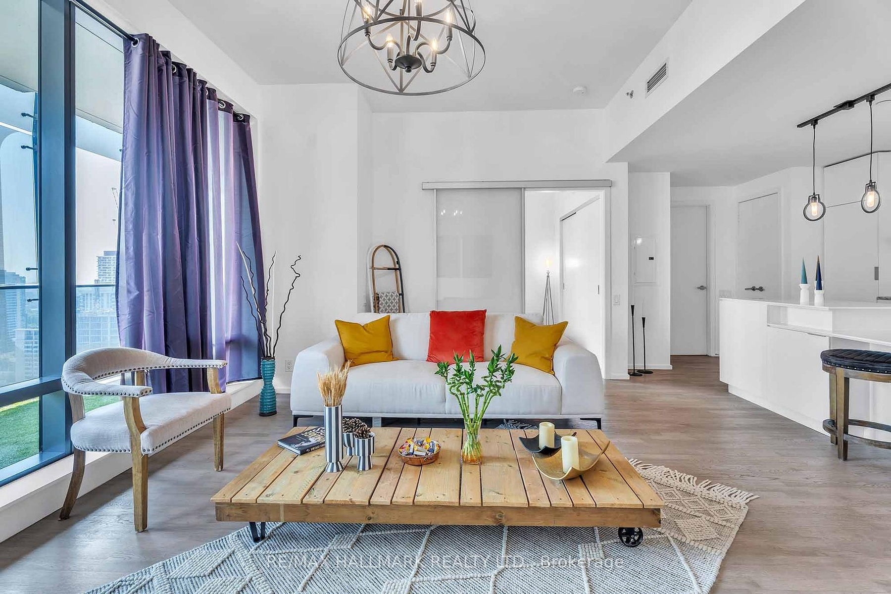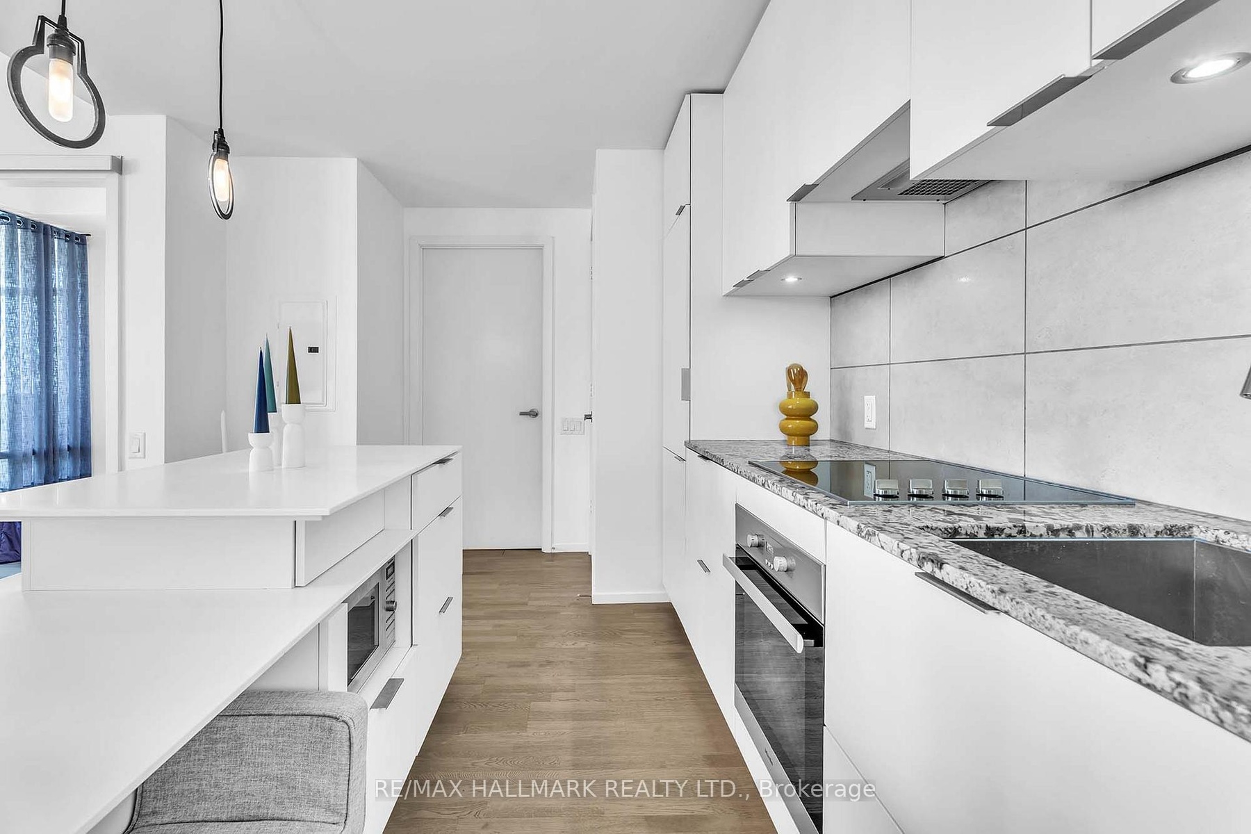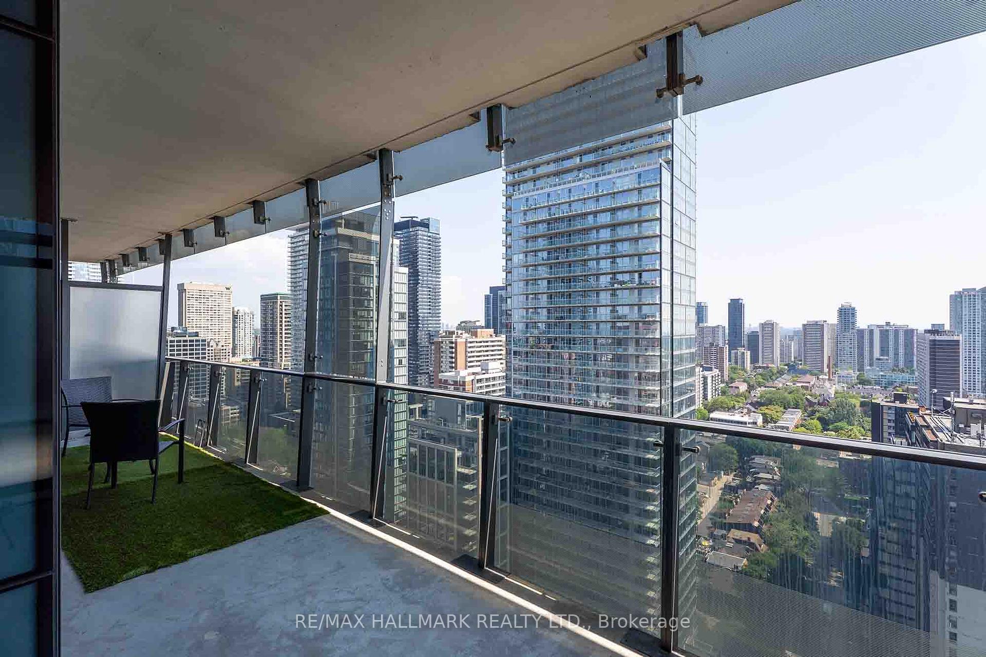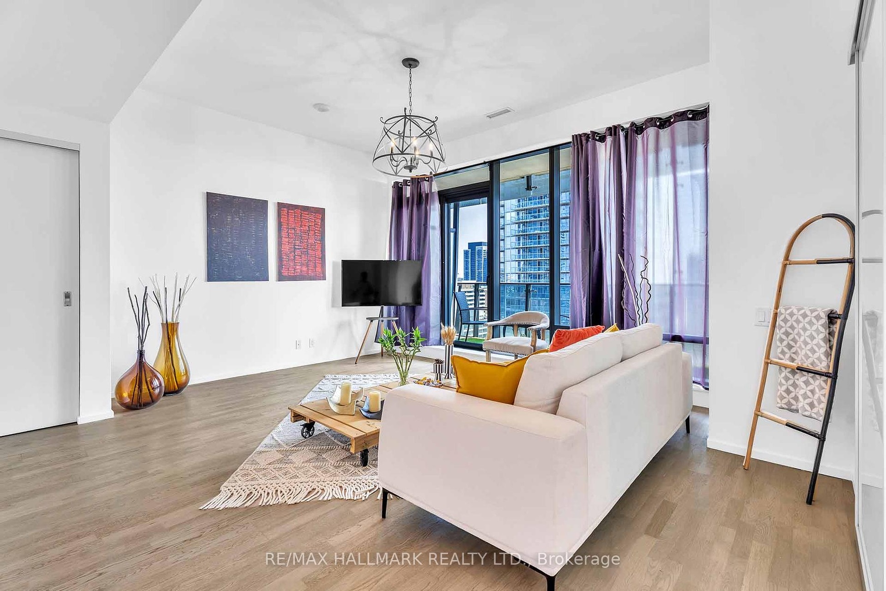 Signature Residence In Toronto's Prestigious Bay Street Corridor. This Exquisite One-Bedroom Suite, The Largest Of Its Kind In The Building, Redefines Urban Sophistication With Breathtaking East-Facing Panoramic Views Framed By Floor-To-Ceiling Windows And Bathed In Natural Light. Featuring Approximately 658 Sq. Ft. Of Meticulously Designed Space With Soaring 9-Foot Ceilings, The Home Combines Modern Elegance With Functional Versatility, Offering A Seamless Open-Concept Layout And The Option To Convert Into A 1+1. The Gourmet Kitchen Showcases Integrated Miele Appliances, A Sleek Built-In Island With Extended Dining Space, Engineered Hardwood Flooring, And Ambient Designer Lighting Throughout. The Bedroom Is A Tranquil Retreat With A Custom Closet System And Recessed Lighting, While The Expansive Balcony Provides A Private Sanctuary To Enjoy Unobstructed City Views. Residents Indulge In A Collection Of Five-Star Amenities, Including A State-Of-The-Art Fitness And Yoga Studio, Rooftop Garden With BBQ Lounges, Elegant Party Lounge, Home Theatre, Games Room, Sauna, Visitor Parking, 24-Hour Concierge, And An Elevated Sky Terrace Overlooking Toronto's Iconic Skyline. Perfectly Situated Steps From Yorkville, Queen's Park, The University Of Toronto, Eaton Centre, And Subway Access, This Exclusive Residence Embodies The Ultimate Downtown Luxury Lifestyle Surrounded By Toronto's Finest Shops, Cafés, And Culinary Experiences.