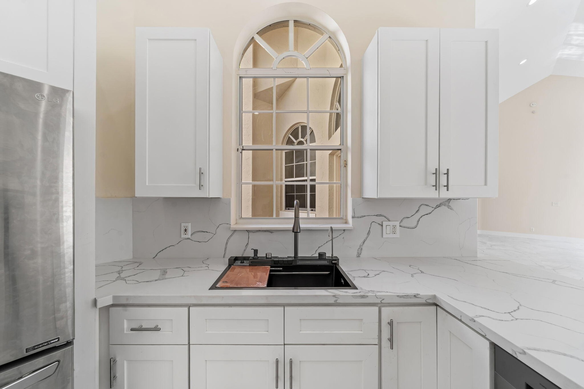 Stunning renovated home in the prestigious gated community of Broken Sound. This modern residence features a custom kitchen with waterfall counters, high-end appliances, and high end kitchen sink. Large porcelain floors, soaring ceilings, and updated showers with illuminated mirrors that add a touch of luxury. Enjoy a private patio with new landscaping, Access world-class amenities including golf, spa, dining, fitness, tennis, and more. Seller is highly motivated and offering 50% off the mandatory membership fee. Centrally located near A-rated schools, shops, and dining. Broken Sound is ranked among the Top 50 Platinum Clubs in America!