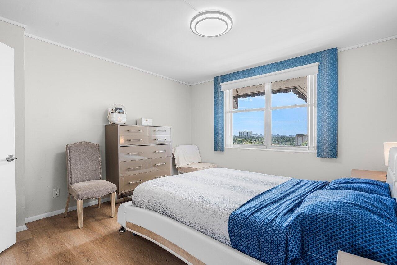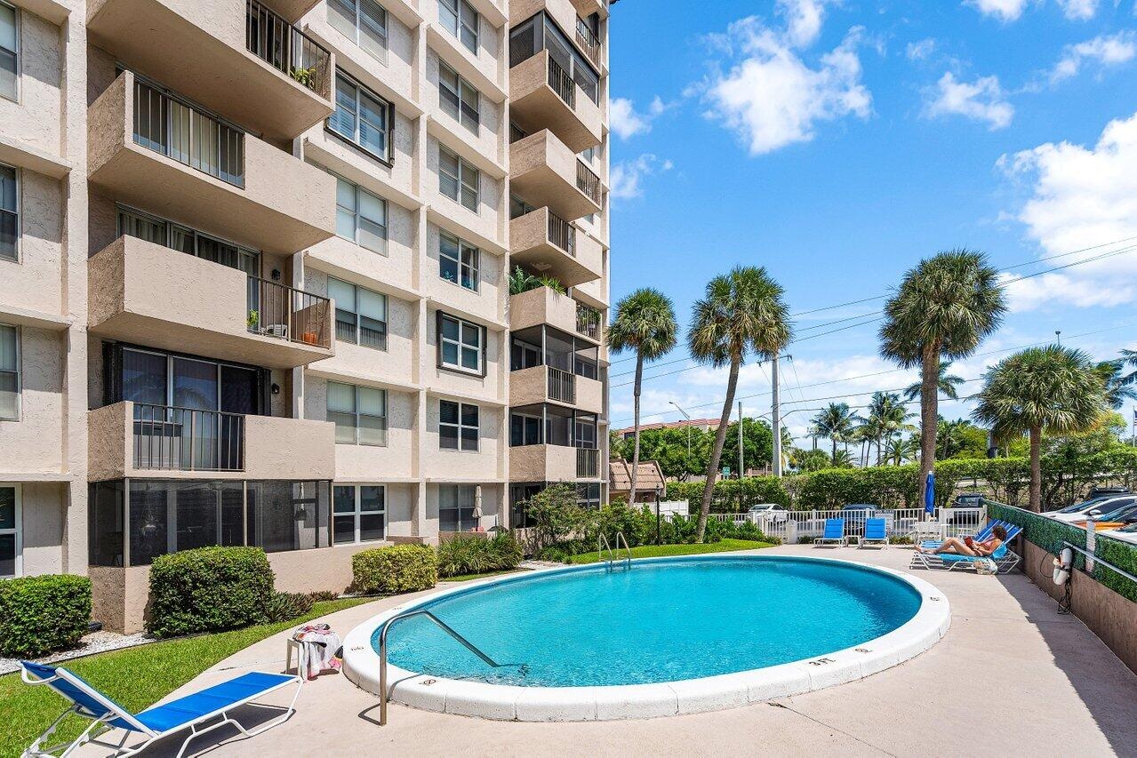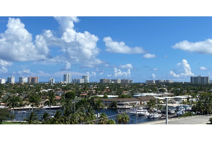 Penthouse condo with inter coastal and downtown views in desirable Pompano Beach. 1 bedroom, 1 bath, gated community with 24 hour security. Includes cable and water. New laminate floors, with neutral paint throughout condo. Stainless steel appliances, large closets, custom wall mirrors in dining room, recently updated AC and hot water tank. Extra storage in building. Enjoy the Florida sunshine with the tropical entertainment area with two pools, BBQ grills, fire pit, tiki hut, gym & rec. room. Assigned parking, close to restaurants, shopping and airport. Minutes from beach. Rare penthouse property with many amenities.