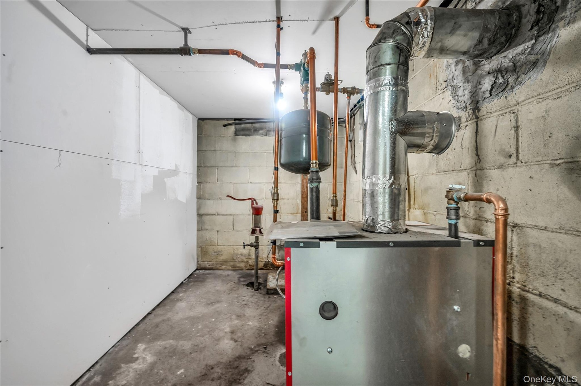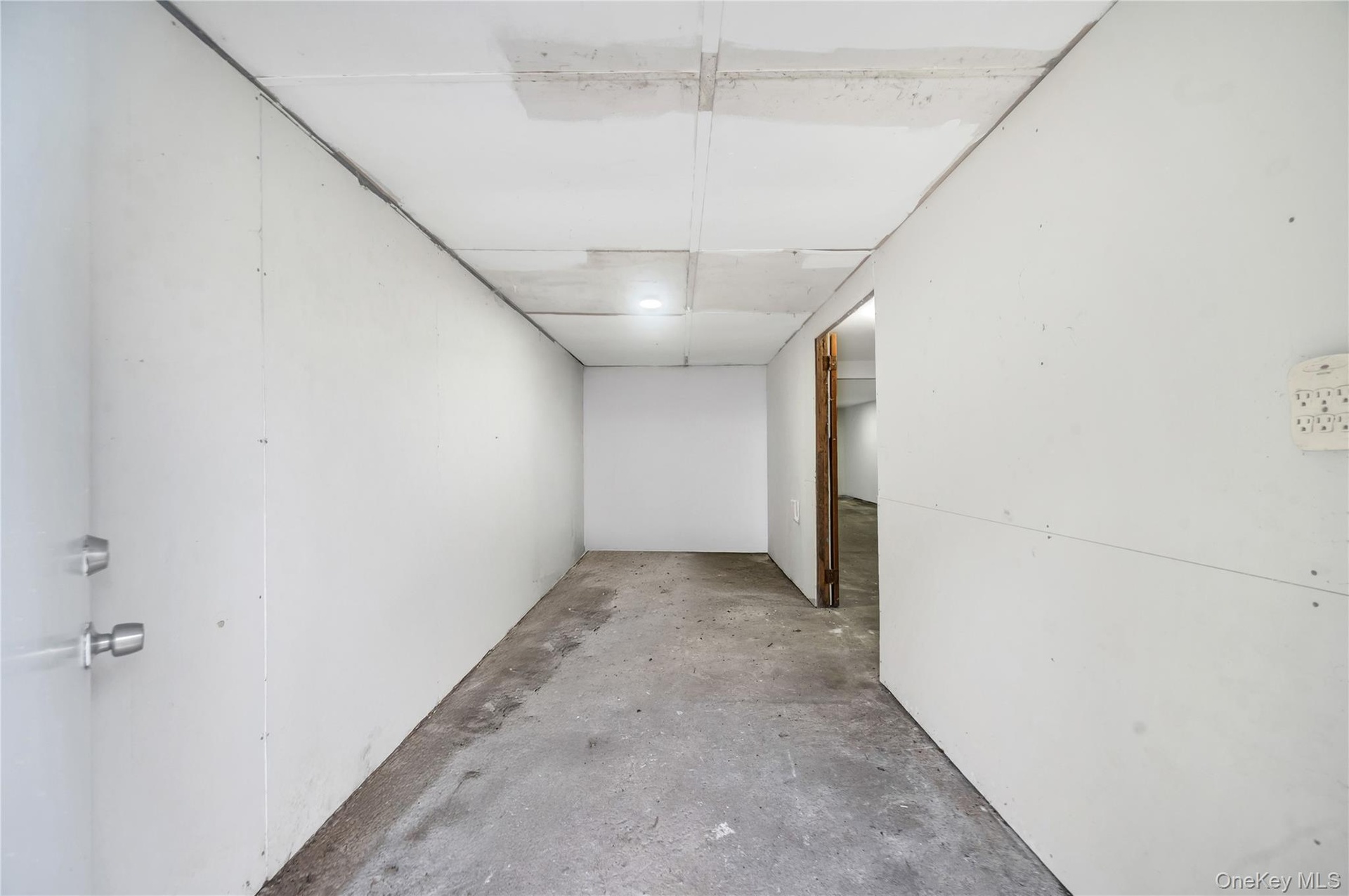 - Finished below grade area with concrete block wall and electric panel