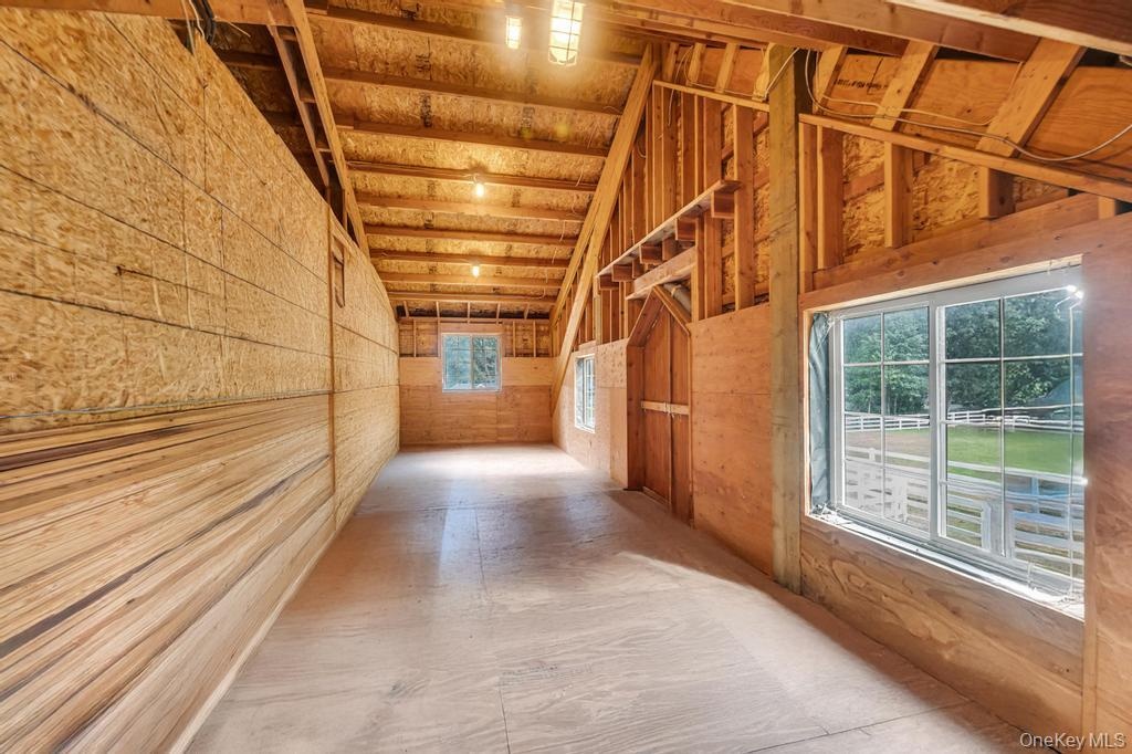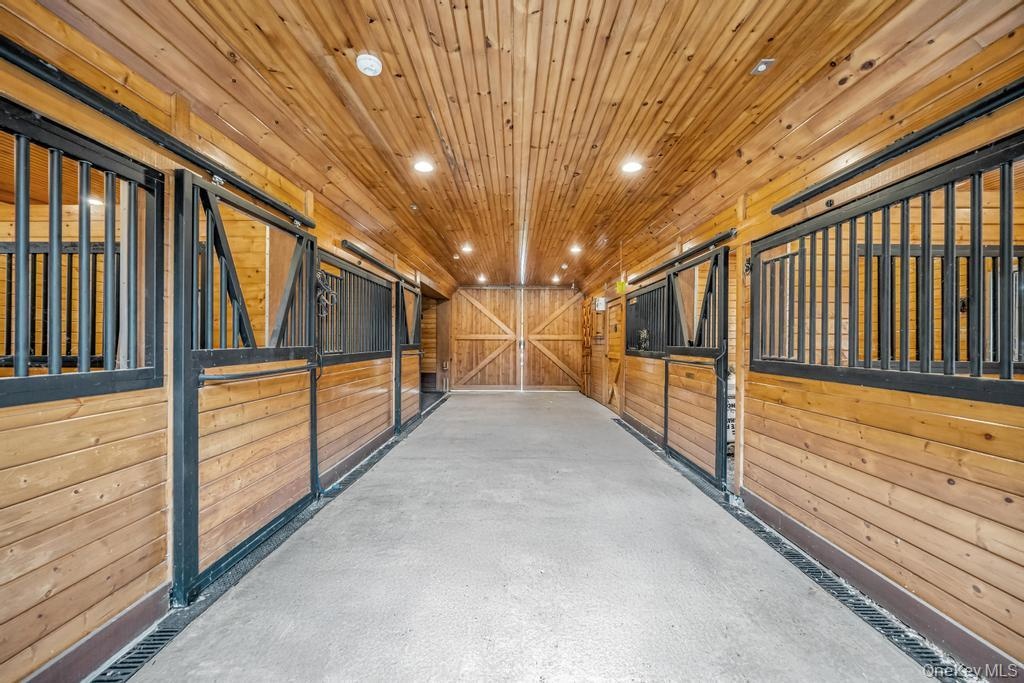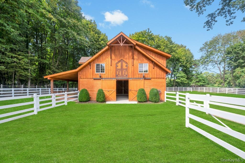 For horse enthusiasts: a meticulously maintained barn with 4 heated stalls, tack room, washroom, and hayloft; plus a PVC-fenced paddock with lighting and irrigation for year-round care.