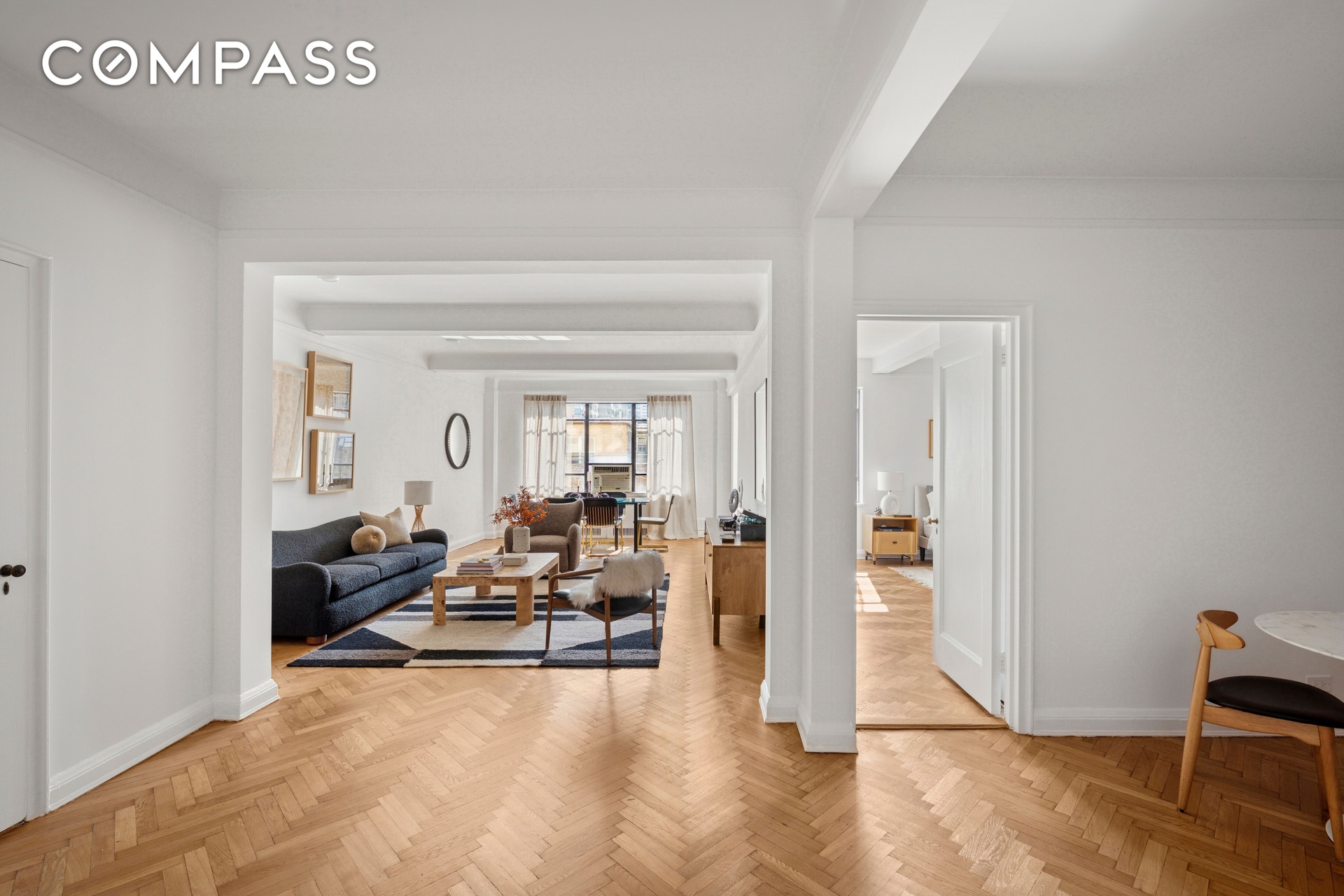 The home is adorned with original herringbone floors, elegant molding, and classic high beamed ceilings that exude pre-war charm. It's like living in a piece of history, equipped with all the modern conveniences. Don't miss this opportunity to make this delightful residence your own!