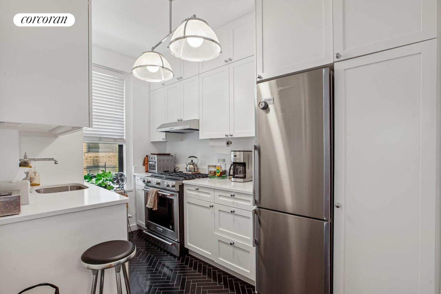 DescriptionMove right in!!!! Charming mint condition 1 Bedroom 1.5 Bath home in an intimate elevator Coop in Murray Hill. Enter the foyer with a hall closet to find the fully renovated windowed Kitchen with a Blomberg refrigerator & dishwasher, KitchenAid 5 burner stove with a hooded vent and new white cabinetry with stainless hardware. The Kitchen also has a full pantry. Straight ahead is a windowed renovated half Bath for guests. The generous Living Room has a decorative fireplace and leads to the Bedroom which has South and West exposures and a renovated en-suite Bath with a claw foot tub. With only four homes per floor, this quiet home affords privacy and also boasts large windows and good storage with hardwood floors throughout.