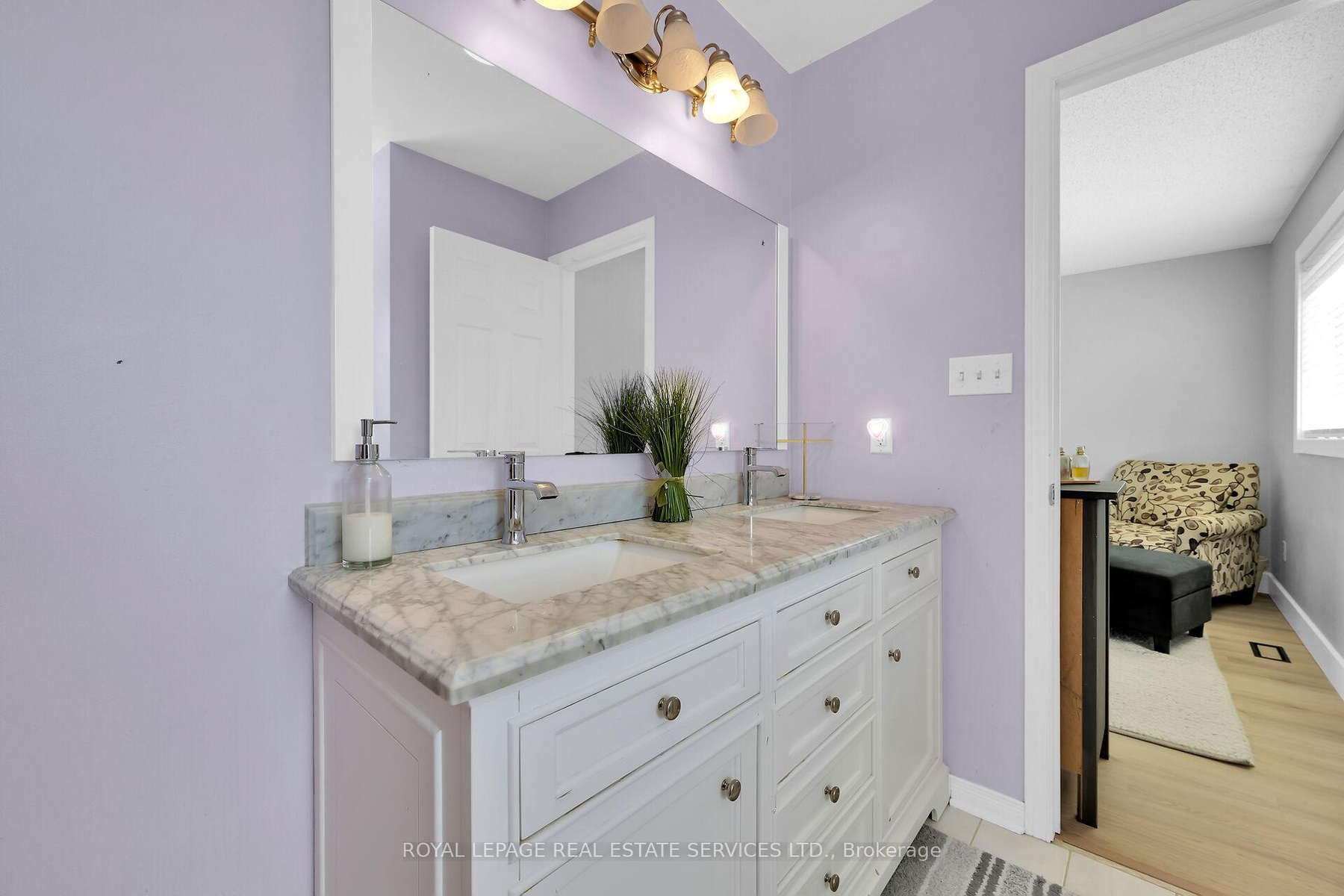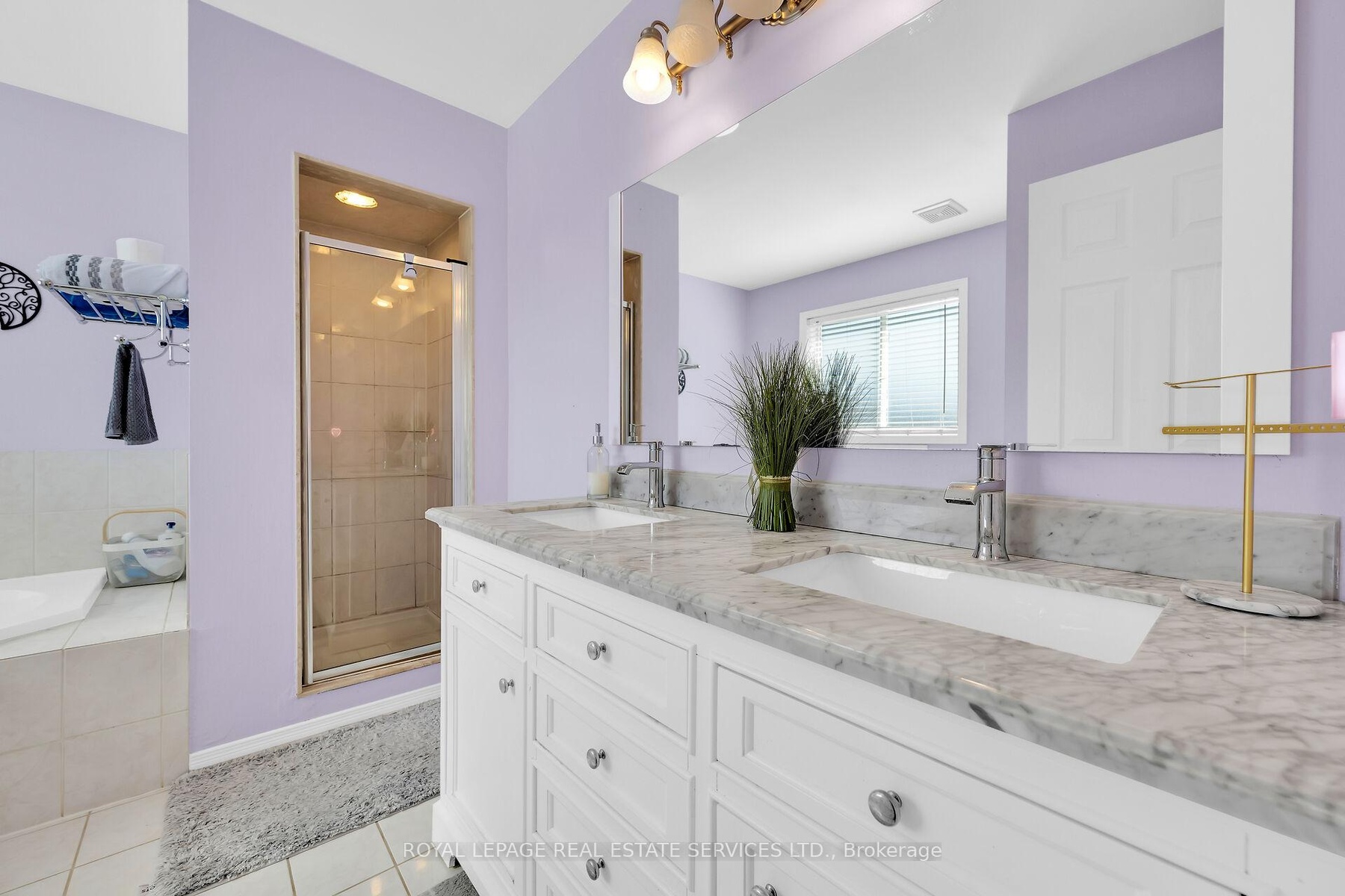 Welcome to South Burlington living at it's best! This Greenpark built larger end END UNIT freehold 3 bedroom, 2.5 bath townhome has a fantastic floor plan. Great curb appeal with a cozy porch, this immaculate home offers an open concept floor plan with versatile use of the rooms. Separate living and dining rooms and a beautiful nook for breakfast overlooking a private backyard. The kitchen features a gas stove, white cabinetry with extra pantry wall, timeless quartz countertops and backsplash with stainless steel appliances. Walk-out to a patio with a spacious & private yard. Newly renovated wood stairs with wrought iron pickets! Upstairs, you'll find an expansive master bedroom with a walk-in closet and a luxurious ensuite with upgraded marble style vanity with double sink, separate shower and soaker tub. Two additional bright bedrooms, offer generous large closet space. 2nd bathroom with upgraded vanity. The lower level features a bed room with high ceilings with extra space work or exercise. Bonus large laundry room and cold cellar. Located on the border of Oakville and Burlington, minutes from highway, Appleby GO station, this home offers the best of lakeside living. lifestyle.