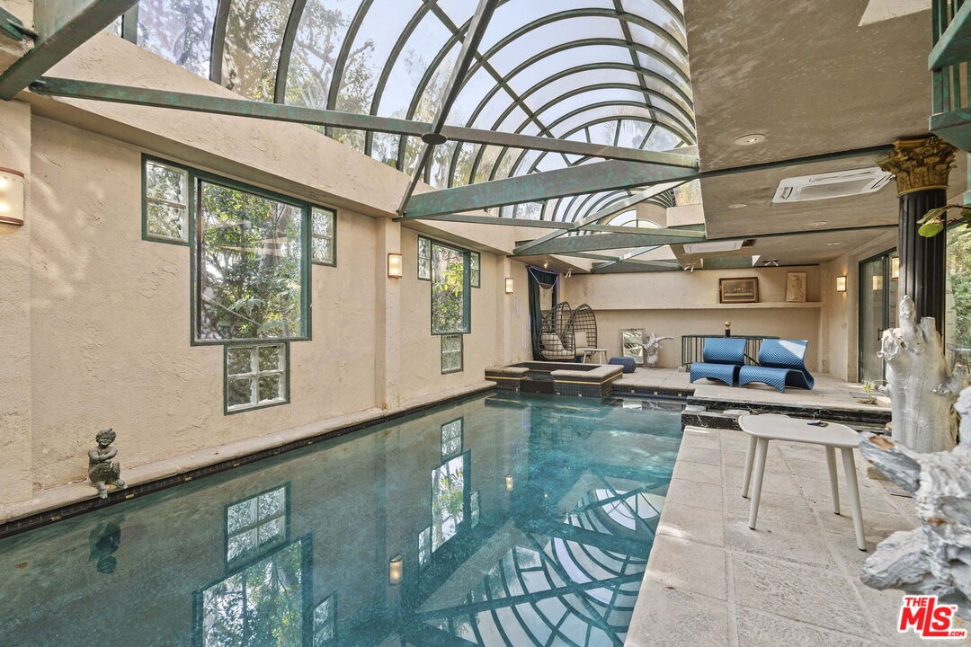 DescriptionWelcome to The Deco House an iconic residence now available for lease in the prestigious Bird Streets. Nestled at the end of a quiet cul-de-sac, this 5-bedroom, 5-bath home offers approx. 4,303 square feet of elegant interiors and seamless indoor-outdoor living. A sweeping travertine staircase with a spectacular Lucite railing by celebrated designer Charles Hollis Jones anchors the entry and sets the tone for the home's Hollywood pedigree. Generously scaled living and dining areas open to sun-drenched patios, while mature landscaping creates a private backdrop around the dramatic pool pavilion. Perfect for entertaining or retreating in style, this residence blends architectural character with everyday comfort. Located moments from Sunset Boulevard yet tucked away in a serene enclave, *FULLY FURNISHED* Elegance and sophistication blend seamlessly in this warm, stylish rental home. A glamorous travertine staircase, highlighted by a striking Lucite railing crafted by the renowned Charles Hollis Jones, sets the tone for timeless luxury. Impeccably designed, the spacious rooms are perfectly suited for grand entertaining, while the inviting patios are framed by lush, mature landscaping. At the heart of the property, a dramatic pool pavilion offers a serene escape. This fully furnished home boasts an impressive array of amenities, including an indoor pool, a private gym, a Jacuzzi spa, skylights that bathe the interiors in natural light, and a relaxing sauna. Recently renovated, the property also features brand-new, extra-large bathrooms crafted entirely from exquisite Dekton and marble, upgraded electrical systems, and recessed lighting throughout, enhancing both functionality and ambiance. Nestled at the end of a tranquil cul-de-sac in the prestigious Bird Streets area, this home offers a rare opportunity to rent a flawlessly restored architectural masterpiece. The tenant is responsible for the utilies.NeighborhoodMore listings: