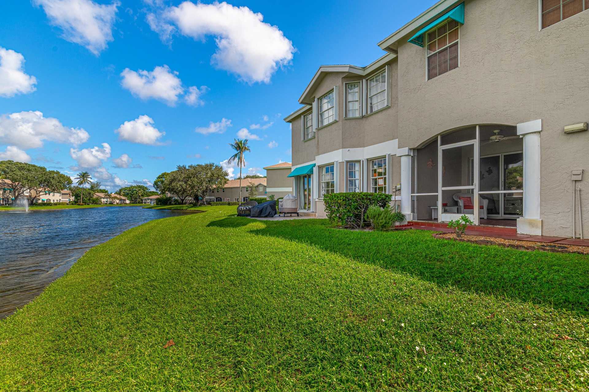 ONE OF THE LARGEST TOWNHOMES IN BOCA. ENDLESS LAKEVIEWS!! A beautifully maintained 2,268 sq. ft. townhome featuring the most favored layout in the Boca Gardens community.Step inside to find a spacious and inviting design with high ceilings and abundant natural light. This residence offers 3 bedrooms plus a bonus room (ideal as a 4th bedroom or office), 2.5 bathrooms, and an attached garage for convenience.The kitchen has been completely remodeled with modern upgrades, including soft-close cabinetry, convenient pullouts, and lazy Susans, along with stainless steel appliances and generous counter space. The primary suite features vaulted ceilings, a walk-in closet, and a beautifully remodeled bathroom with dual sinks and a frameless glass shower