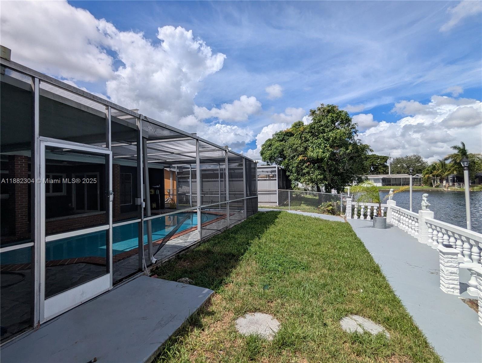 This well-maintained 3-bed, 2bath w/ man cave offers incredible versatility, fantastic views,and privacy that will ease your mind after a long day. Situated on a almost 7000 sq.ft. spacious lot w/ lake view, this home features a screened-in swimming pool, tiled patio,and a fenced backyard that provides privacy & plenty of space. Inside you’ll find ceramic tile in the kitchen and living room areas along with laminate flooring in the bedrooms.The interior layout is thoughtful with space for everyone.The kitchen boasts great size with eat in dining area, S.S. appliances, and a gorgeous view of both the pool and lakeside that you can enjoy all day and all night.For your convenience you have tank-less water heater,5 ton ac unit,laundry room,and an additional storage shed in the yard.CAll today