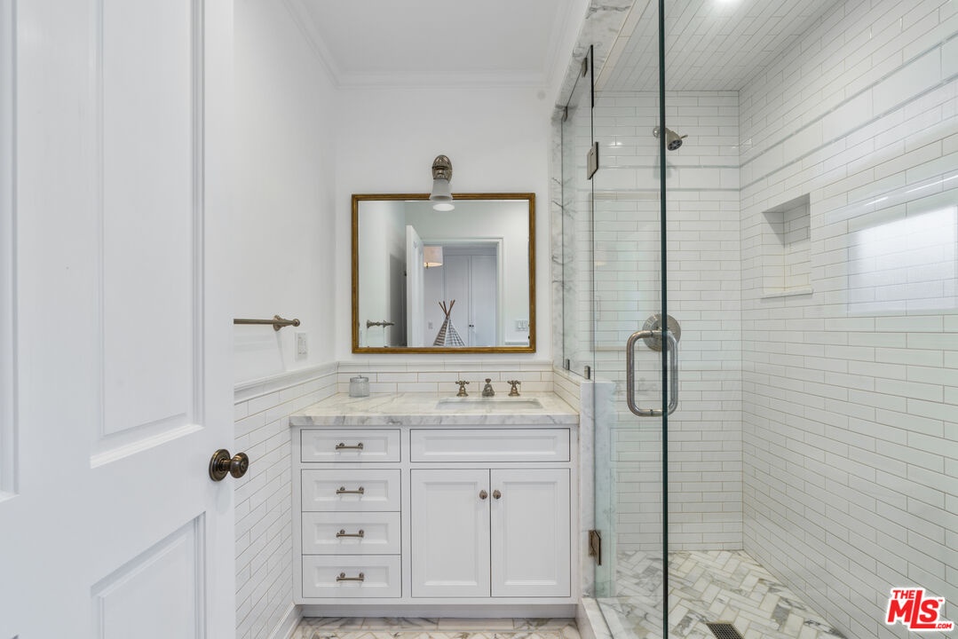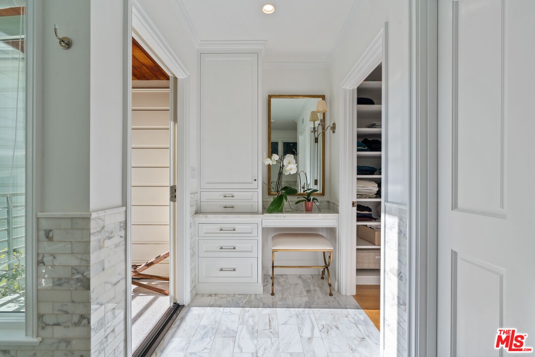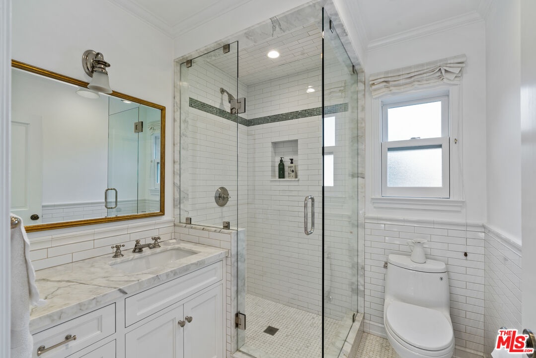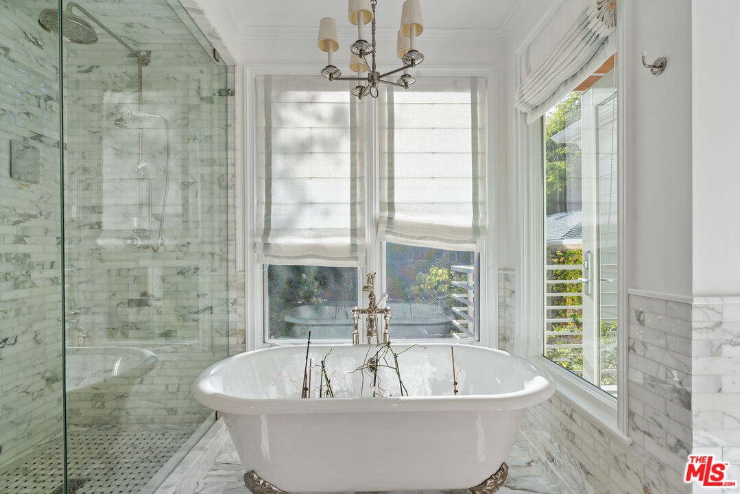 DescriptionWelcome to 643 Westholme Avenue, a charming Colonial in the Little Holmby area of Los Angeles, designed by acclaimed architect Frederic Wallace and meticulously reimagined by the current owner. This home spans an impressive 4,800 square feet, with an 800 sq ft art studio/office, crafted by noted architect Frederick Fisher, all situated on an elevated 8,555 square foot lot offering classic California indoor/outdoor living! Step inside to discover a seamless blend of tradition and modern elegance. Warm toned hardwood floors flow throughout the home, featuring a light filled living room, a classic fireplace, and perfect ambiance for gatherings. A sunny dining room flows to the cooks kitchen offering built-ins, premium appliances including Sub-Zero, Miele, and a Wolf range and cozy breakfast area with upholstered banquette perfect for family meals. A cozy family room, complete with a fireplace, custom built-ins opens and wall of glass opening to the flagstone patio and meticulously designed terraced garden, designed by noted landscape architect Laurie Loyce. Enjoy outdoor entertaining at its finest, offering a fire pit, fountain, kitchen, pergola and many citrus and fruit trees. A magical outdoor dining area beautifully accented with outdoor lighting for many al fresco evenings. This home offers 5-bedrooms, 5.5-bath, all en suite, providing privacy and convenience. The serene primary suite boasts vaulted ceilings, built-ins, a luxurious bathroom with a separate shower and tub, and Toto toilet. A private balcony overlooks the lush gardens. Perfectly sited amongst this idyllic garden setting is a separate 800 sq ft studio designed by Frederic Fisher with soaring vaulted ceilings, skylights, and a mini kitchen and bathroom offering a variety of uses - art studio, home office, guest house, screening space, etc...Additional features include a laundry room, water filtration system, 2-zone HVAC, a 2-car garage, but no direct access to the house.- perfect for a family, or anyone wanting true haven offering privacy, elegance, and sophistication. Adjacent to UCLA and Beverly Hills and central to all LA has to offer!Amenities- Balcony