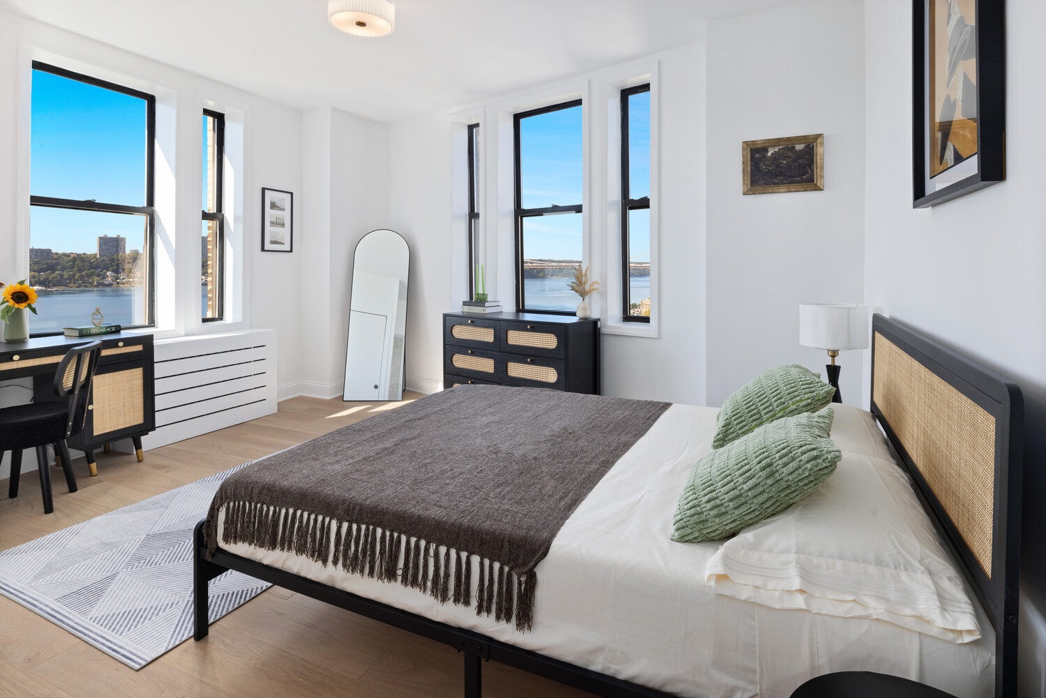 A lavish entertaining 30-foot-wide open large dining room and living room have oversized windows that span across this enormous space providing a tranquil and airy feeling as you catch the breeze coming from the Hudson River viewing open blue skies.All three bedrooms are well-proportioned with breathtaking views of the Hudson River that can accommodate king or queen size beds comfortably and furniture with ample closet space. The main bedroom has four closets, one a walk-in with an ensuite windowed bathroom.