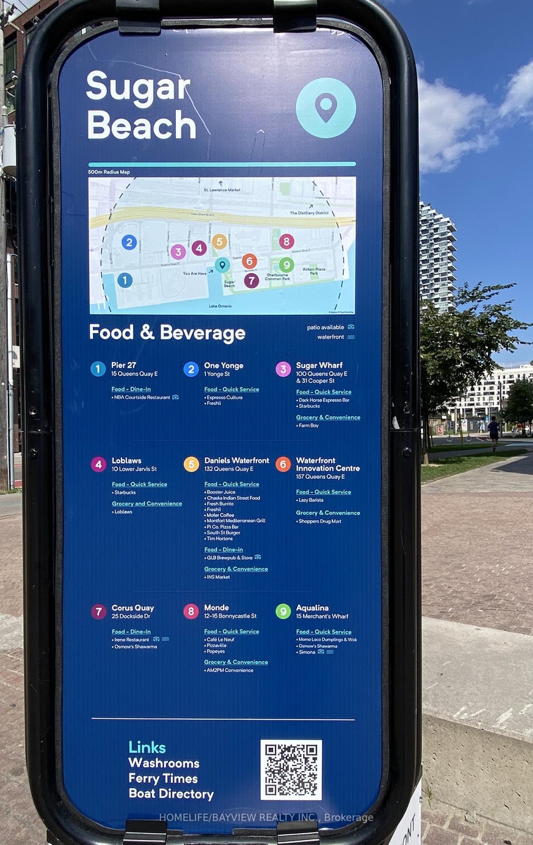 Rise to the top! Elevate your lifestyle in this unique & grand 2 bedroom + 2 washroom corner condo at Lighthouse West Tower by Daniels (approx 1243 sqft+ 289 sqft balcony space). Take in the stunning panoramic lake and city views from the expansive balcony. The Great Room - lends itself well to multi-purpose usage - whether its open concept or enclosed. Practical split bedroom plan, both bedrooms with walk-in closets. Featuring 10' smooth ceiling, engineered wood floors, floor to ceiling windows. Chef inspired kitchen with integrated Miele appliance package (Fridge, Cooktop, B/I Oven, B/I dishwasher). Bright & spacious unit, open concept layout, great for entertaining. 3 balcony walkouts. Amazing waterfront location- steps to Loblaws, Farmboy, Shoppers Drug Mart, Restaurants, Starbucks, Cafes, Banks, George Brown College, Sugar Beach, Harbourfront, St. Lawrence market, Martin Goodman Recreational Trail. Easy access to transit, Union Station, PATH system, Gardiner, DVP, Lake Shore Blvd. Short walk to Financial District, Distillery District, Eaton Centre. **Premium Tandem parking space. *** Owner's Furnishings can be included for a true turn key possession.*** Superb building amenities: 25,000 sqft of club style facilities on 3rd & 11th floor: Fitness centre (weight resistance area, yoga/pilates, cardio, stretch and dance areas), Outdoor pool, outdoor tennis / basketball court, barbecue terrace, garden prep studio & zen garden, community gardening plots, party room, catering kitchen, fireside lounge, social club, party room theatre room, arts and crafts studio.