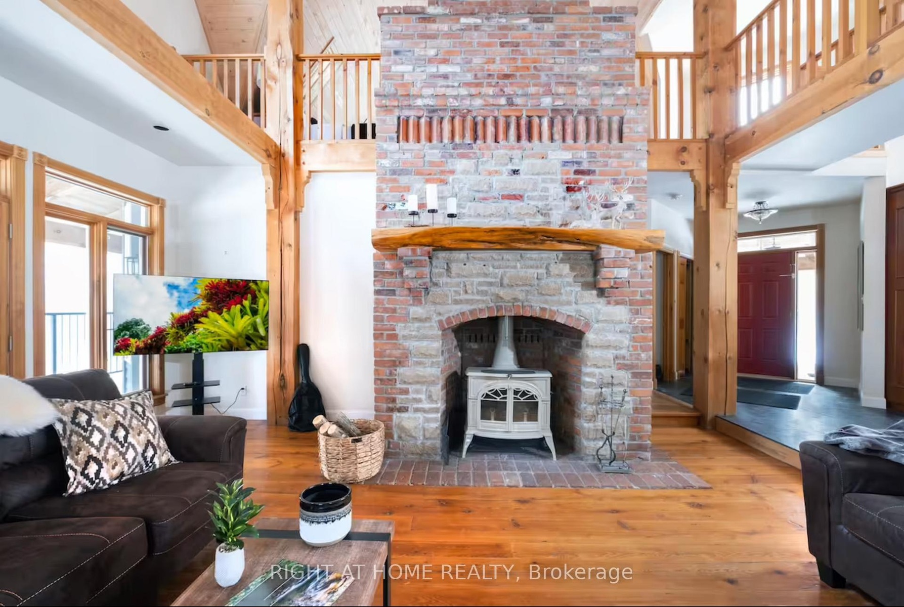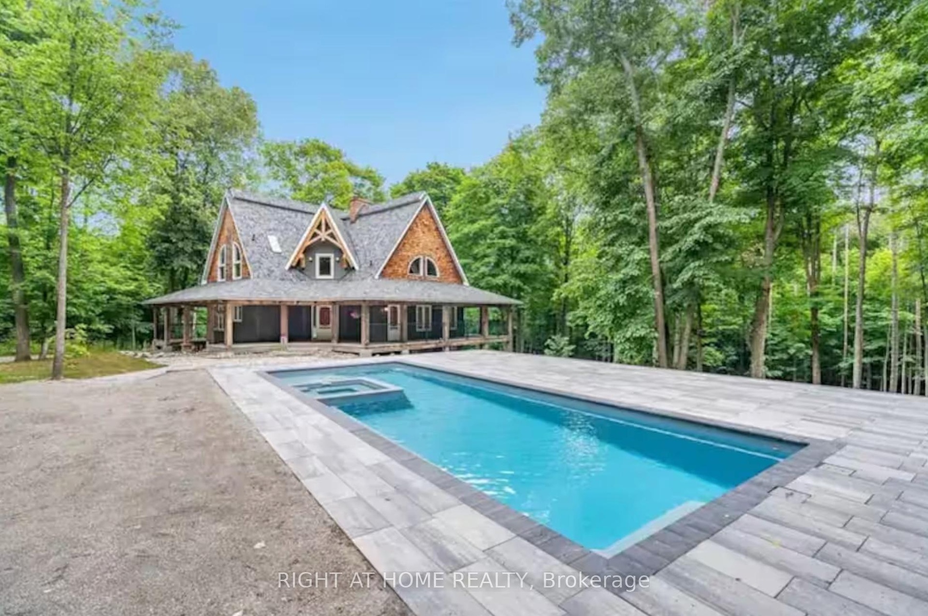 Welcome to this secluded custom Timberframe retreat, set on nearly 100 acres of pristine land surrounded by mature trees, farmland, and a tranquil pond. This architectural gem showcases soaring 28 ceilings, a dramatic floor-to-ceiling fireplace, and an open-concept layout filled with natural light. The main floor offers a spacious bedroom and mudroom with shower, while the loft-style primary suite boasts an 18 ceiling and skylights. A 1,300 sq. ft. wraparound deck extends the living space outdoors, leading to a true backyard oasis complete with a newer inground pool (2021) and hot tub.With 3,328 finished square feet, the fully finished walkout basement provides excellent in-law suite potential, featuring two additional bedrooms, a large recreation room, office, bathroom, and the option for a second kitchen. This property offers endless lifestyle and investment opportunities whether as a private family retreat, a short-term rental destination, or future development potential. Just minutes from Wasaga Beach and a short drive to Barrie and Collingwood, this is a rare chance to live in your own private paradise while securing an exceptional long-term investment.