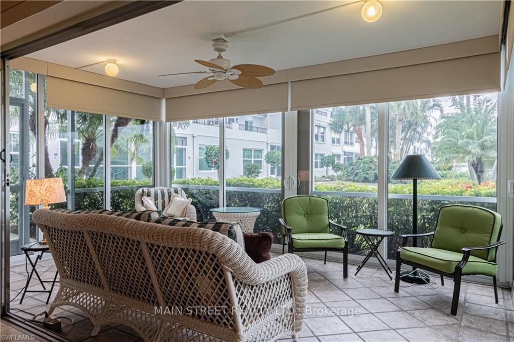 This partially furnished, light and bright 1st floor unit in Harborside Terrace in Park Shore provides panoramic landscaped views from your private climate controlled lanai with impact sliding doors.