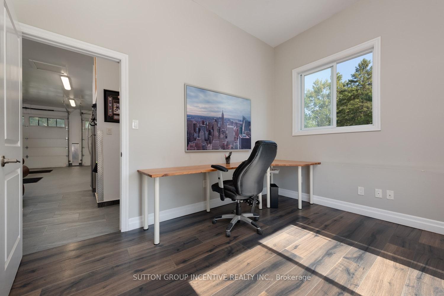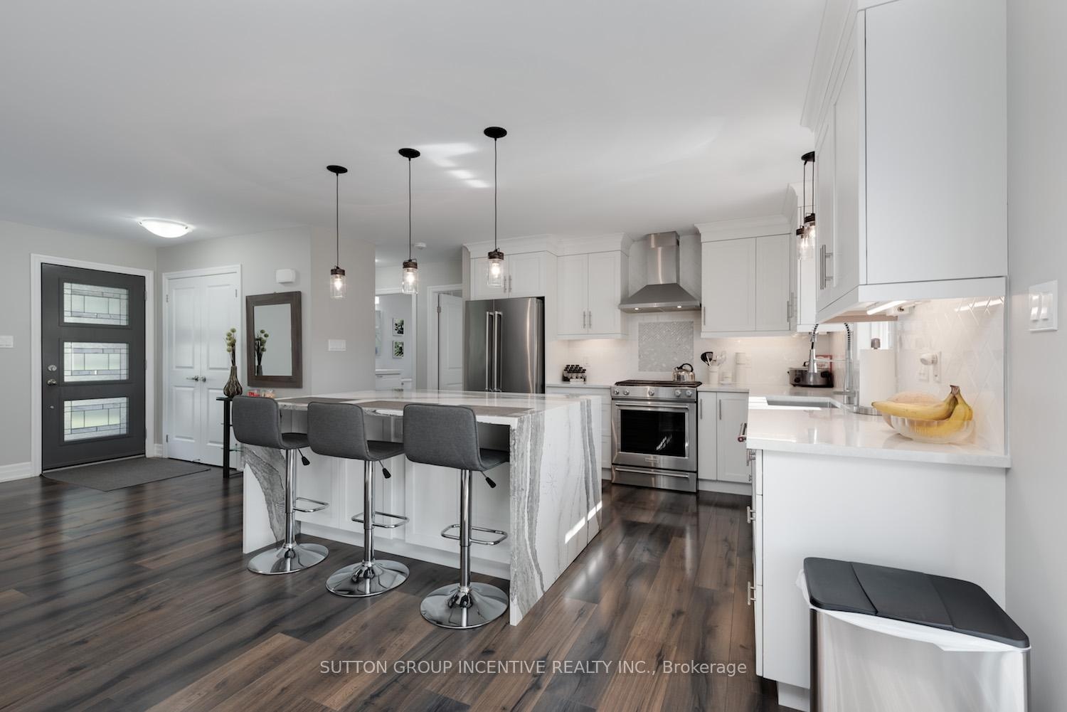 Whether youre a contractor running a business, a hobbyist needing serious workspace, or a family seeking flexible multi-generational living, this property delivers. A new in 2019 875-sq-ft detached shopwith two overhead doors, side-mount openers, heated floors, office, and a two-piece washroomoffers the ideal setting for a home-based business, workshop, or hobby area. A self-contained in-law suite with its own entrance provides private, comfortable space for adult children, parents, or guests. Natural gas servicea rare advantage for rural propertiesensures efficient, affordable heating. Minutes from Barrie, the home combines country tranquility with quick access to urban amenities, shopping, and commuter routes. Renovated top to bottom in 2019, the residence blends modern style with lasting quality. The exterior showcases a new roof, soffit and fascia, a striking stone-and-siding façade, professional landscaping, a paved double-wide driveway, interlock details, and a dramatic three-light front door. A large pressure-treated deck with a kitchen walkout overlooks farm fields, creating a perfect space for outdoor entertaining or peaceful evenings. Inside, the designer kitchen boasts quartz counters with waterfall edges, a gas stove with Euro-style range hood, built-in microwave, wine fridge, and soft-close cabinetry. The living area is anchored by a Napoleon electric fireplace wrapped in sleek tile, while spa-inspired bathrooms include a walk-in shower, floating vanities, and a basement soaker tub with tiled surround. Features 200-amp service, updated plumbing, built-in laundry cabinetry, and a central vacuum with toe-kick sweep. Downstairs, the in-law suite adds a full kitchen with island, comfortable living area highlighted by another Napoleon fireplace, and a stylish bathroom. With rare natural gas, a versatile shop, and a complete renovation, this home offers a move-in-ready blend of rural charm, modern efficiency, and lifestyle possibilities.