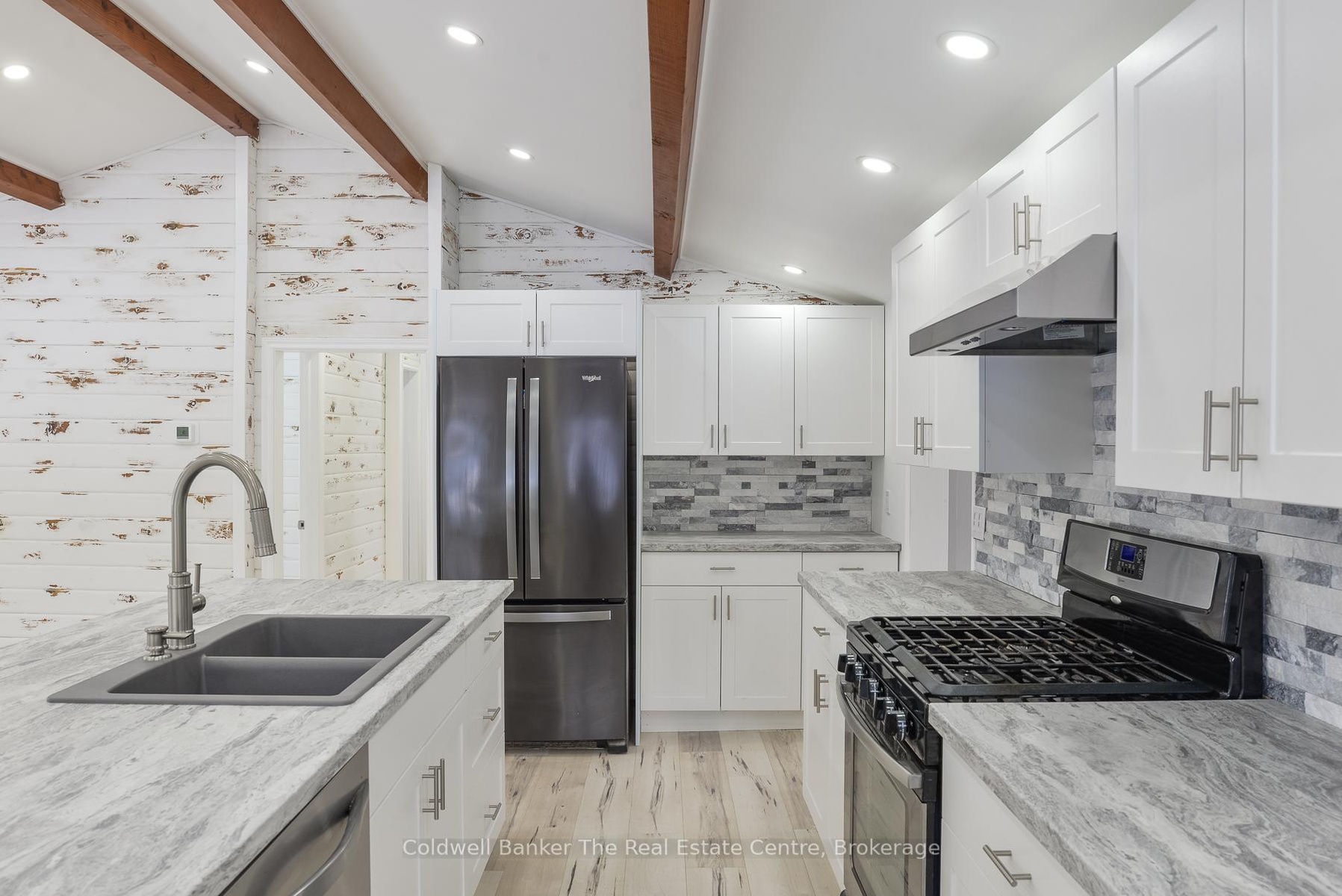 This fully renovated bungalow is perfectly situated on a rare and oversized double lot in one of the towns most desirable neighbourhoods, just a short walk to Muskoka Beechgrove Public School. This warm and inviting home features a stunning open-concept layout with soaring vaulted ceilings, striking wood beams, and a spacious kitchen complete with a large island ideal for hosting family and friends. Major upgrades include a new gas furnace, hot water tank, complete foundation waterproofing, new insulation in walls and ceilings, new roof sheeting and shingles, all new siding, drywall, and a fully updated interior. With 3 bedrooms, 2 full bathrooms, a pantry, laundry room, and a thoughtfully designed floor plan, this home delivers comfort, character, and functionality. The true opportunity lies in the large double lot, which offers incredible development potential in one of Gravenhurst's most sought-after neighbourhoods. With municipal sewer and water available right at the road, the property can likely be severed into two additional lots, making it an ideal choice for a wide range of buyers. Whether you're looking to sell the newly created vacant lots an extremely rare and valuable commodity in this area build your dream home while renting or selling the existing house, or develop a multi-unit investment property, the possibilities are endless. This property also presents a fantastic opportunity for entrepreneurs to build a shop with living quarters above or for families to create a backyard oasis with space for a pool, guesthouse, or custom outdoor retreat. No matter your vision, this lot offers the rare chance to build equity, generate income, or create the lifestyle you've been dreaming of all in a prime location with limited vacant land availability. A detached garage and shed offer extra storage or workspace. Whether you're an investor, entrepreneur, or homeowner with vision, this property is packed with potential and ready to help you build equity and income.