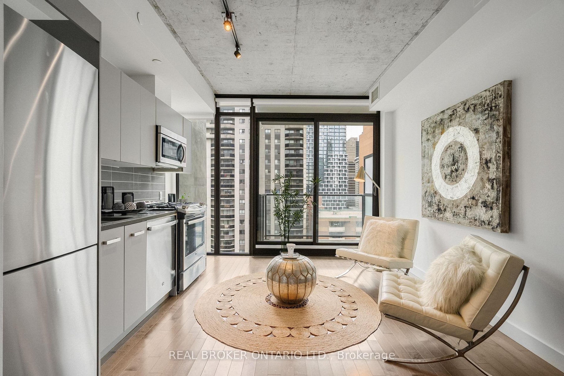 DescriptionExperience sleek, modern living in the heart of Ottawa's Centretown at Gotham, a striking 17-storey architectural masterpiece. This chic bachelor unit boasts contemporary finishes, including stunning hardwood floors, exposed concrete ceilings, and expansive floor-to-ceiling windows that flood the space with natural light. The stylish kitchen features quartz countertops, stainless steel appliances, a gas stove, and sleek modern cabinetry. Step outside onto your private balcony, equipped with a natural gas hookup for effortless barbecuing. The only utility bill for tenants is hydro. Enjoy the impressive suite of amenities, including concierge services, an electronic buzzer system, surveillance cameras, key fob access to the lobby and garage, and bicycle parking. The spacious party room is perfect for entertaining, complete with a fully equipped kitchen, a large dining table, an expansive terrace, and a cozy seating area for social gatherings. One underground parking spot is available with this unit. Conveniently located, this vibrant community places you just a short stroll from three fenced dog parks, two grocery stores, and the diverse bars and restaurants of Centretown. Don't miss your chance to call Gotham home - book your private showing today!Virtual Tour: https://sites.listvt.com/224lyonstreetnorthk1r5v9Amenities- BBQs Allowed