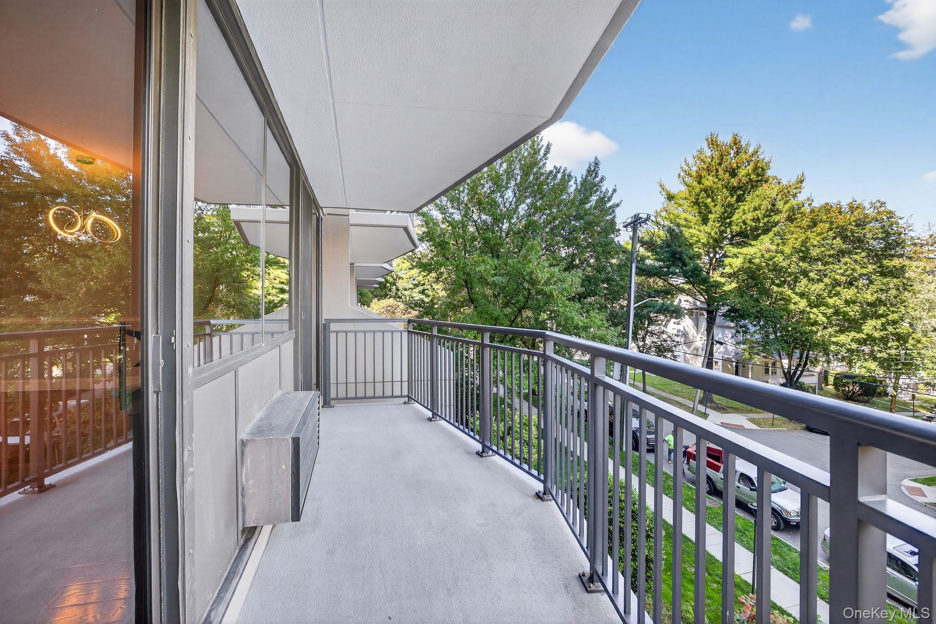 This spacious 2-bedroom, 2-bath condo offers a perfect blend of comfort and convenience in a full-service building. The oversized living room easily accommodates a large sectional, dining area, and home office setup, making it ideal for both relaxing and entertaining. The generous kitchen is outfitted with stainless steel appliances, including a dishwasher, and provides plenty of counter and cabinet space plus a center island for all your culinary needs. Enjoy two private balconies, perfect for morning coffee or evening unwinding. The views from the balcony are of a leafy quiet street, which gives you privacy and calming effects. The primary bedroom features a built-out walk-in closet, while three additional closets throughout the unit offer excellent storage. Both bedrooms are King+ sized, with ample room for a desk and dresser. Additional amenities include a washer and dryer on the floor, a full-time doorman, and on-site parking available for added ease.