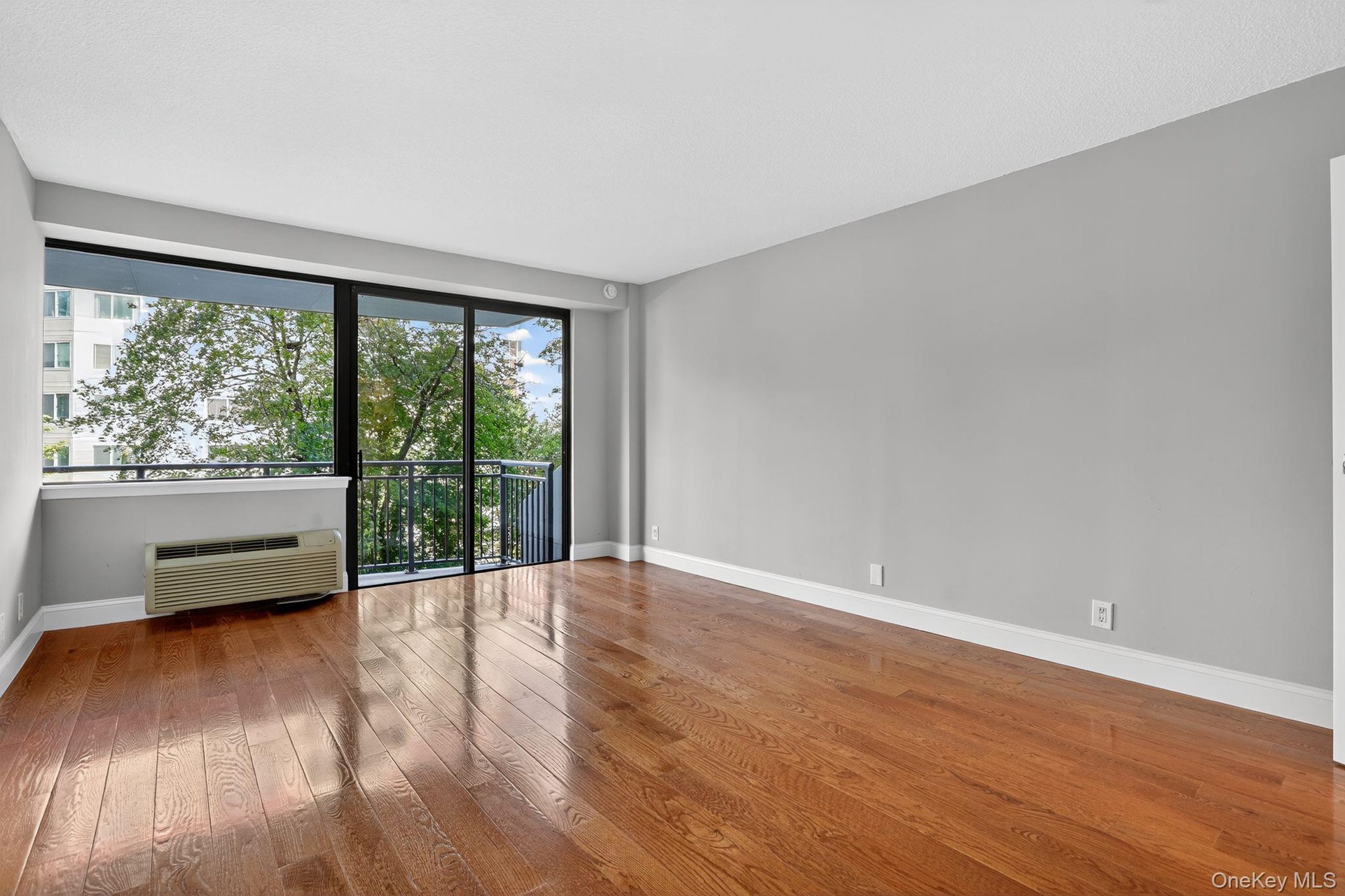 - Unfurnished room featuring hardwood / wood-style floors and an AC wall unit