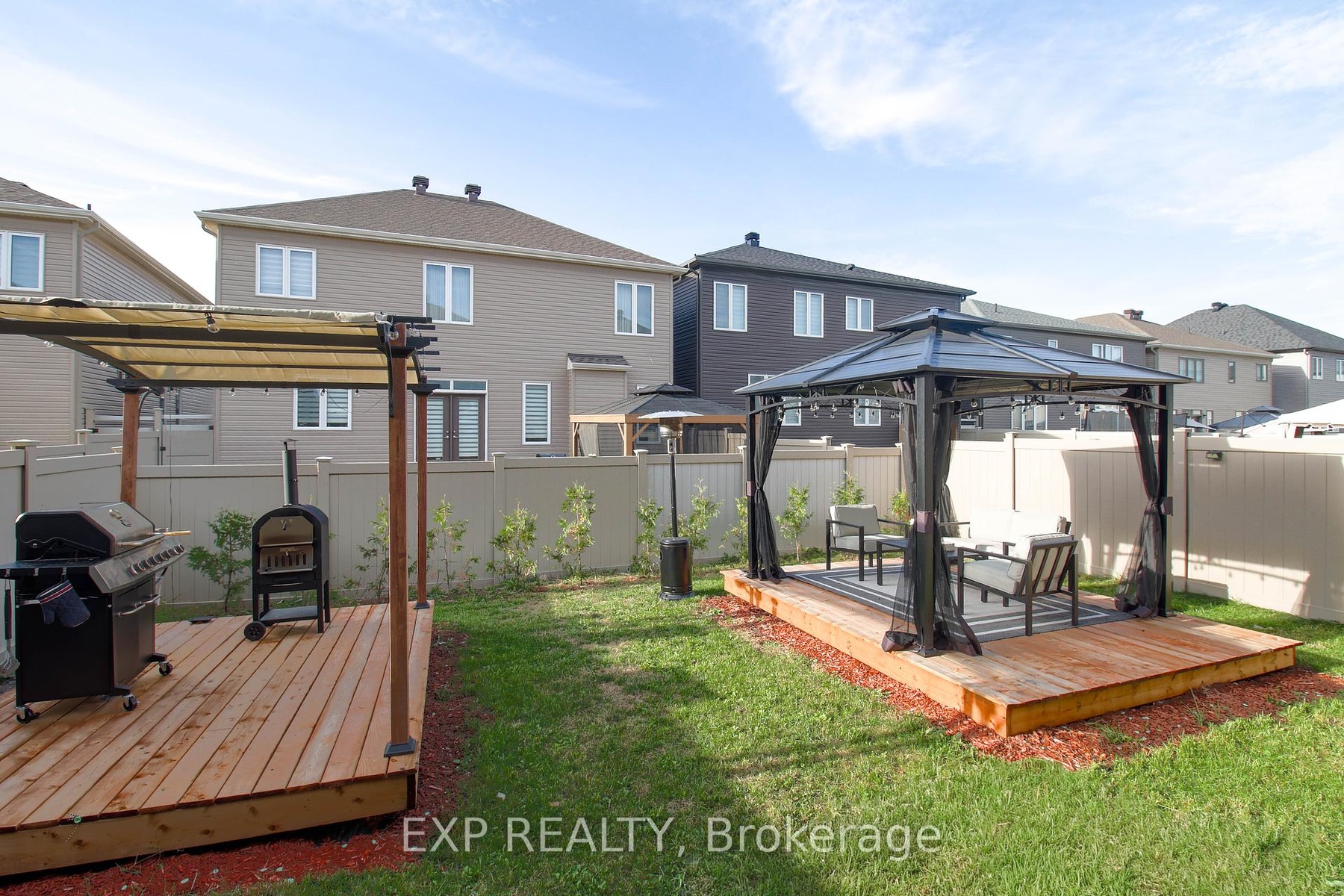 Welcome to this spacious 4-bedroom home for rent in the highly sought-after, family-friendly community of Quinns Pointe. The main floor impresses with 9-foot ceilings, opening from a welcoming foyer into a great room with a cozy gas fireplace and a formal dining room. The contemporary kitchen is the heart of the home, featuring extensive cabinetry, quartz countertops, stainless steel appliances, and a large island with a breakfast bar. A practical mudroom provides convenient access to the double-car garage. A beautiful hardwood staircase leads upstairs to the primary suite, which serves as a private retreat with its large walk-in closet and a luxurious 5-piece ensuite bathroom. Three more generously sized bedrooms and a full family bathroom complete the second level. Step outside into your fully fenced, landscaped backyard, an entertainer's dream- It includes a gazebo for outdoor seating and a second kitchen gazebo equipped with a BBQ and a wood-fired pizza oven. The location is ideal, just a 3-minute walk from Bus route 75, mins from parks, the Minto Recreation Centre, top-rated schools and Costco, Walmart and Farm Boy. Enjoy an easy commute with quick access to Highway 417.