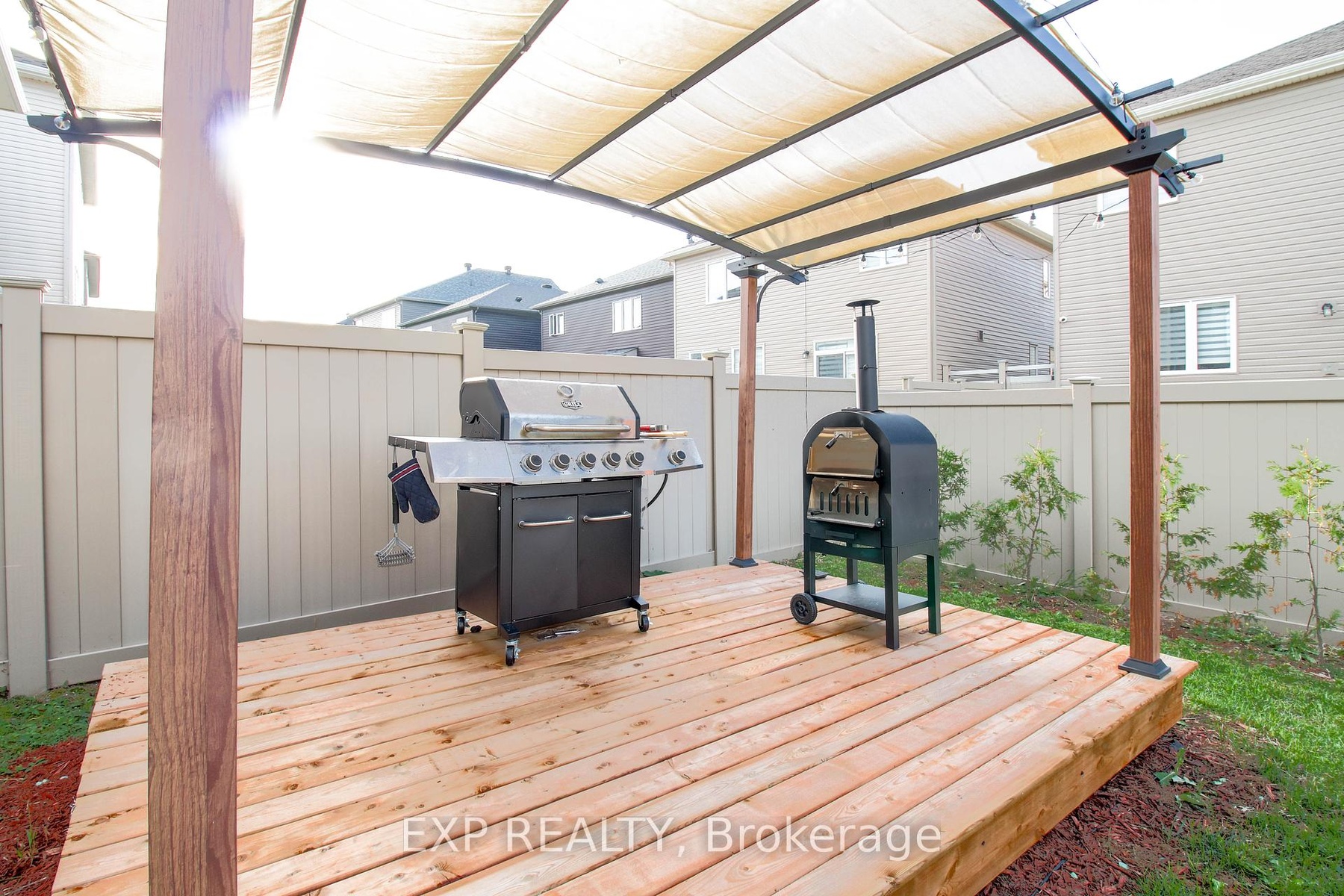 DescriptionWelcome to this spacious 4-bedroom home for rent in the highly sought-after, family-friendly community of Quinns Pointe. The main floor impresses with 9-foot ceilings, opening from a welcoming foyer into a great room with a cozy gas fireplace and a formal dining room. The contemporary kitchen is the heart of the home, featuring extensive cabinetry, quartz countertops, stainless steel appliances, and a large island with a breakfast bar. A practical mudroom provides convenient access to the double-car garage. A beautiful hardwood staircase leads upstairs to the primary suite, which serves as a private retreat with its large walk-in closet and a luxurious 5-piece ensuite bathroom. Three more generously sized bedrooms and a full family bathroom complete the second level. Step outside into your fully fenced, landscaped backyard, an entertainer's dream- It includes a gazebo for outdoor seating and a second kitchen gazebo equipped with a BBQ and a wood-fired pizza oven. The location is ideal, just a 3-minute walk from Bus route 75, mins from parks, the Minto Recreation Centre, top-rated schools and Costco, Walmart and Farm Boy. Enjoy an easy commute with quick access to Highway 417.Amenities- Canopy