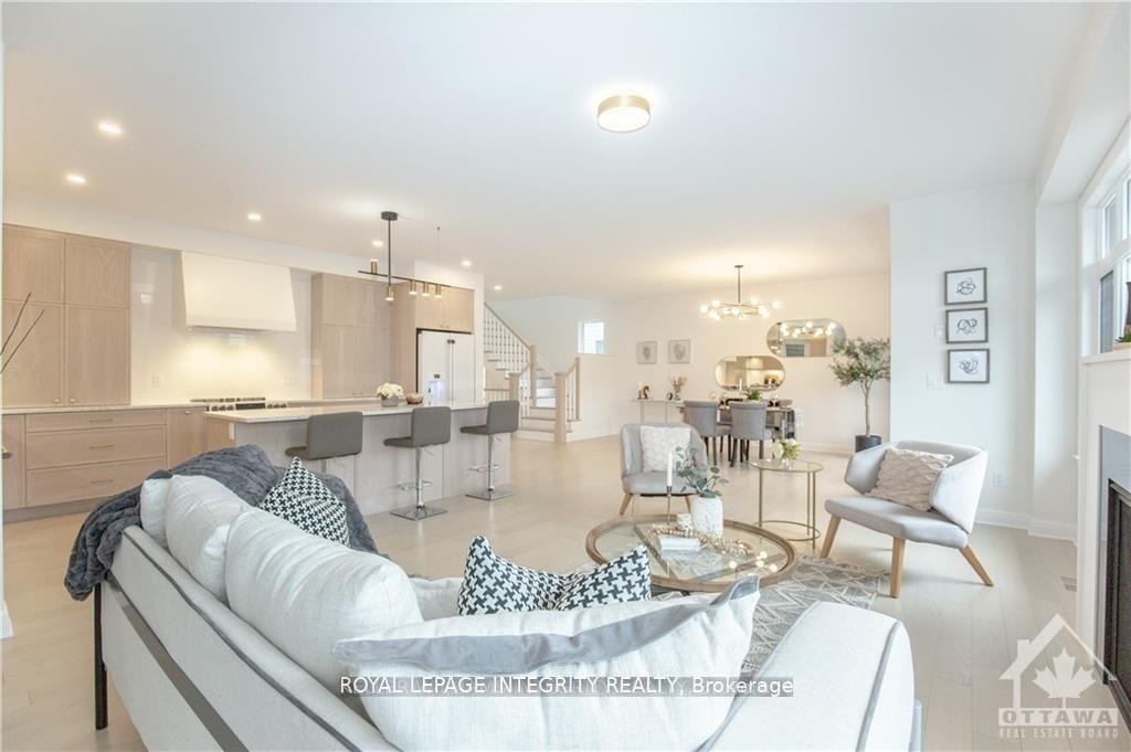 Finished Walk-Out Basement! Nestled in the highly sought-after Kanata Lakes Richardson Ridge, this stunning 2023 Uniform-built home is a masterpiece of design and function, boasting luxurious, professional interior design and high-end finishes throughout. The main floor features an elegant and versatile den, perfect for work at home or accommodating guests. An open-concept living and dining area, filled with natural light from south-facing windows, seamlessly connects to a chef-inspired kitchen. This show-stopping kitchen is a culinary dream, complete with a large island, top-of-the-line appliances, granite countertops, and custom cabinetry with pull out shelves! . A graceful hardwood staircase leads to the second level, where you'll find a luxurious primary suite with oversized windows, two walk-in closets, and a spa-like five-piece ensuite. This floor also includes three additional spacious bedrooms , 2 full bathrooms, and a laundry room. The home is enhanced by a professionally finished walkout basement that includes a full bathroom. This exceptional property is conveniently located near top-rated schools, parks, shopping, and scenic trails, offering a perfect blend of comfort, luxury, and convenience. *Some photos were taken in 2023
