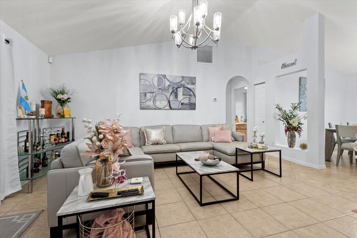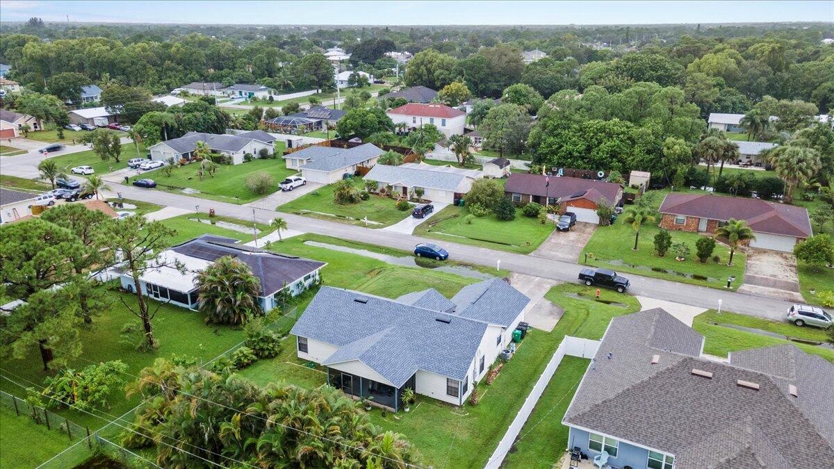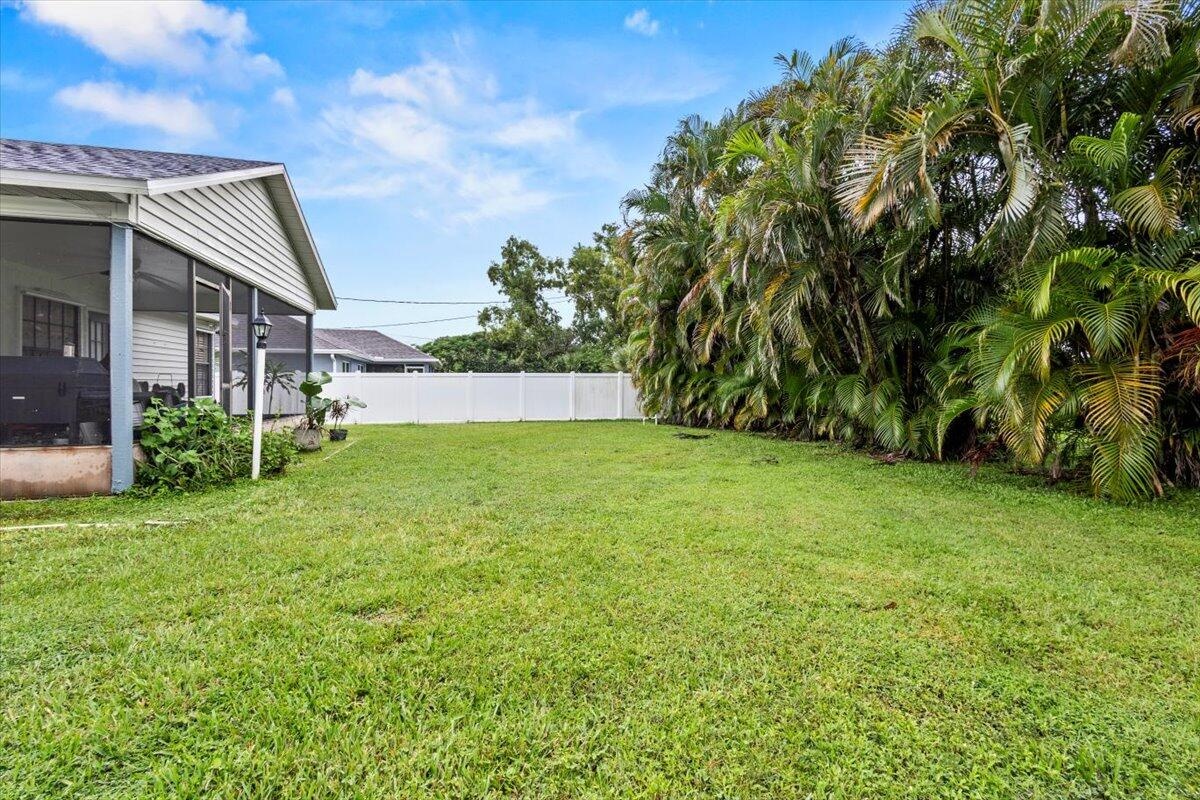 Welcome to this beautifully maintained home located in a quiet, desirable area of Port St. Lucie. Featuring 3 bedrooms, 2 full baths, under 1,456 sq ft of living space, this residence offers comfort and style.Enjoy a kitchen with newer appliances, generous granite counter space and an eat-in area by a bay window overlooking the backyard. A living room with a high volume ceiling along with a separate dining area are great entertainment spaces. The primary suite includes a walk-in closet and en suite bath with dual vanities. The two additional bedrooms across the way are perfect for your family's needs, a home office or guests.Step outside to a screened-in porch overlooking a private yard ready for a pool or other outdoor possibilities. No HOA.