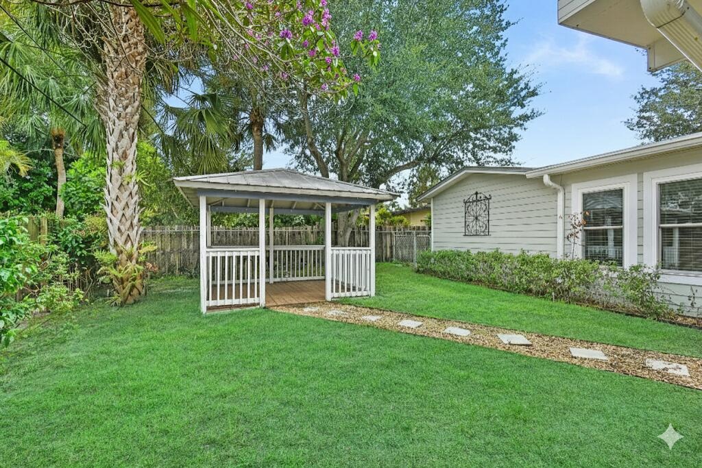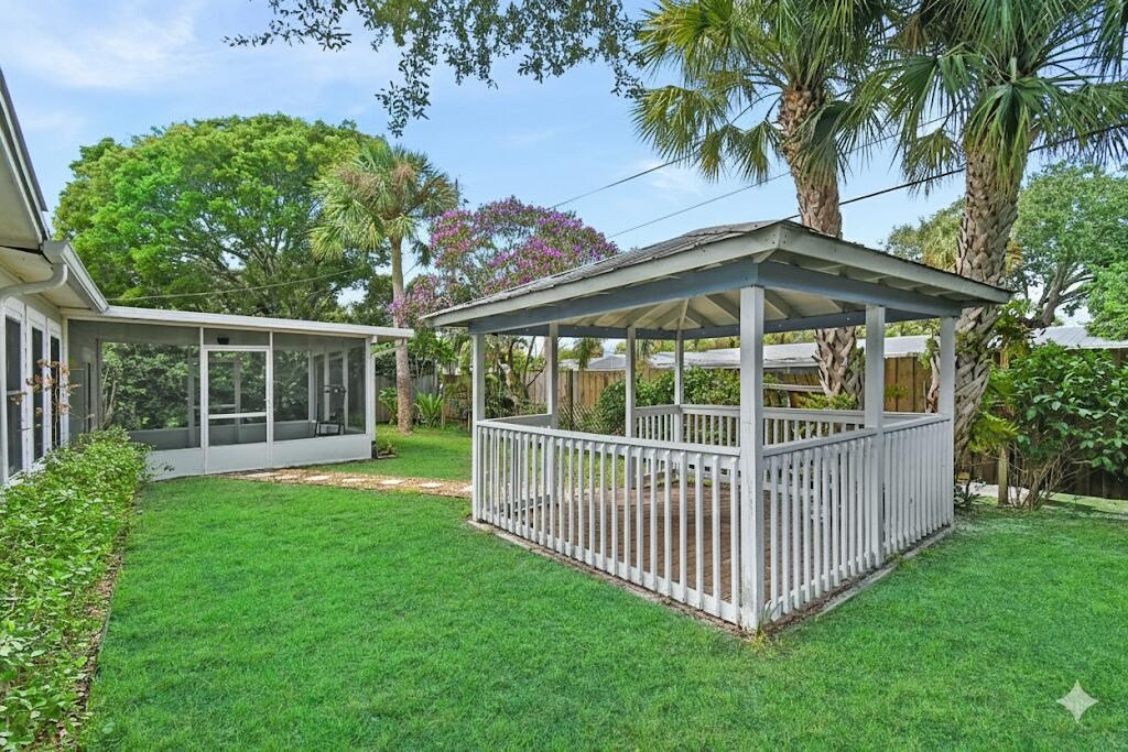 Discover the perfect blend of style and Florida living in this charming 2-bedroom, 2-bathroom home with a den and office. Enjoy peace of mind with a durable metal roof and No HOA restrictions. This home features complete Impact windows, and a modern kitchen with sleek stainless steel appliances. The spacious, screened-in patio offers an ideal space for entertaining or relaxing, seamlessly flowing out to a private, fenced-in yard with a gazebo. Located in a prime area, you're just moments from vibrant downtown Stuart, pristine beaches, and a variety of shops and restaurants. This home is a true gem offering a low-maintenance, and a desirable lifestyle.