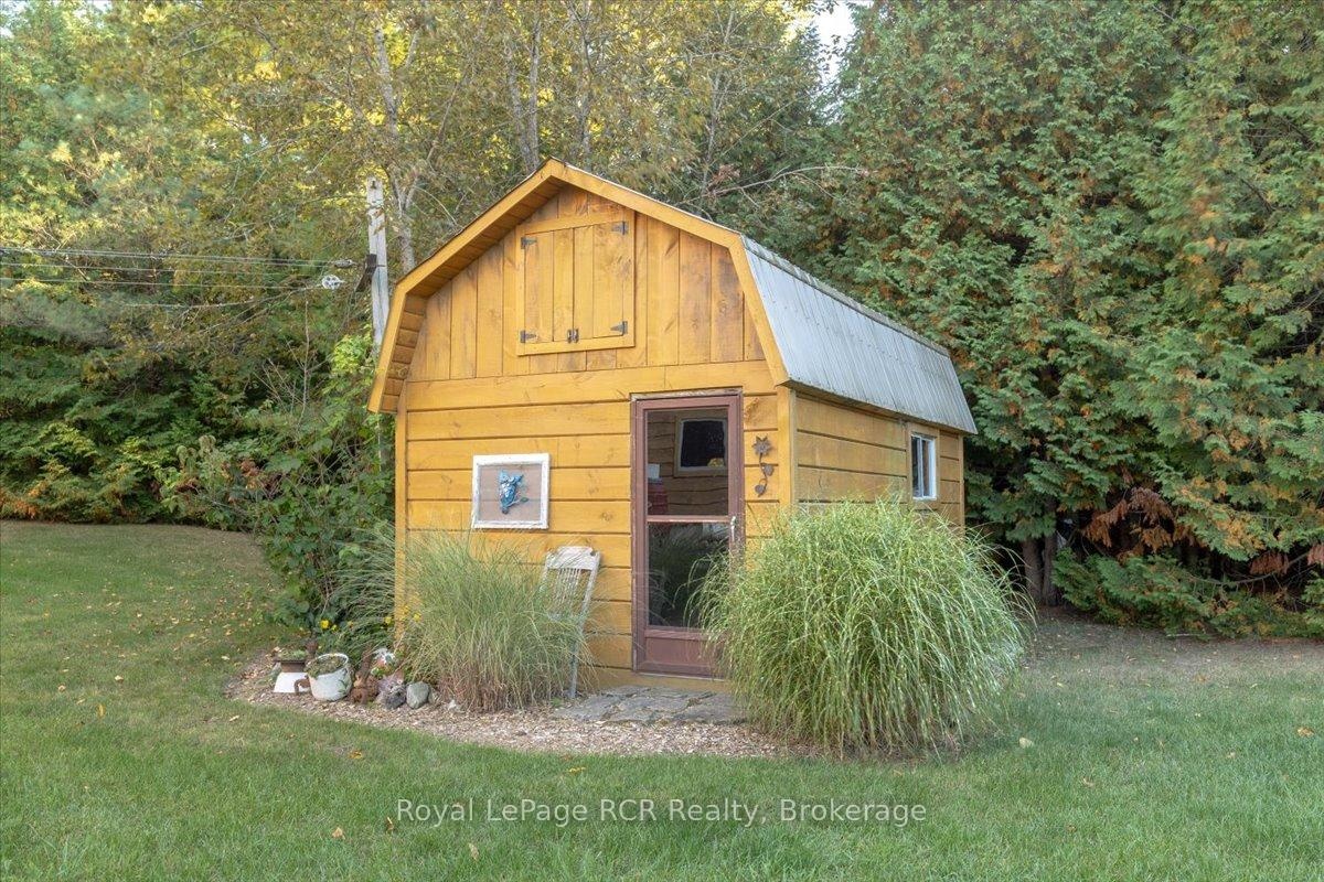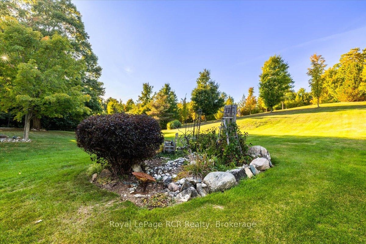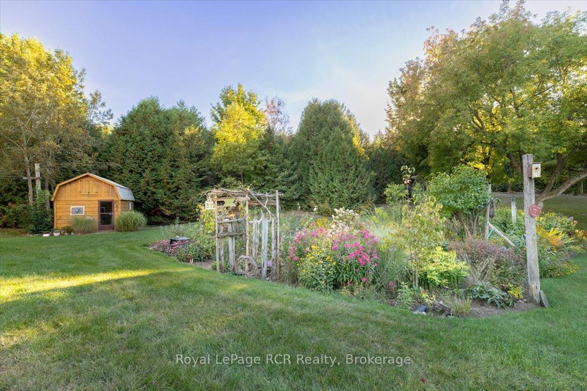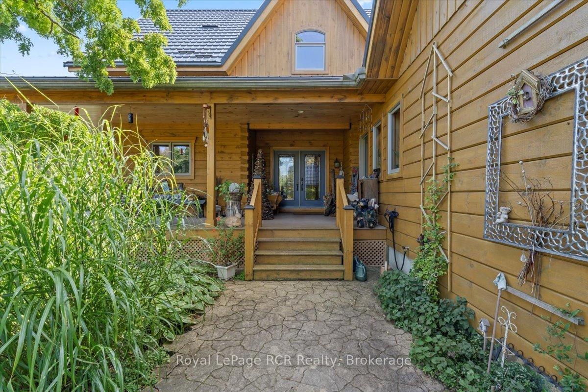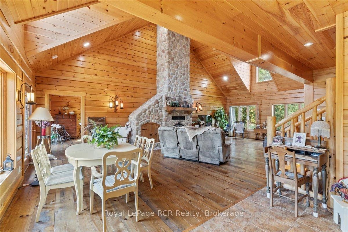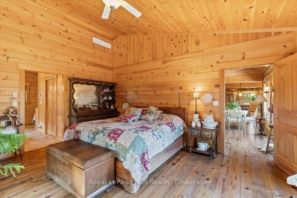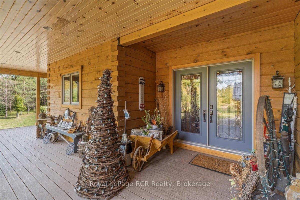Luxury Country Retreat Nestled on a Peaceful, Private and Lovingly Landscaped 9.8-Acre Property. As you approach the magnificent log home, which commands attention, you'll be drawn to the front steps leading up to the welcoming composite porch, inviting you to explore the interior. As you step through the front door, you'll be greeted by a bright, spacious, and immaculate interior. The main floor showcases an impressive kitchen with an oversized island and a complete appliance package, dining area with access to expansive deck, a grand great room with soaring cathedral ceilings, and a stunning wood burning fireplace that makes a bold statement. The tranquil primary bedroom features a five-piece ensuite and a walk-in closet that meets your every need. Another full bathroom, a large laundry room, and a practical mudroom completes the main level. As you ascend the log stairs to the second level, you'll appreciate the open office space overlooking the main floor and discover two generous bedrooms sharing another well-appointed bathroom. The walkout basement presents endless possibilities - ample space for a workshop, storage, or your own custom finishing touches. There's also a substantial cold room with walk up access to the triple car garage, plus a fully finished loft above the garage with custom finishing touches that any guest would absolutely love and may never want to leave. After you've explored the spectacular interior, step outside to find an additional three-bedroom home awaiting your vision, along with a large storage shed and a garden shed, surrounded by many perennial flower beds. This property offers not just a home, but a serene lifestyle in a beautiful setting on a quiet country road within minutes to Allan Park Conservation Area where you can enjoy fishing, cycling, snowshoeing, skiing & hiking trails, and tobogganing. Are you ready to confidently claim this extraordinary home and property as your own?