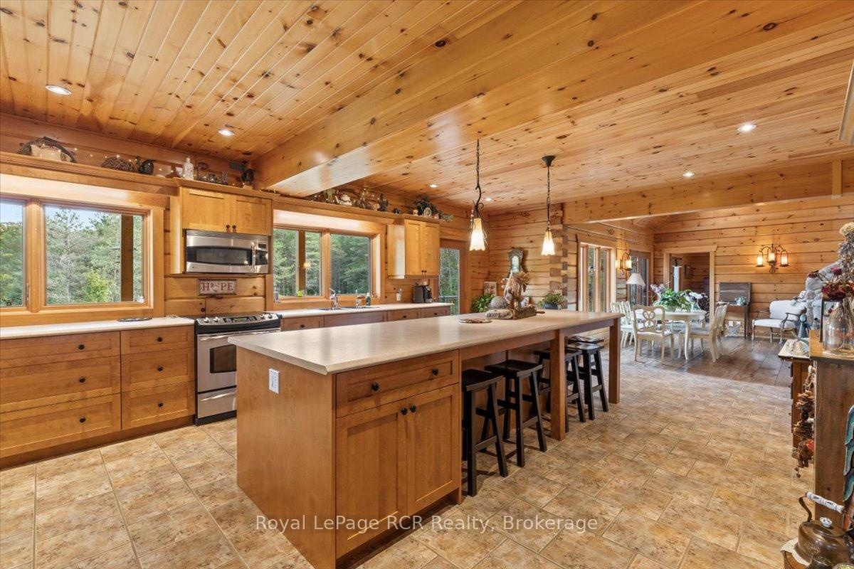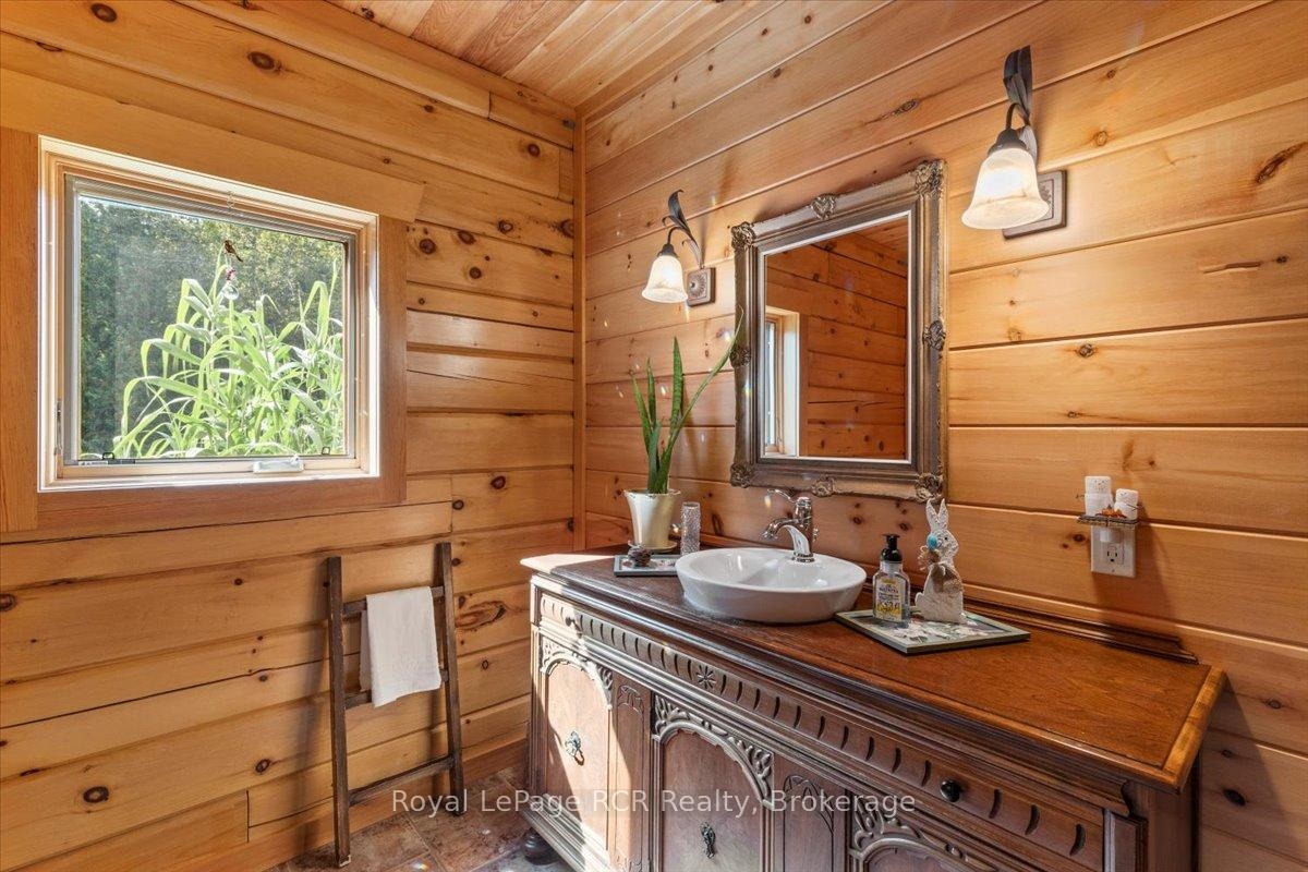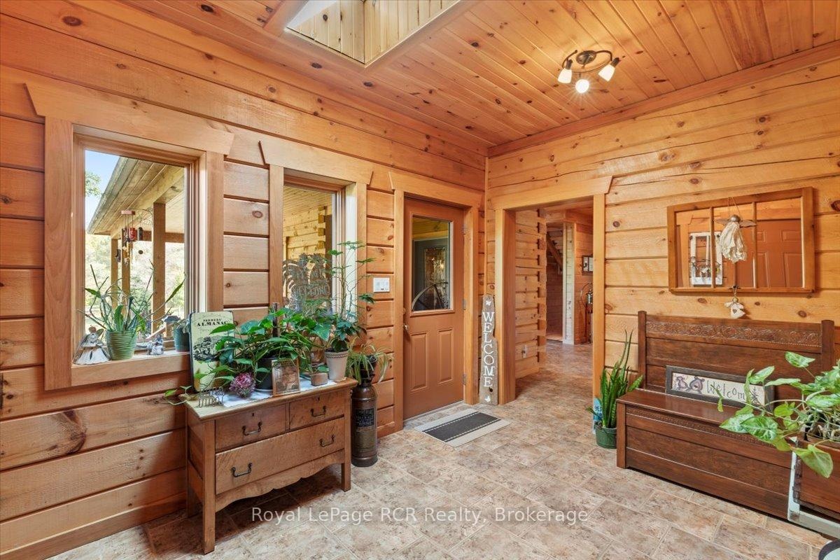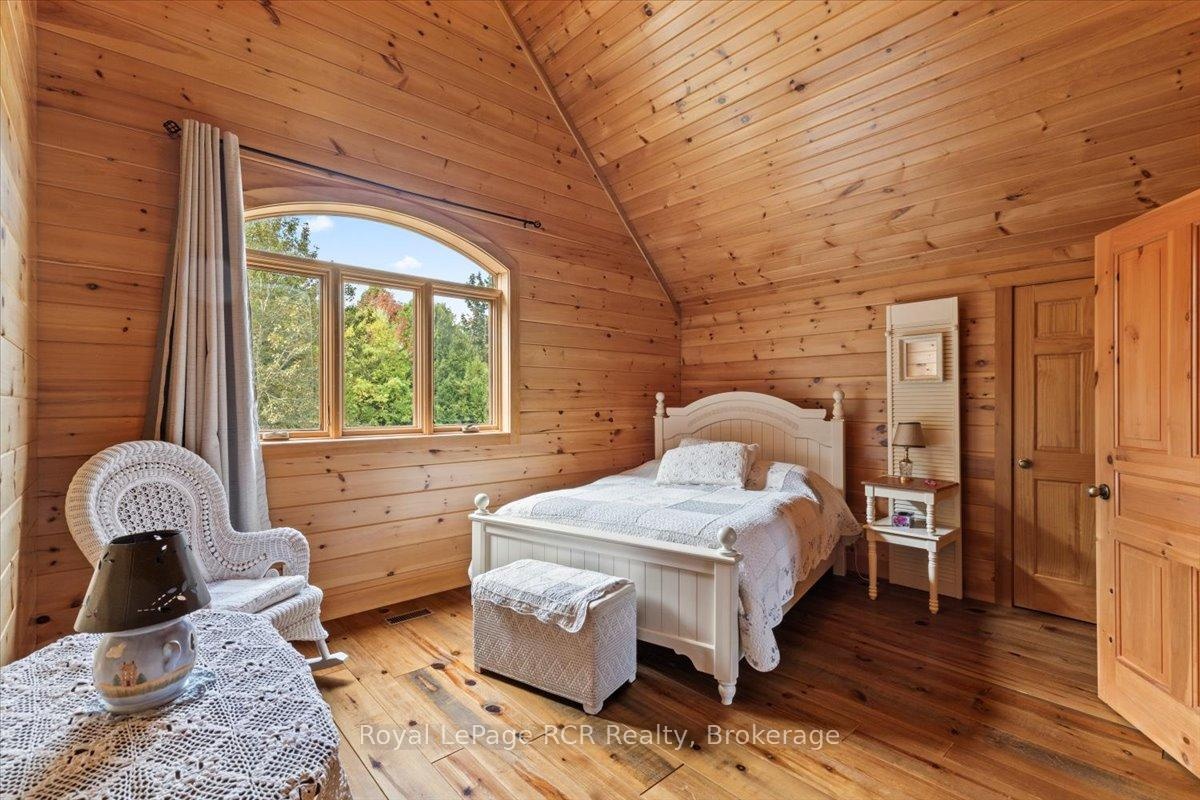 DescriptionLuxury Country Retreat Nestled on a Peaceful, Private and Lovingly Landscaped 9.8-Acre Property. As you approach the magnificent log home, which commands attention, you'll be drawn to the front steps leading up to the welcoming composite porch, inviting you to explore the interior. As you step through the front door, you'll be greeted by a bright, spacious, and immaculate interior. The main floor showcases an impressive kitchen with an oversized island and a complete appliance package, dining area with access to expansive deck, a grand great room with soaring cathedral ceilings, and a stunning wood burning fireplace that makes a bold statement. The tranquil primary bedroom features a five-piece ensuite and a walk-in closet that meets your every need. Another full bathroom, a large laundry room, and a practical mudroom completes the main level. As you ascend the log stairs to the second level, you'll appreciate the open office space overlooking the main floor and discover two generous bedrooms sharing another well-appointed bathroom. The walkout basement presents endless possibilities - ample space for a workshop, storage, or your own custom finishing touches. There's also a substantial cold room with walk up access to the triple car garage, plus a fully finished loft above the garage with custom finishing touches that any guest would absolutely love and may never want to leave. After you've explored the spectacular interior, step outside to find an additional three-bedroom home awaiting your vision, along with a large storage shed and a garden shed, surrounded by many perennial flower beds. This property offers not just a home, but a serene lifestyle in a beautiful setting on a quiet country road within minutes to Allan Park Conservation Area where you can enjoy fishing, cycling, snowshoeing, skiing & hiking trails, and tobogganing. Are you ready to confidently claim this extraordinary home and property as your own?Amenities- Air Exchanger