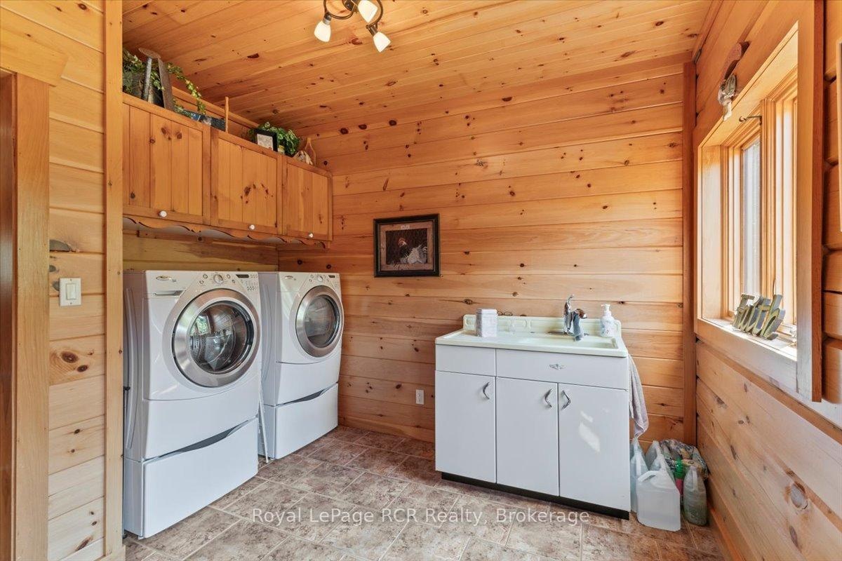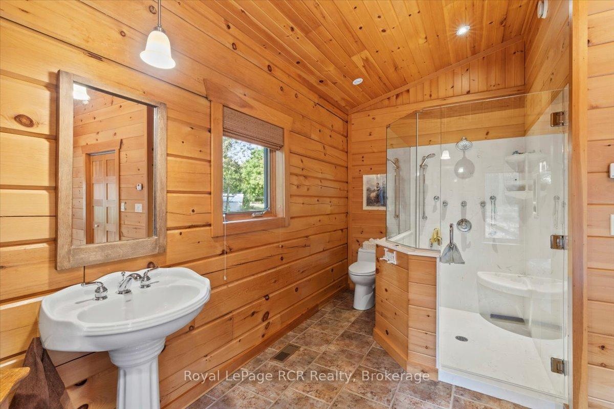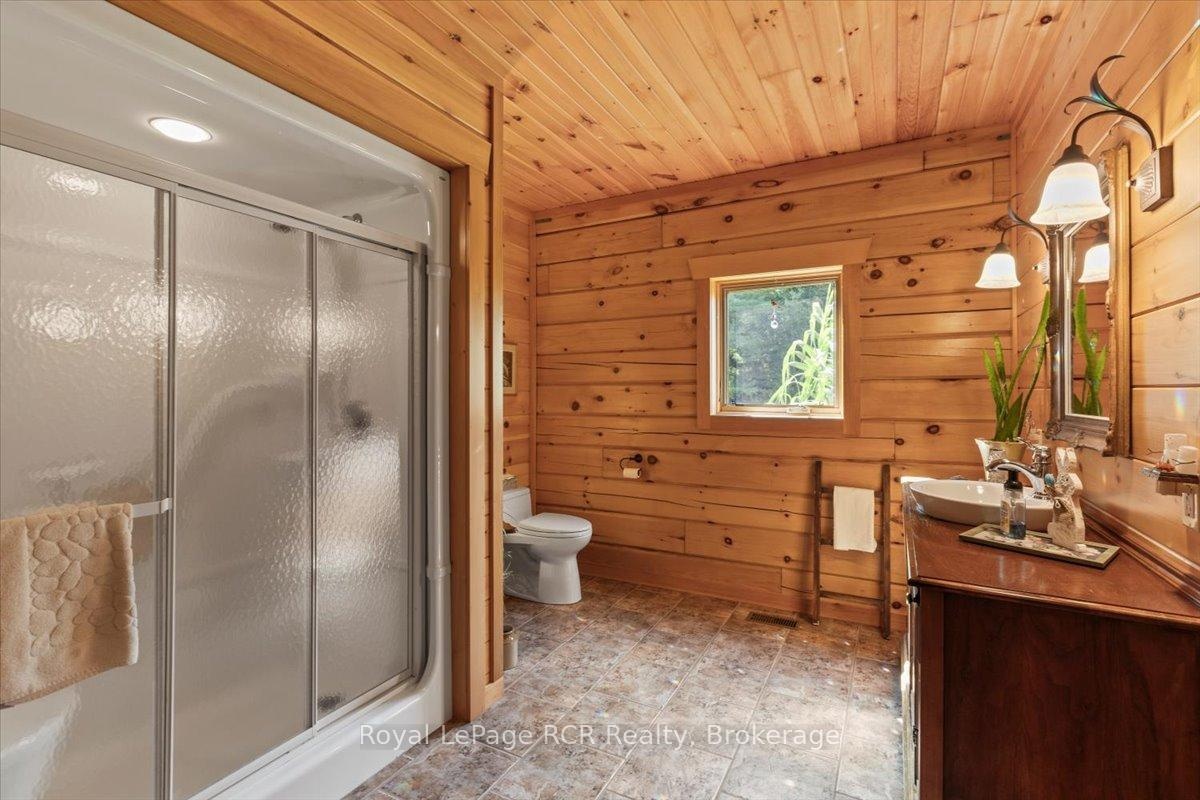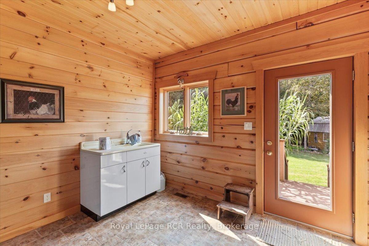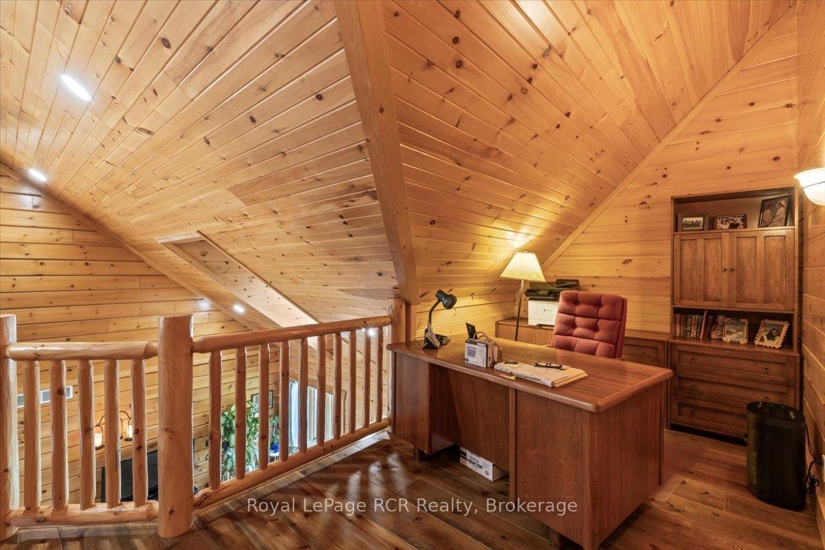 DescriptionLuxury Country Retreat Nestled on a Peaceful, Private and Lovingly Landscaped 9.8-Acre Property. As you approach the magnificent log home, which commands attention, you'll be drawn to the front steps leading up to the welcoming composite porch, inviting you to explore the interior. As you step through the front door, you'll be greeted by a bright, spacious, and immaculate interior. The main floor showcases an impressive kitchen with an oversized island and a complete appliance package, dining area with access to expansive deck, a grand great room with soaring cathedral ceilings, and a stunning wood burning fireplace that makes a bold statement. The tranquil primary bedroom features a five-piece ensuite and a walk-in closet that meets your every need. Another full bathroom, a large laundry room, and a practical mudroom completes the main level. As you ascend the log stairs to the second level, you'll appreciate the open office space overlooking the main floor and discover two generous bedrooms sharing another well-appointed bathroom. The walkout basement presents endless possibilities - ample space for a workshop, storage, or your own custom finishing touches. There's also a substantial cold room with walk up access to the triple car garage, plus a fully finished loft above the garage with custom finishing touches that any guest would absolutely love and may never want to leave. After you've explored the spectacular interior, step outside to find an additional three-bedroom home awaiting your vision, along with a large storage shed and a garden shed, surrounded by many perennial flower beds. This property offers not just a home, but a serene lifestyle in a beautiful setting on a quiet country road within minutes to Allan Park Conservation Area where you can enjoy fishing, cycling, snowshoeing, skiing & hiking trails, and tobogganing. Are you ready to confidently claim this extraordinary home and property as your own?Amenities- Air Exchanger