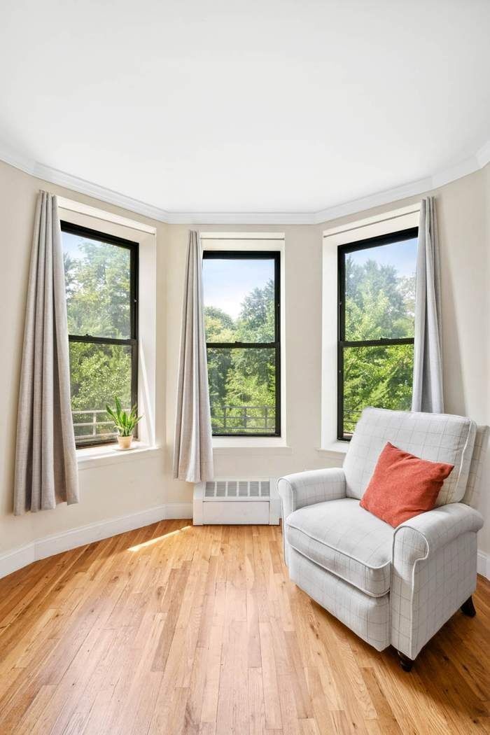 Apartment 3C at the Semiramis Condominium on Central Park North (aka 110th Street) is approximately 750 +/- square feet and features a spacious living room with high ceilings, a bay window overlooking the Park, a windowed kitchen with dishwasher and large bedroom with double closet. Your view is ever-changing depending on the seasons: in summer and fall, the abundant trees range from green to autumn hues and in winter and spring, the leaves give way to a more open view of the northern part of the Park.