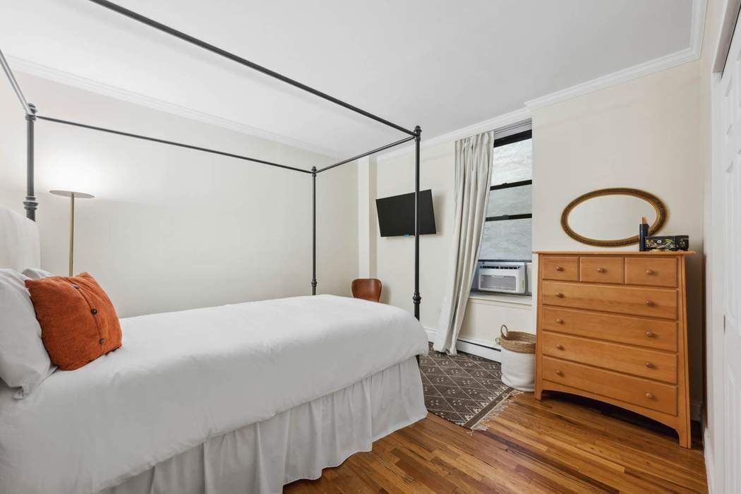 Upon entering this south-facing home, you are greeted by hardwood floors, high ceilings and a convenient coat closet in the entry hall. The living room welcomes you with Park-facing windows, natural light, and ample space for living, dining or working from home. The kitchen – accessed either from the living room or the hall – is windowed and offers ample counter space, cabinets and a dishwasher. The large king-sized bedroom is pin-drop quiet and has a double closet. Full bath with extra storage.
