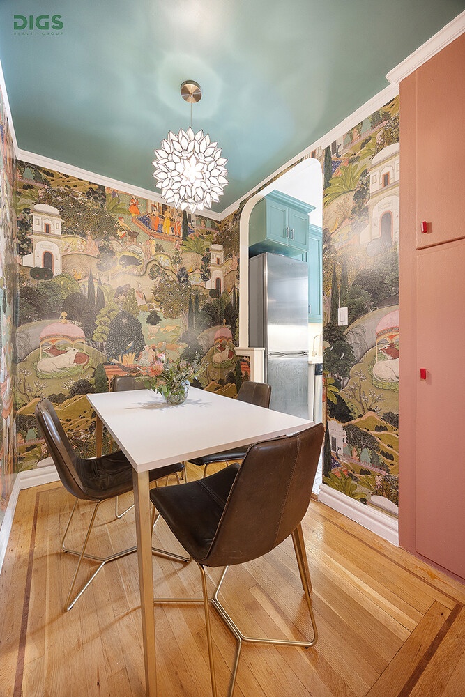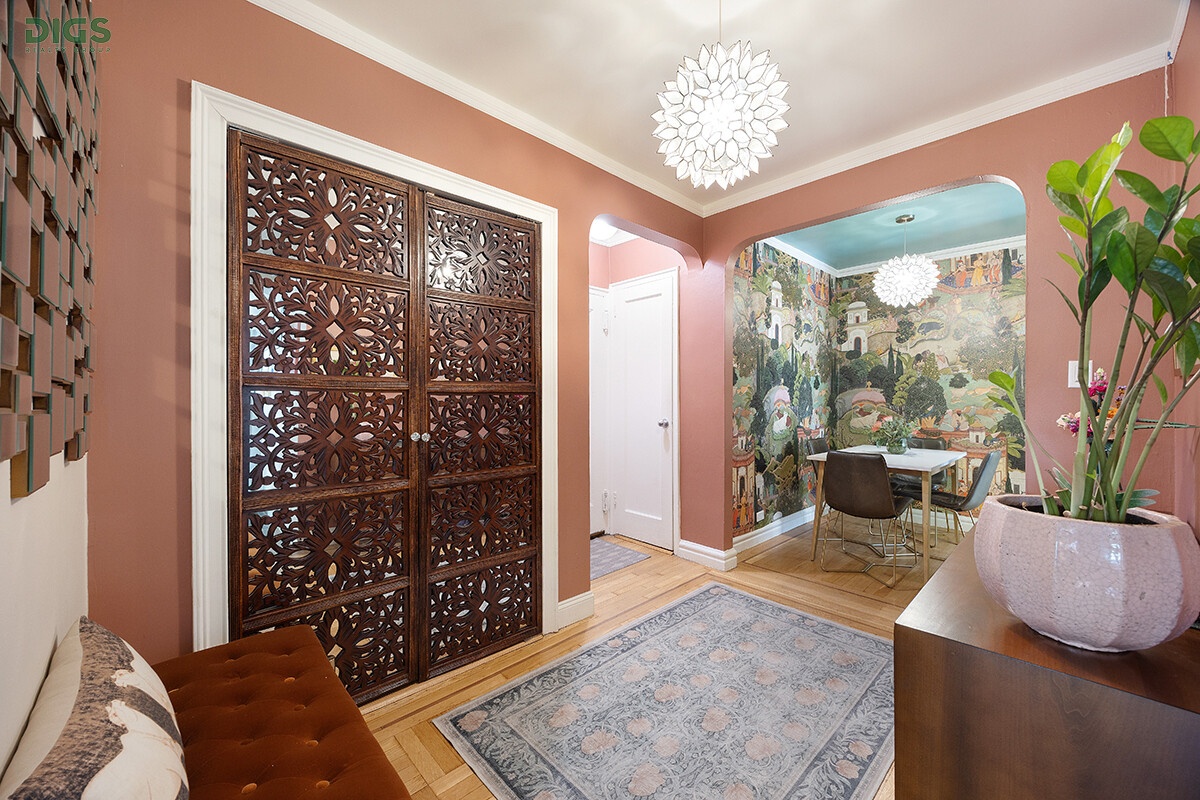 This renovated, raised first floor 2-bedroom, 1-bath home combines pre-war charm with thoughtful modern updates. Enter through a spacious foyer that separates the oversized step-down living room from the dining area and windowed kitchen, creating an easy and inviting flow. A long hallway leads to the private bedroom wing, offering separation from the entertaining areas. The home has been tastefully designed with pops of color and unique finishes, setting it apart from typical cookie-cutter apartments.