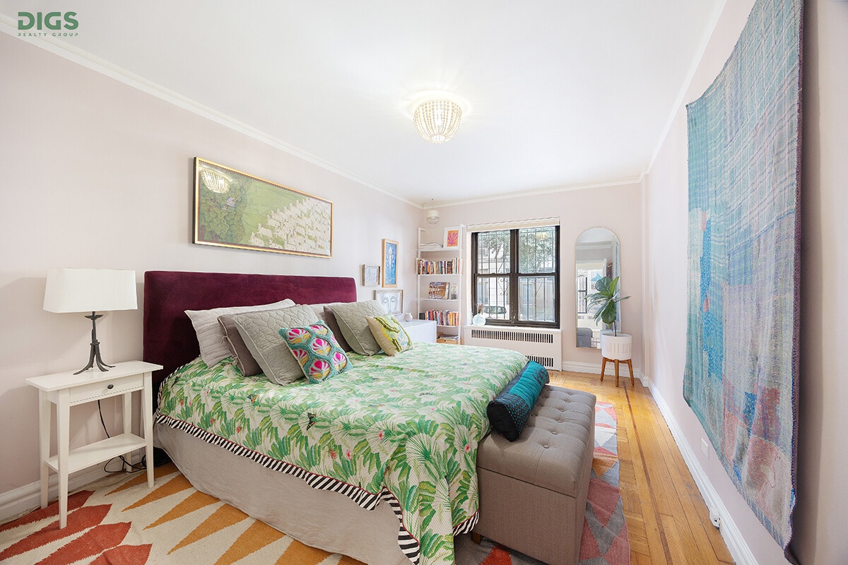 DescriptionThis renovated, raised first floor 2-bedroom, 1-bath home combines pre-war charm with thoughtful modern updates. Enter through a spacious foyer that separates the oversized step-down living room from the dining area and windowed kitchen, creating an easy and inviting flow. A long hallway leads to the private bedroom wing, offering separation from the entertaining areas. The home has been tastefully designed with pops of color and unique finishes, setting it apart from typical cookie-cutter apartments.