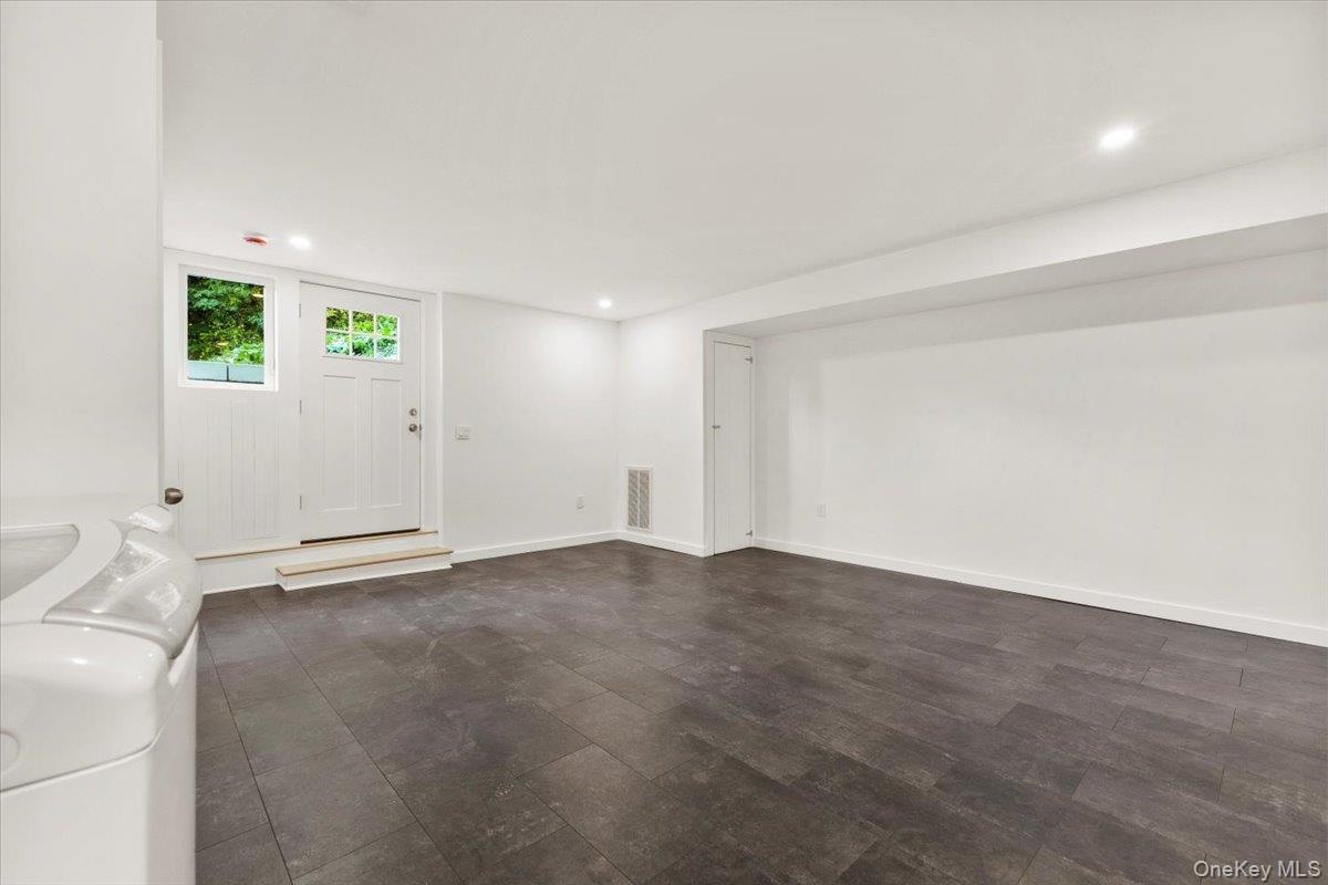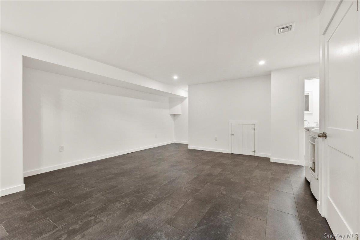 - Unfurnished living room with recessed lighting and independent washer and dryer