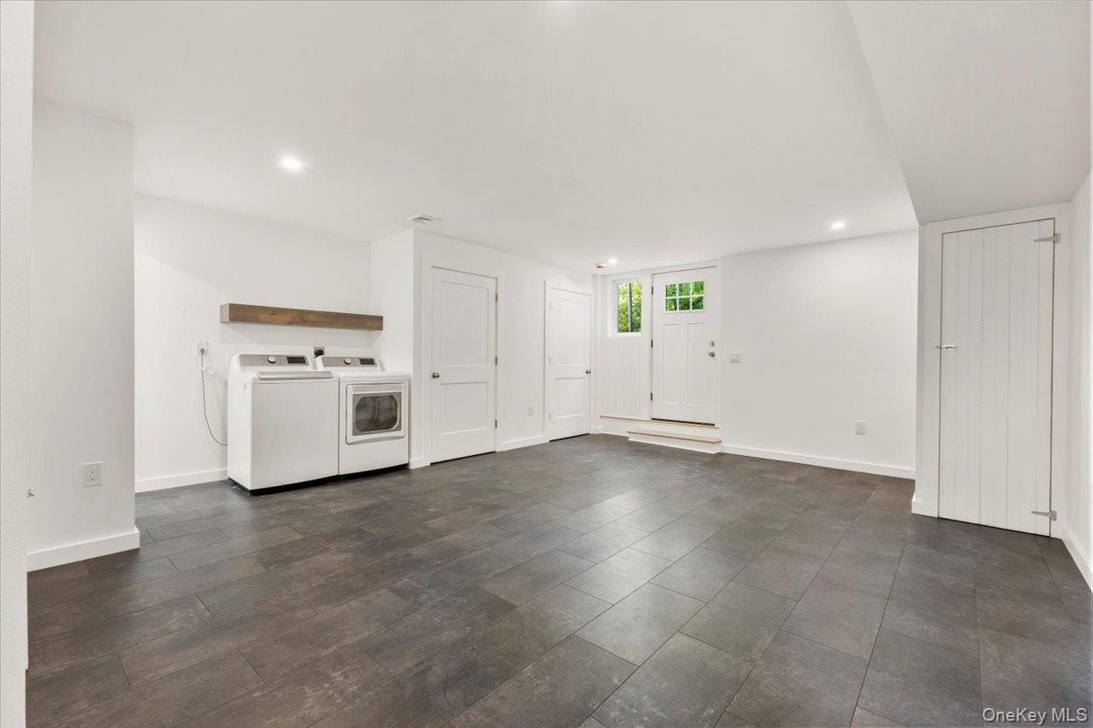 - Entryway featuring recessed lighting and independent washer and dryer