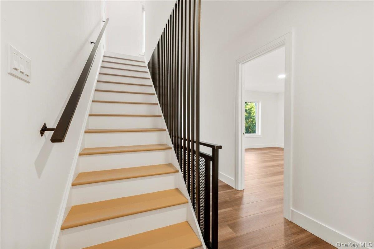 - Stairway with wood finished floors and baseboards