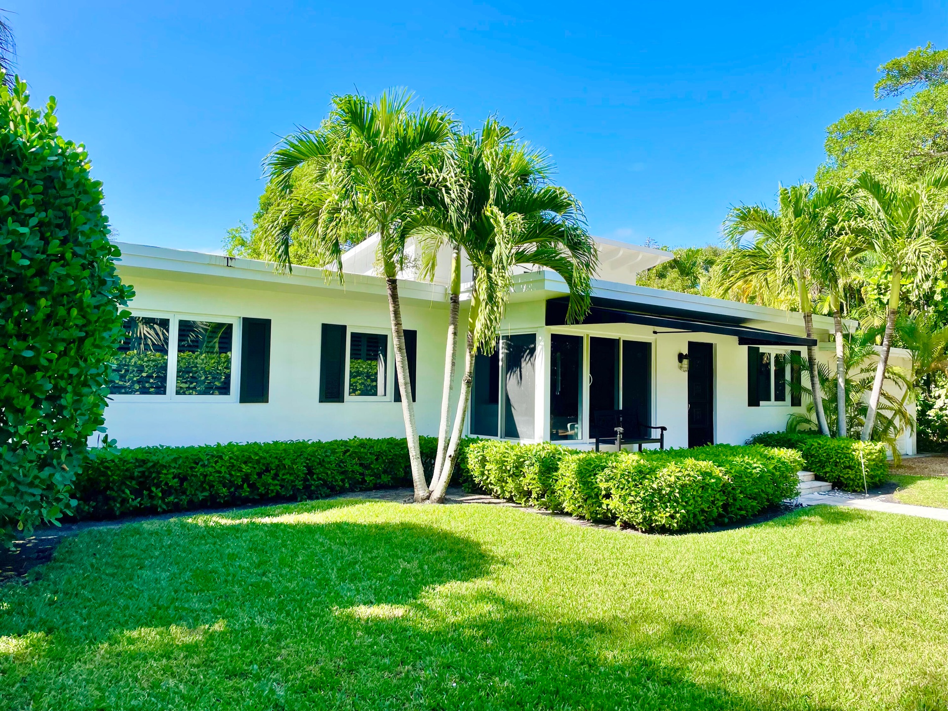 Tucked away upon a rare, lushly landscaped oversized 15, 500 sq ft private lot on Hypoluxo Island sits this Mid Century Modern gem.