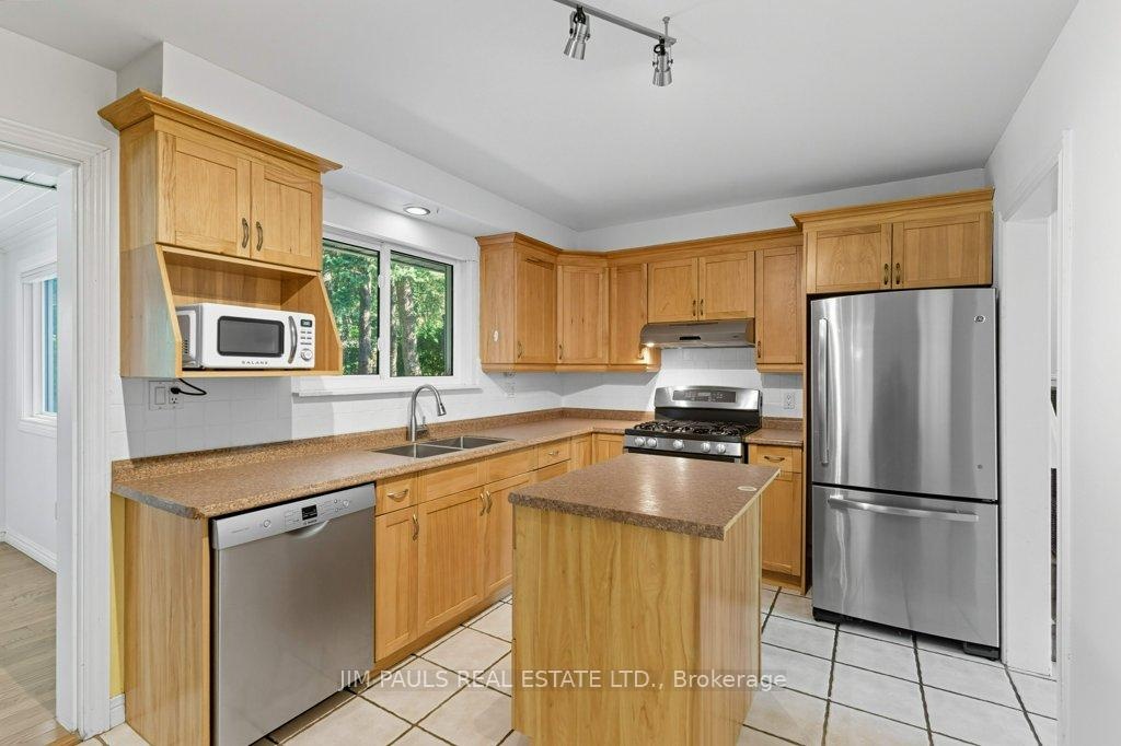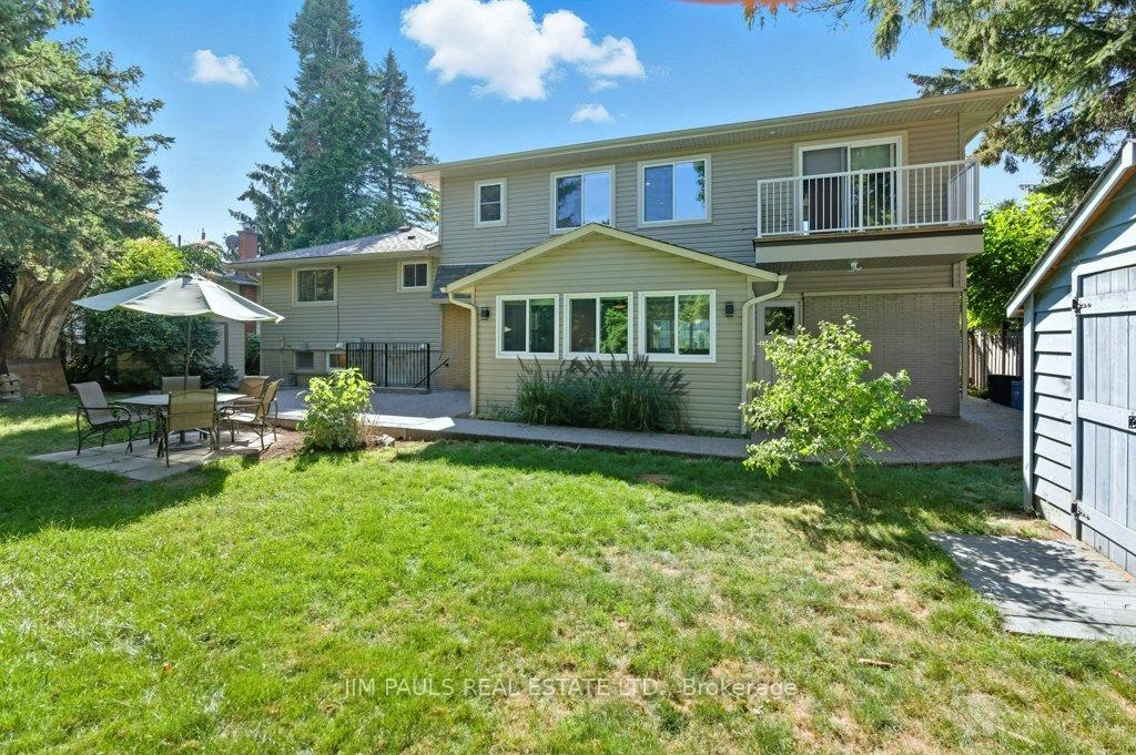 Welcome to this one-of-a-kind home, tucked away on a quiet dead-end street in one of Ancasters most sought-after neighbourhoods. Offering four bedrooms, three full bathrooms, two kitchens and an abundance of living space, this property is designed to meet the needs of a growing or multi-generational family. As you step inside, you are greeted by a foyer that opens into a bright formal living room with hardwood floors and a large picture window. The adjacent dining room shares the same hardwood flooring, creating a seamless space for gatherings and entertaining. The kitchen is well-appointed with ample cabinetry, a double sink, pantry, floating island & built-in desk area. From here, the rear sunroom with hardwood floors offers a warm and inviting space, complete with access to the rear patio & fenced backyard. The second level of the home features a den or office area, along with two bedrooms. The primary bedroom is generously sized to accommodate a king bed, while the updated 3pc bathroom offers a modern glass shower and a convenient pantry. The true highlight of this property is found on the third level. Added in 2018, this expansive addition provides the perfect in-law suite or teenage retreat. It offers its own kitchen, a 3pc bathroom, two additional bedrooms, and a large open-concept living space. Patio doors lead to a private balcony, making this space a self-contained haven within the home. The finished basement adds even more functionality with a rec room, a 3pc bathroom, a laundry area with walk-up access to the yard & generous storage space, including a crawl space under the main level. Outside, the fenced yard offers a newly poured aggregate patio, mature trees, two sheds and a gas BBQ hook-up, making it an ideal place for outdoor entertaining or quiet relaxation. With updated windows, furnace, and AC, this home combines modern comfort with unique design. Rarely does a property offer this much versatility and space in such a desirable Ancaster location.