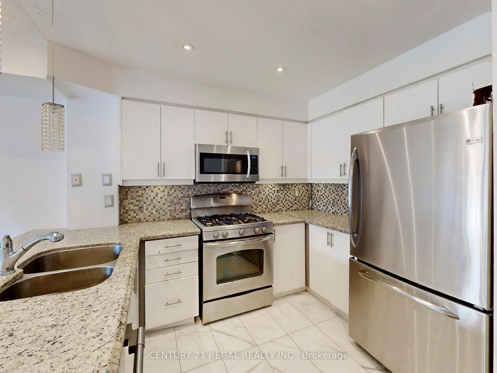 Rarely offered over 2,000 sq. ft. condo townhouse in the prestigious Chateaux by the Park. This bright and inviting home offers 3 generous bedrooms, including an extra-large primary suite with a renovated 4-piece ensuite and two closets. The modern kitchen with breakfast bar flows into an open-concept living and dining area, finished with laminate flooring and pot lights. The spacious living room, with large windows, walks out to a private terrace, perfect for relaxing or entertaining guests. Maintenance fees cover: Rogers cable TV & internet, water, snow removal, landscaping, and exterior maintenance. Added conveniences include a locker room, two tandem parking spaces in a heated garage, and well-kept common areas. Extras: Stainless steel gas stove, fridge, built-in dishwasher, over-the-range microwave/exhaust fan, washer & dryer, all light fixtures, and window coverings. A well-appointed home that offers both comfort and convenience - a must-see to fully appreciate.