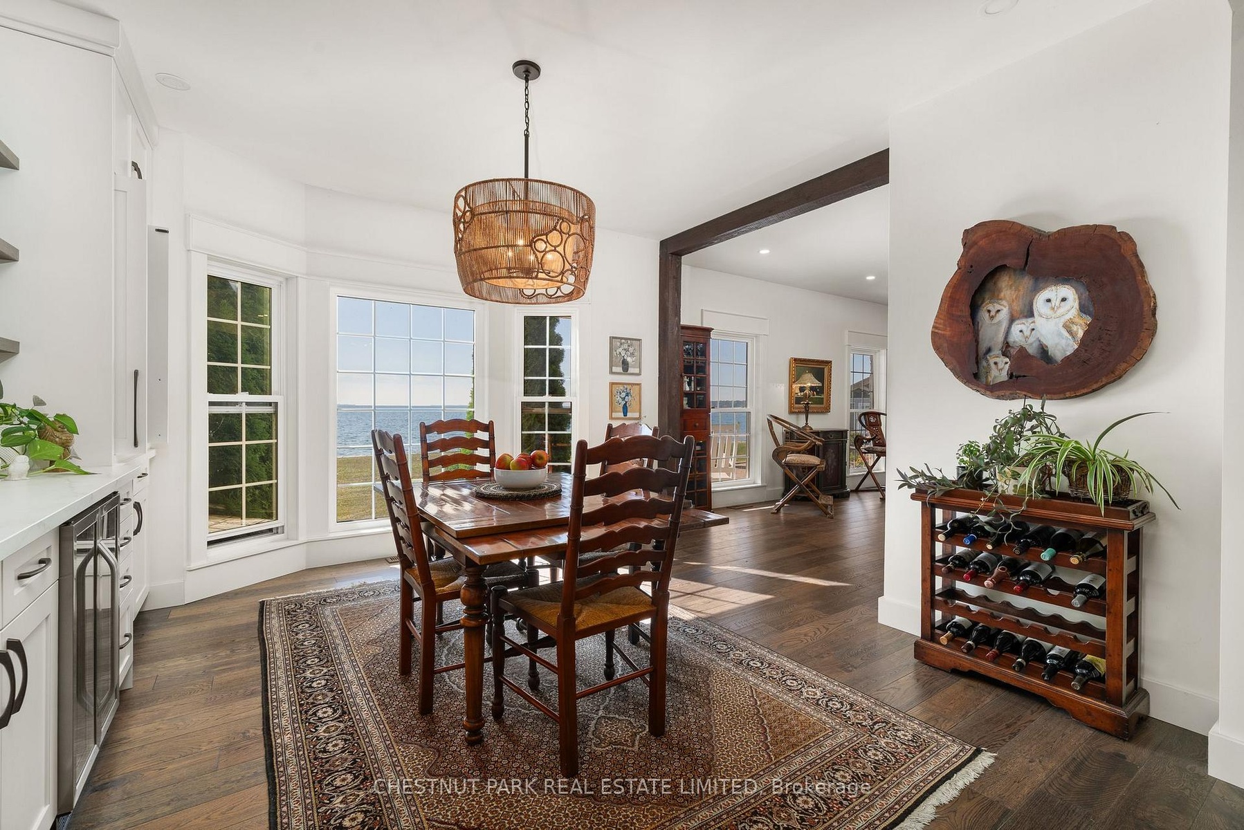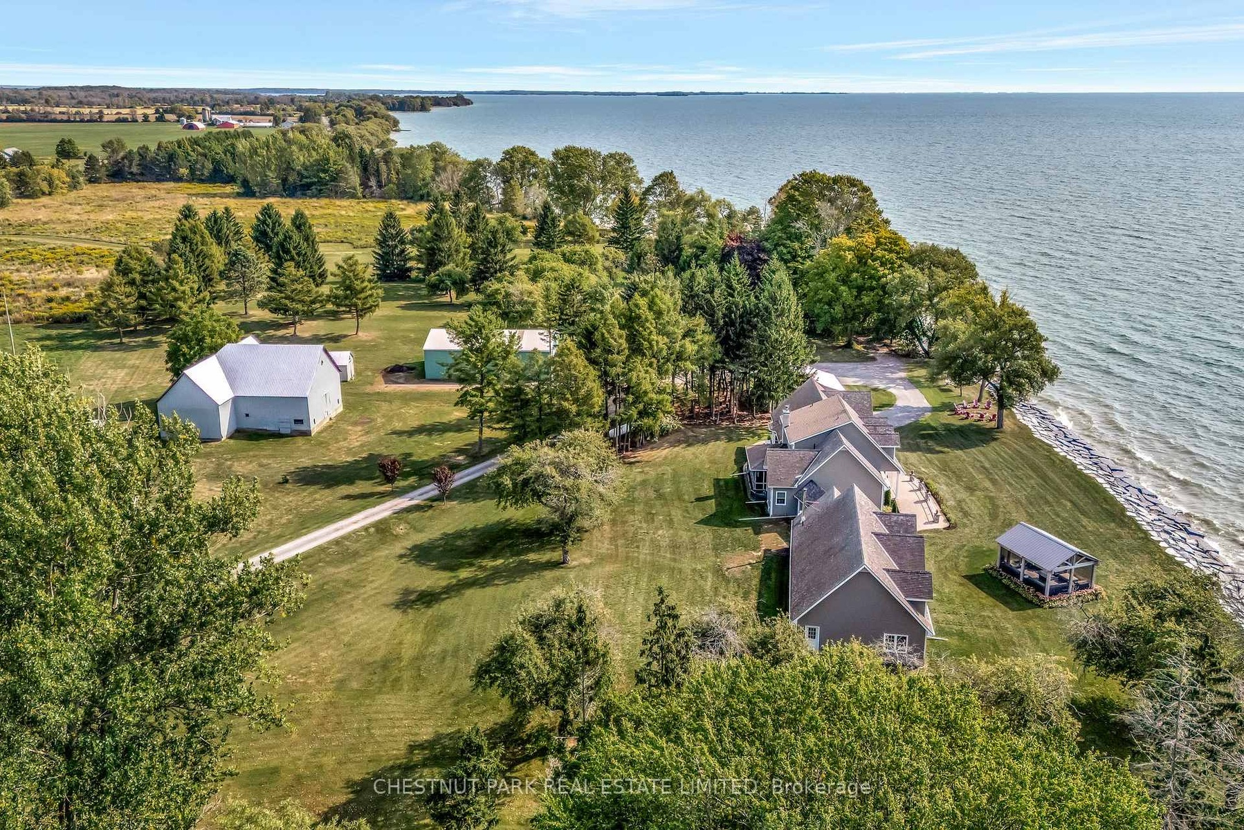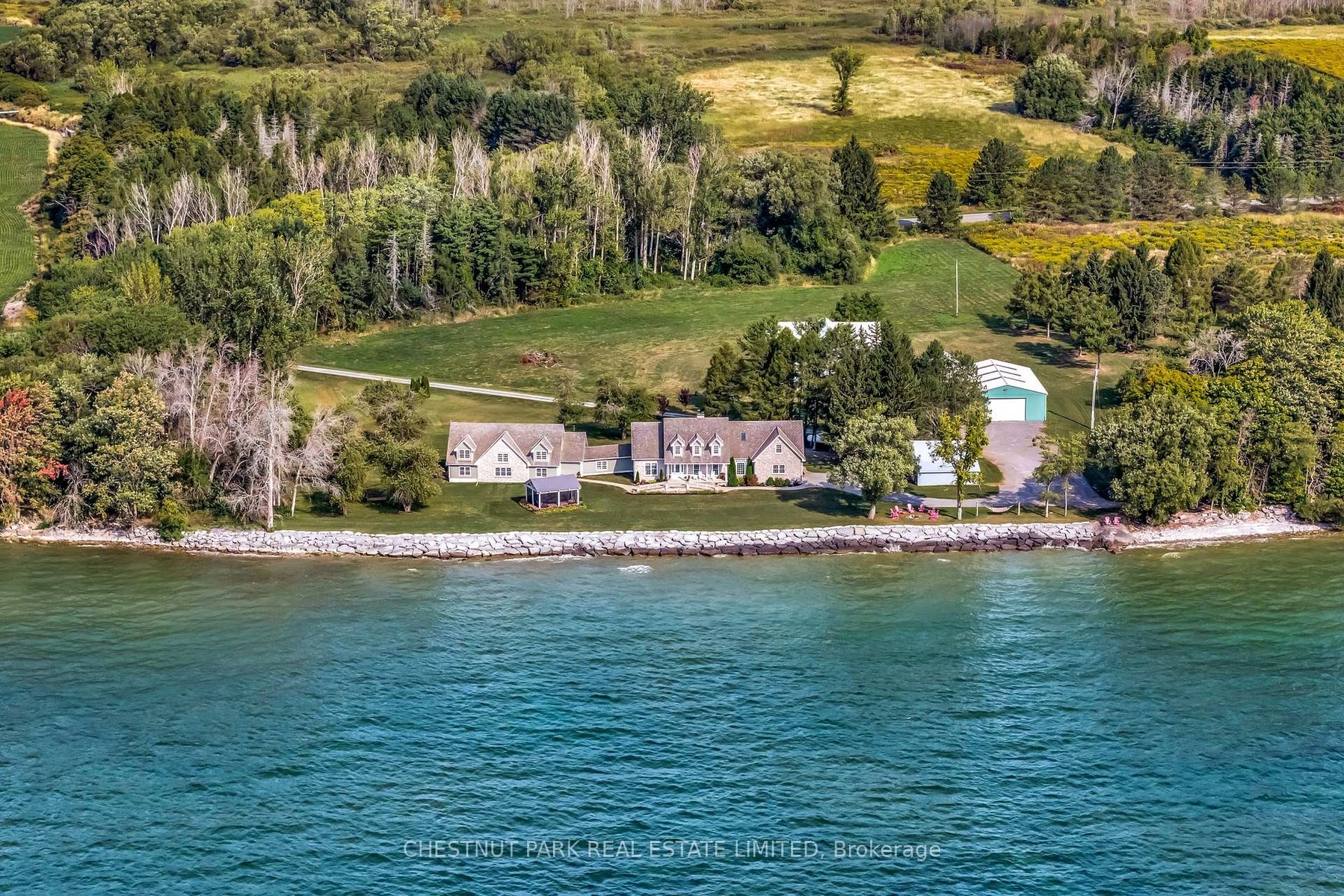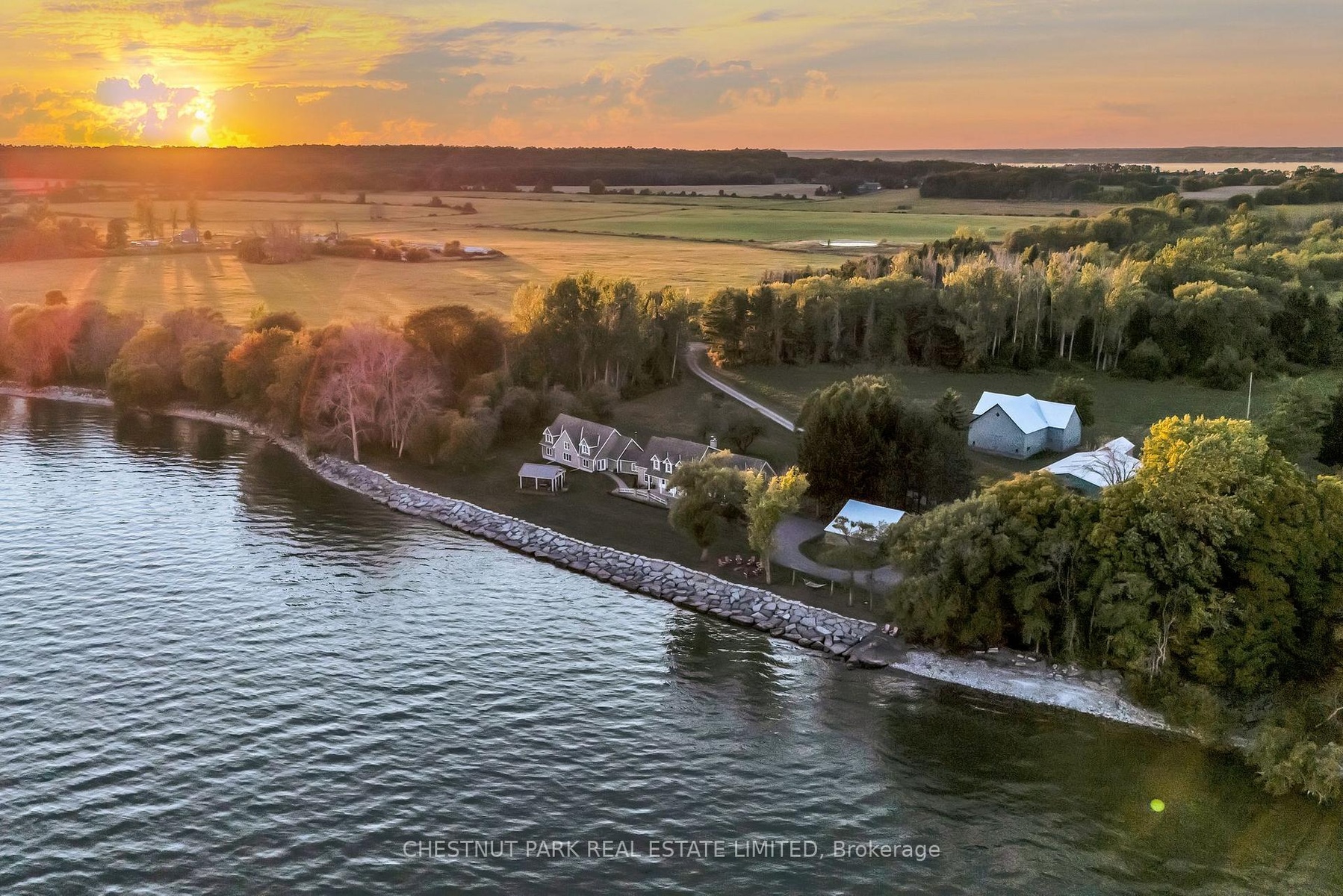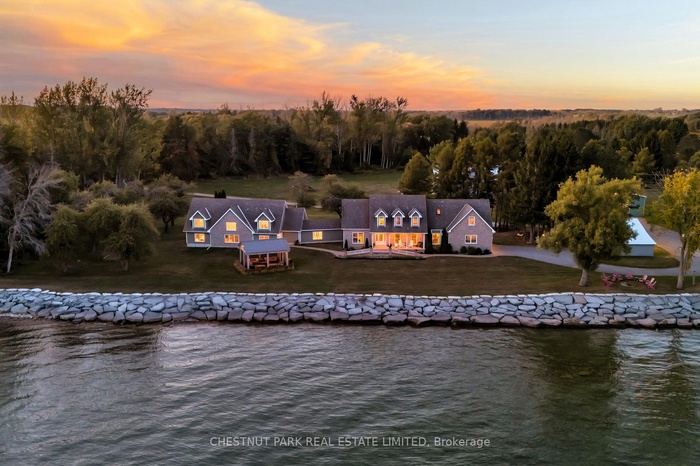 Experience the ultimate waterfront luxury at this stunning estate. Nestled on almost 9 acres of pristine land with breathtaking views of Lake Ontario.This private, secluded retreat offers tranquility and sophistication in every detail, with close to 7,000 sq ft of beautifully renovated living space that blends classic elegance with modern comfort. The home features a brand new gourmet kitchen inspired by mid-century luxury design rich wood accents, Dekton countertops, and abundant storage create a warm, inviting space perfect for entertaining. The open-concept design enhances the sense of spaciousness, with thoughtful transitions from room to room. One of the property's most exceptional features is the retreat space, a separate building connected to the main home by a breezeway. Designed with versatility in mind, this retreat boasts high vaulted ceilings and an expansive layout perfect for gatherings, workshops, or creative pursuits. Adding to the outdoor space, a newly built enclosed pavilion, that can host many guests amidst the beautiful surroundings. The primary suite offers peaceful water views, complemented by three spacious bedrooms upstairs two with en-suite bathrooms. The main floor is warm and inviting, with a wood-burning fireplace and expansive windows framing spectacular lake vistas from every room, as well as a screened-in porch. The estates outdoor spaces include charming barns, apple orchards, and lush landscaping, and creative gardens that will impress and delight. This property is a true sanctuary for both gathering and enjoyment. Living in North Marysburgh combines the best of nature and local charm: explore nearby Waupoos wineries, cideries, and cheese markets; enjoy crystal-clear waters and stunning vistas; and indulge in the relaxed rural lifestyle that makes this area so special. This exceptional property blends privacy, luxury, and functionality an inspiring lakeside retreat designed for both everyday living and memorable entertaining.