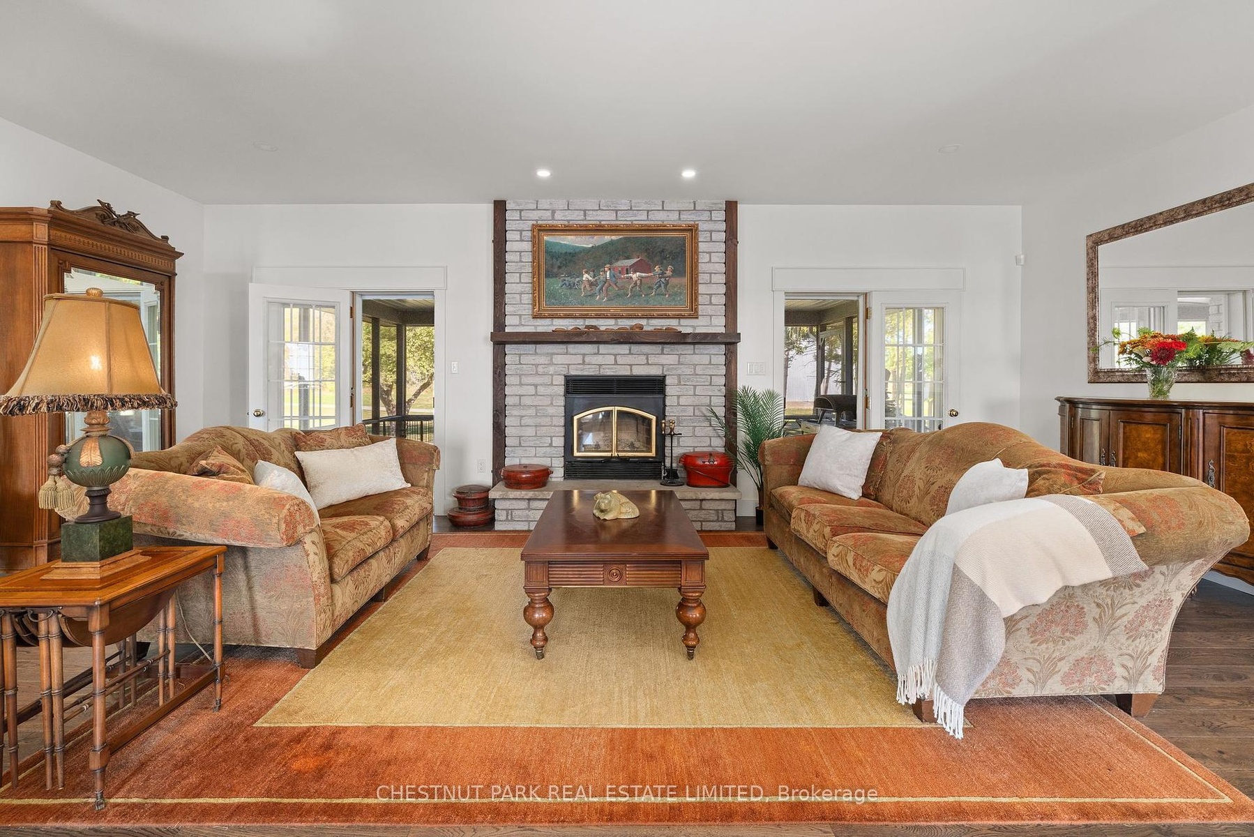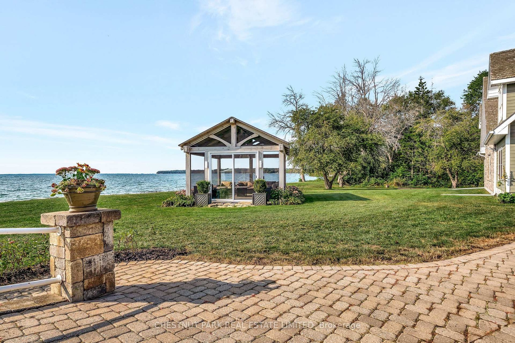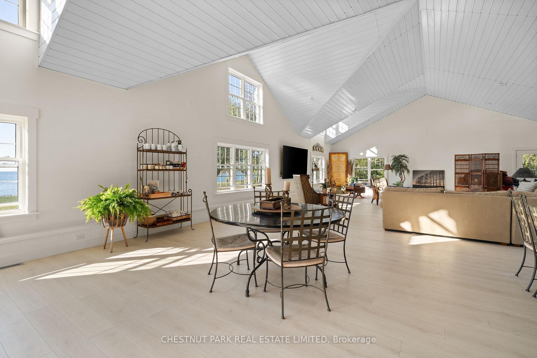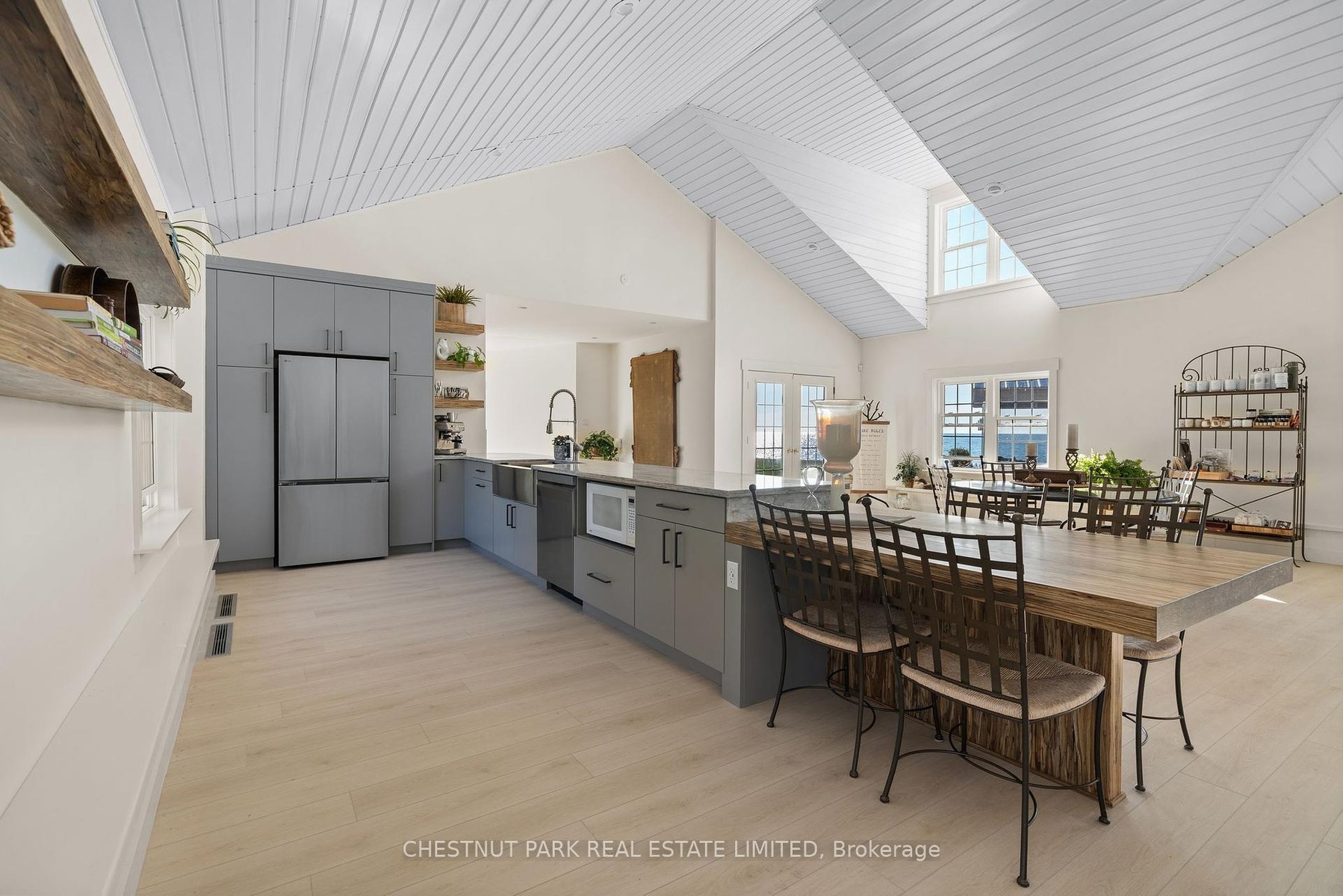 Experience the ultimate waterfront luxury at this stunning estate. Nestled on almost 9 acres of pristine land with breathtaking views of Lake Ontario.This private, secluded retreat offers tranquility and sophistication in every detail, with close to 7,000 sq ft of beautifully renovated living space that blends classic elegance with modern comfort. The home features a brand new gourmet kitchen inspired by mid-century luxury design rich wood accents, Dekton countertops, and abundant storage create a warm, inviting space perfect for entertaining. The open-concept design enhances the sense of spaciousness, with thoughtful transitions from room to room. One of the property's most exceptional features is the retreat space, a separate building connected to the main home by a breezeway. Designed with versatility in mind, this retreat boasts high vaulted ceilings and an expansive layout perfect for gatherings, workshops, or creative pursuits. Adding to the outdoor space, a newly built enclosed pavilion, that can host many guests amidst the beautiful surroundings. The primary suite offers peaceful water views, complemented by three spacious bedrooms upstairs two with en-suite bathrooms. The main floor is warm and inviting, with a wood-burning fireplace and expansive windows framing spectacular lake vistas from every room, as well as a screened-in porch. The estates outdoor spaces include charming barns, apple orchards, and lush landscaping, and creative gardens that will impress and delight. This property is a true sanctuary for both gathering and enjoyment. Living in North Marysburgh combines the best of nature and local charm: explore nearby Waupoos wineries, cideries, and cheese markets; enjoy crystal-clear waters and stunning vistas; and indulge in the relaxed rural lifestyle that makes this area so special. This exceptional property blends privacy, luxury, and functionality an inspiring lakeside retreat designed for both everyday living and memorable entertaining.