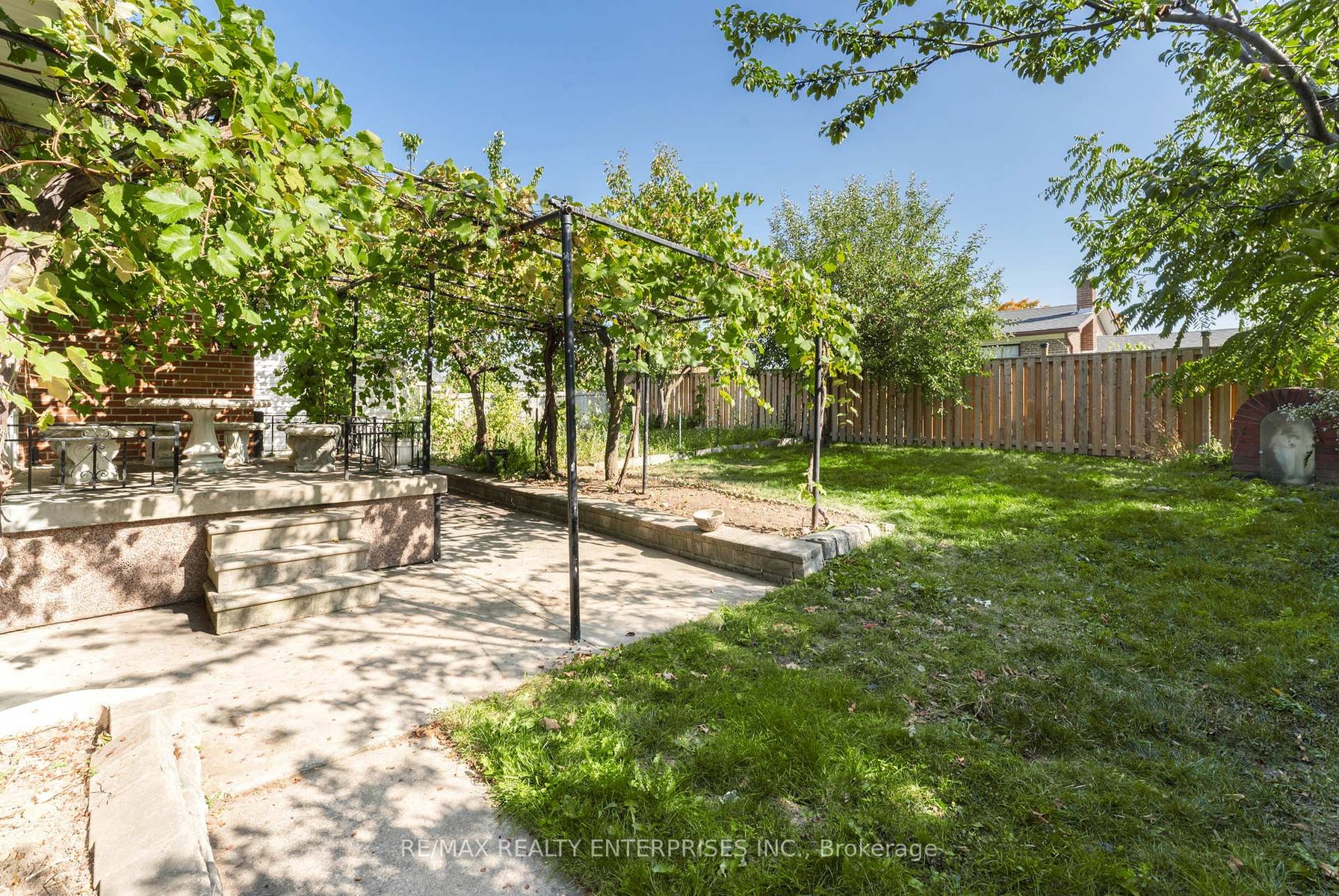 Welcome to this charming 3-level side-split, set on a large lot with a gated front patio for your privacy. Freshly painted and featuring a functional layout, this home offers plenty of natural light and character throughout. Inside, you're greeted by a spacious entryway with high ceilings and original hardwood floors that can be refinished to your taste. The combined living and dining area flows seamlessly to a walkout, opening onto an expansive backyard with mature grapevines and apple trees, perfect for relaxing or entertaining. The home features generously sized bedrooms and an upgraded ensuite bathroom. The lower level offers in-law suite potential with an additional bedroom complete with a closet, built-in shelving, and a large window. A spacious recreation/living room area and extra storage add even more versatility. Major updates include: Ensuite Bathroom (2025), Air Conditioner & Furnace (2023), and New Roof (2025). This is an excellent opportunity to make a well-maintained property your own and tailor it to your vision!