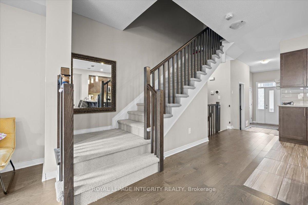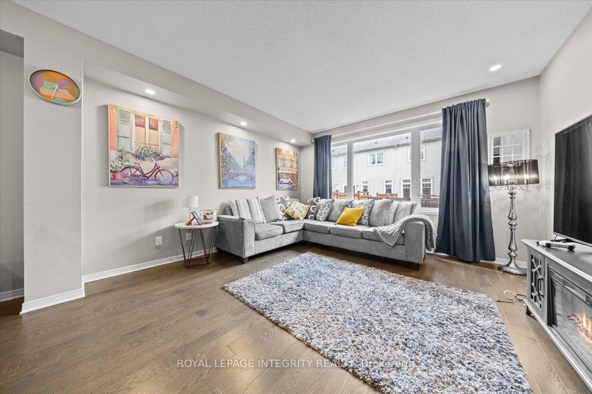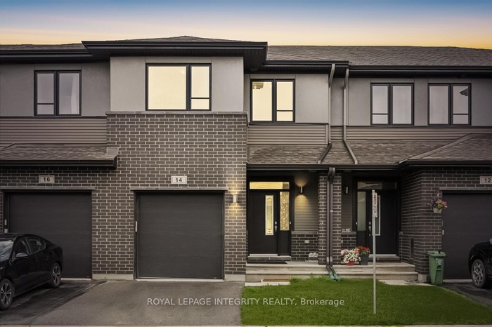 Welcome to 14 Hackney Private nestled in the heart of Stittsville, this spacious 3 bed + den, 3.5-bath townhome spans approximately 2,230sqft + 378sqft fully finished basement in a sought-after private enclave. The open concept main floor features beautiful hardwood floors, 9 ceilings, stainless steel appliances, a walk-in pantry, and a chic backsplash. Upstairs, unwind in the large den next to the generous master suite with walk-in closet, double-vanity ensuite, soaker tub, and glass shower. Two additional bedrooms and a main bath. The fully finished basement includes a fourth bathroom ideal for guests, home office, or extra living space. Located next to parks, trails, schools and essential amenities, this location offers it all! Don't miss the chance to make this your next home!