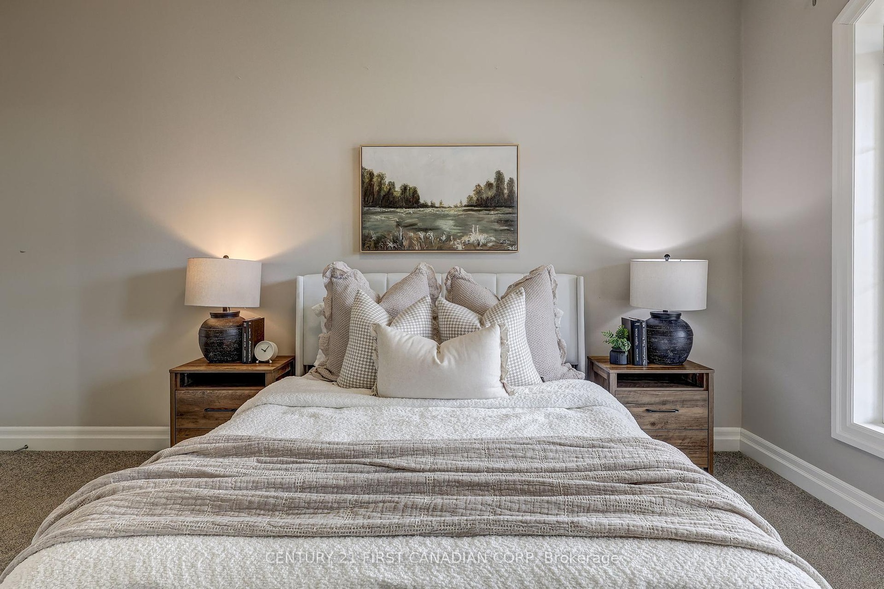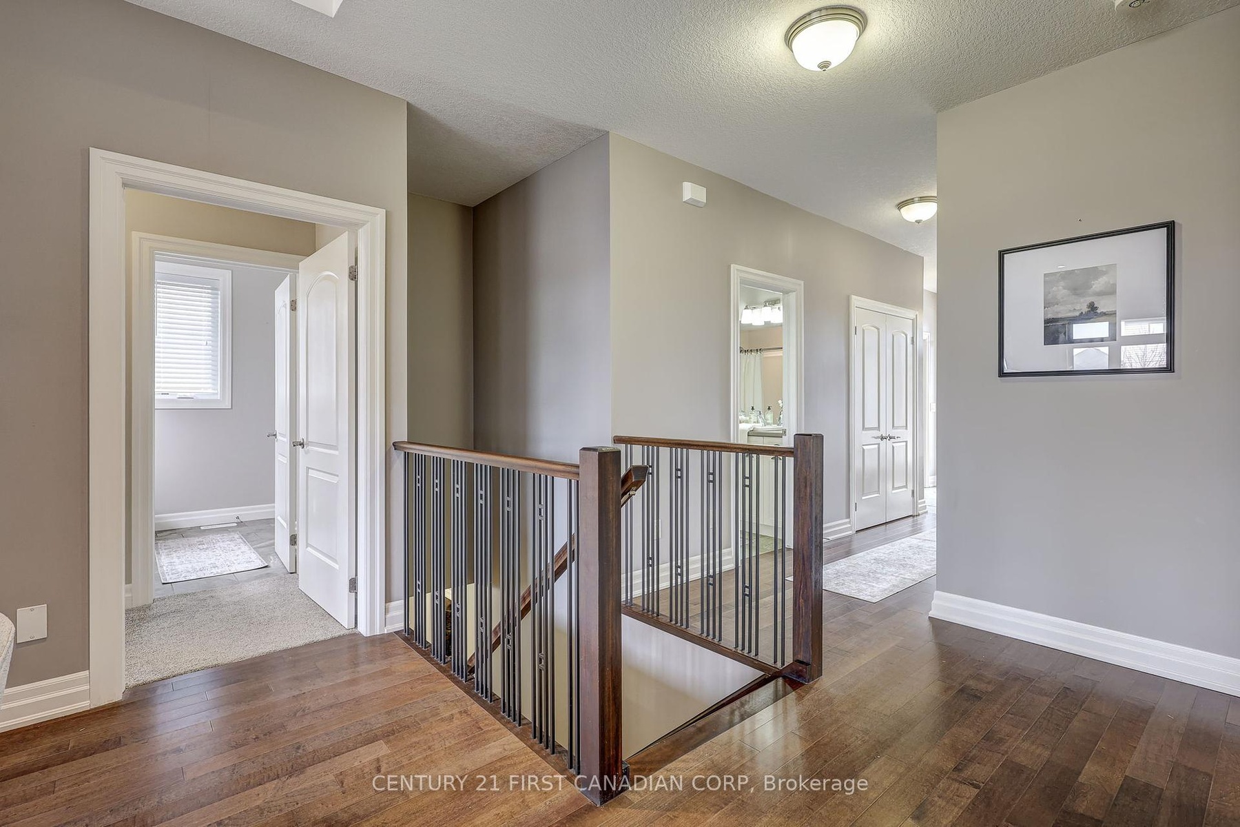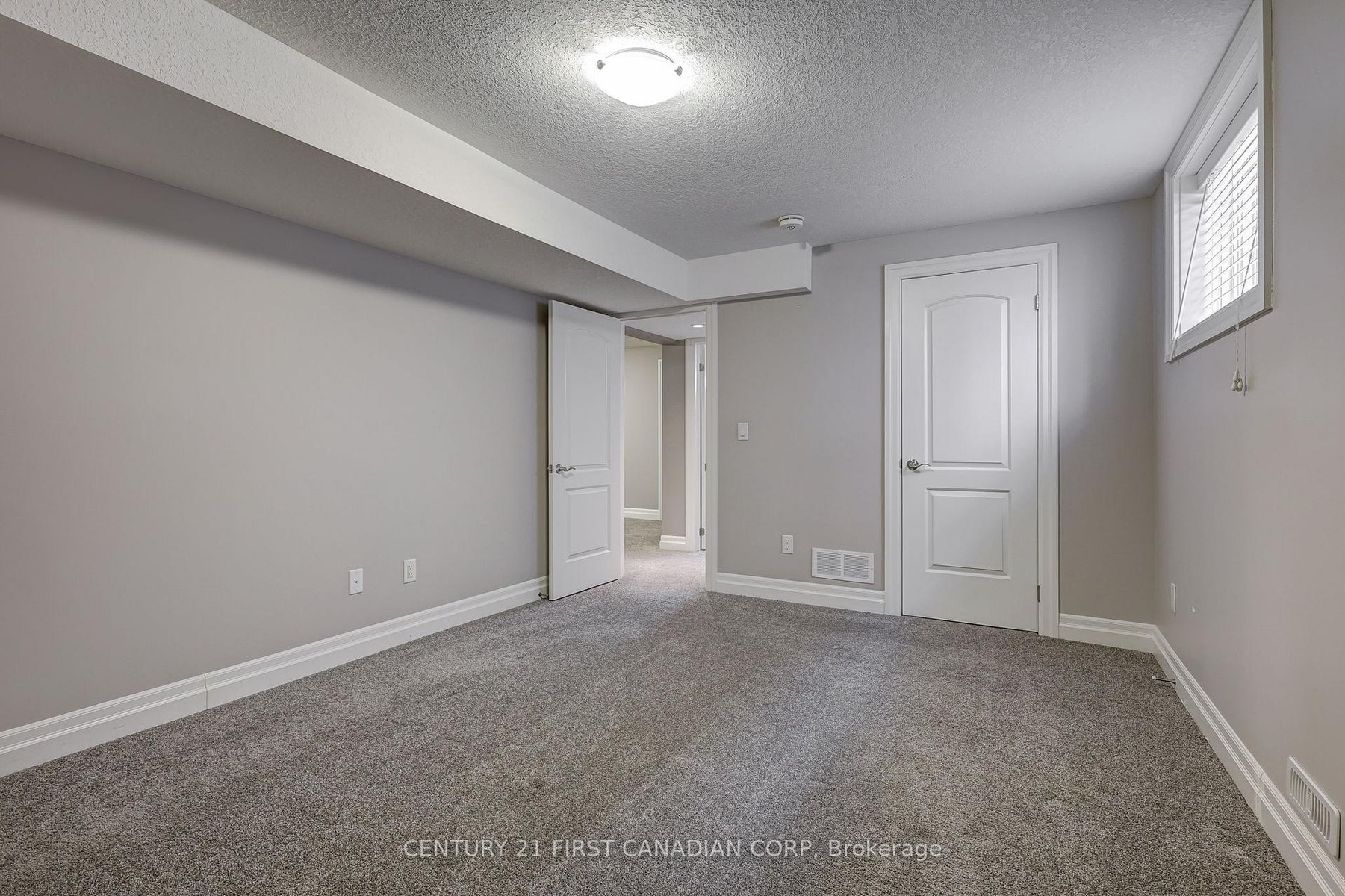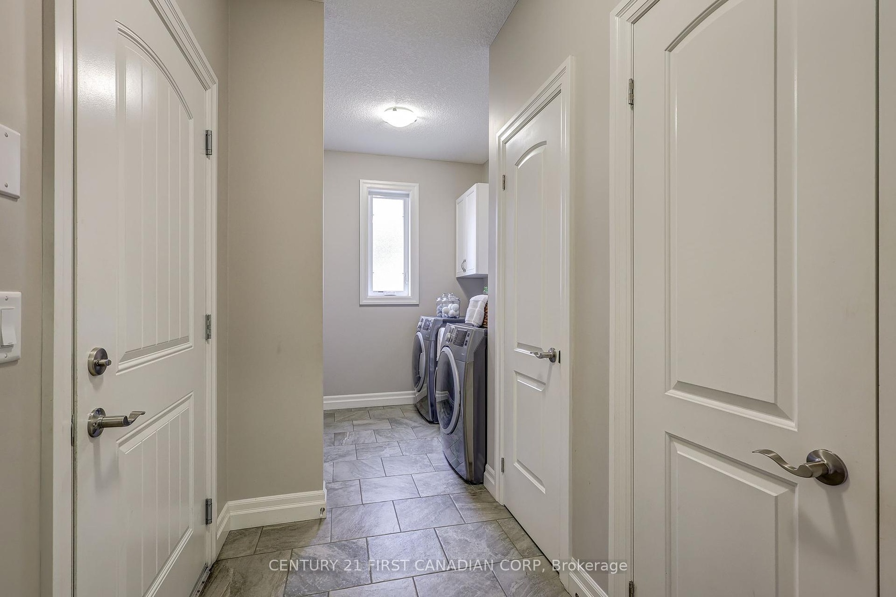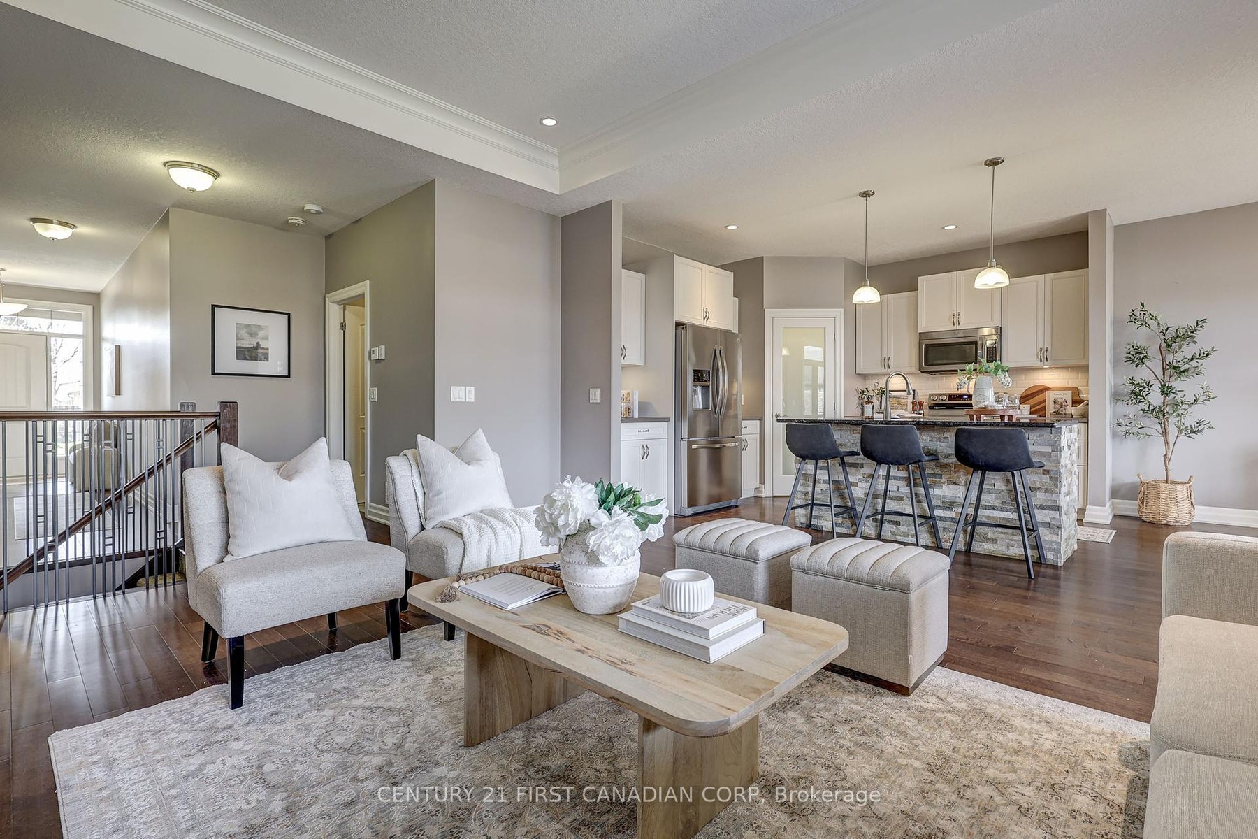 Incredible Value in This Former Model Ranch! Just 10-15 minutes between London and Strathroy, this beautifully maintained all-brick bungalow offers over 1,670 sq ft of luxury living on the main floor. The home features a spacious, open-concept layout with 10-ft tray ceilings, an inviting gas fireplace, and oversized windows that flood the space with natural light. The custom kitchen is a chefs dream - complete with granite countertops, stylish backsplash, under-cabinet lighting, and a large walk-in pantry. The well-appointed 2+1 bedrooms and 3 full bathrooms include a spacious primary suite with a walk-in closet and private ensuite. The professionally finished lower level adds (1135 sq ft) incredible living space with a full bedroom, full bathroom, large windows, and excellent lighting perfect for guests or extended family. Enjoy fully landscaped grounds, a fully fenced backyard, and fantastic outdoor living space including a covered front porch, a large deck, and a custom-built shed. Located in a quiet, family-friendly neighborhood just minutes from the 402, schools, parks, and local amenities. This move-in-ready home offers exceptional value - dont miss this opportunity! One call and you're in! Note: Low property taxes.