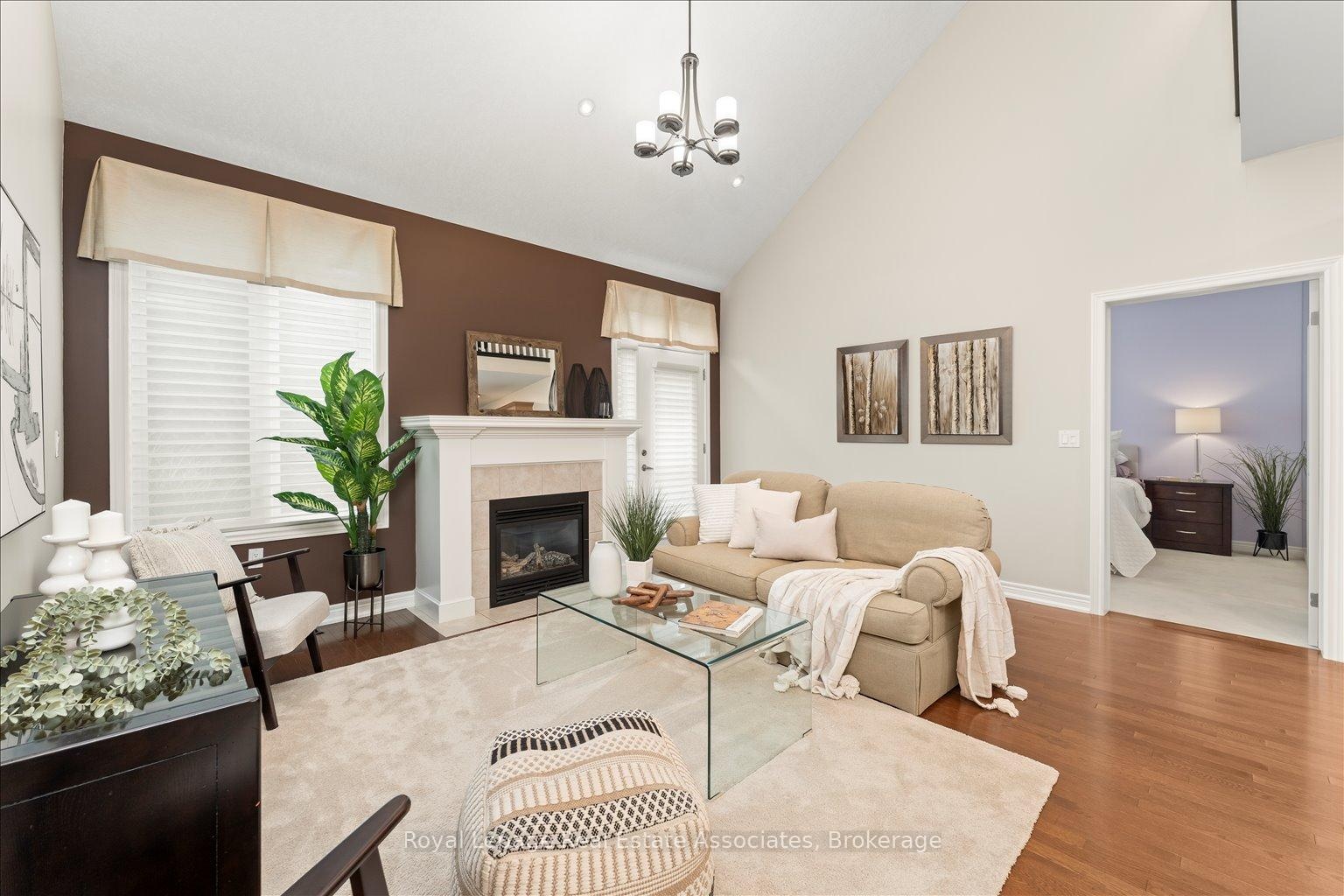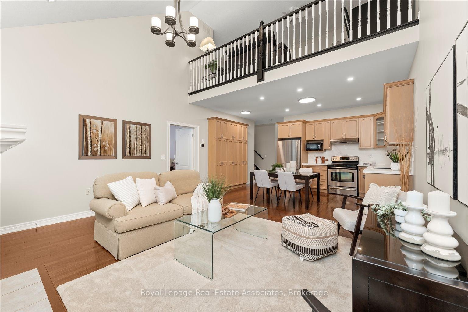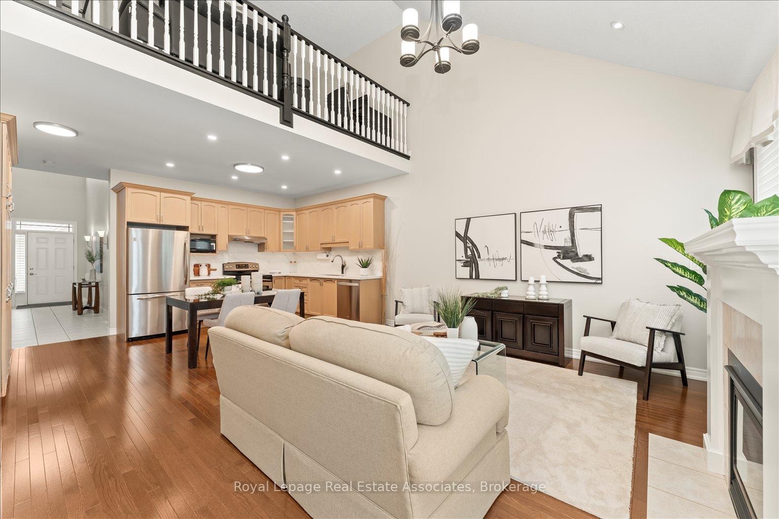 Beautifully maintained bungaloft in the highly sought-after Villages of Brantwell, a mature lifestyle community known for its welcoming atmosphere and convenient location. This thoughtfully designed home features an open-concept kitchen, dining, and living area with hardwood floors, cathedral ceilings, cozy fireplace and plenty of natural light. The kitchen is highlighted by updated counters, a stylish backsplash, pantry storage, and a new dishwasher (2025). The main-floor primary suite offers a private ensuite and a large walk-in closet, providing ease of one-level living as well as an additional bedroom perfect for guests or as your private den. Upstairs, the loft-style family room offers versatile space, complemented by an additional bedroom and an updated 4 piece washroom. Step outside to your private backyard with a custom patio, perfect for relaxing or entertaining on warm summer nights. A single-car garage adds everyday convenience. Residents of Brantwell enjoy access to a community clubhouse for social gatherings and are just minutes to Tansley Woods, parks, shops, restaurants, and major highways, combining comfort at home with a vibrant lifestyle.