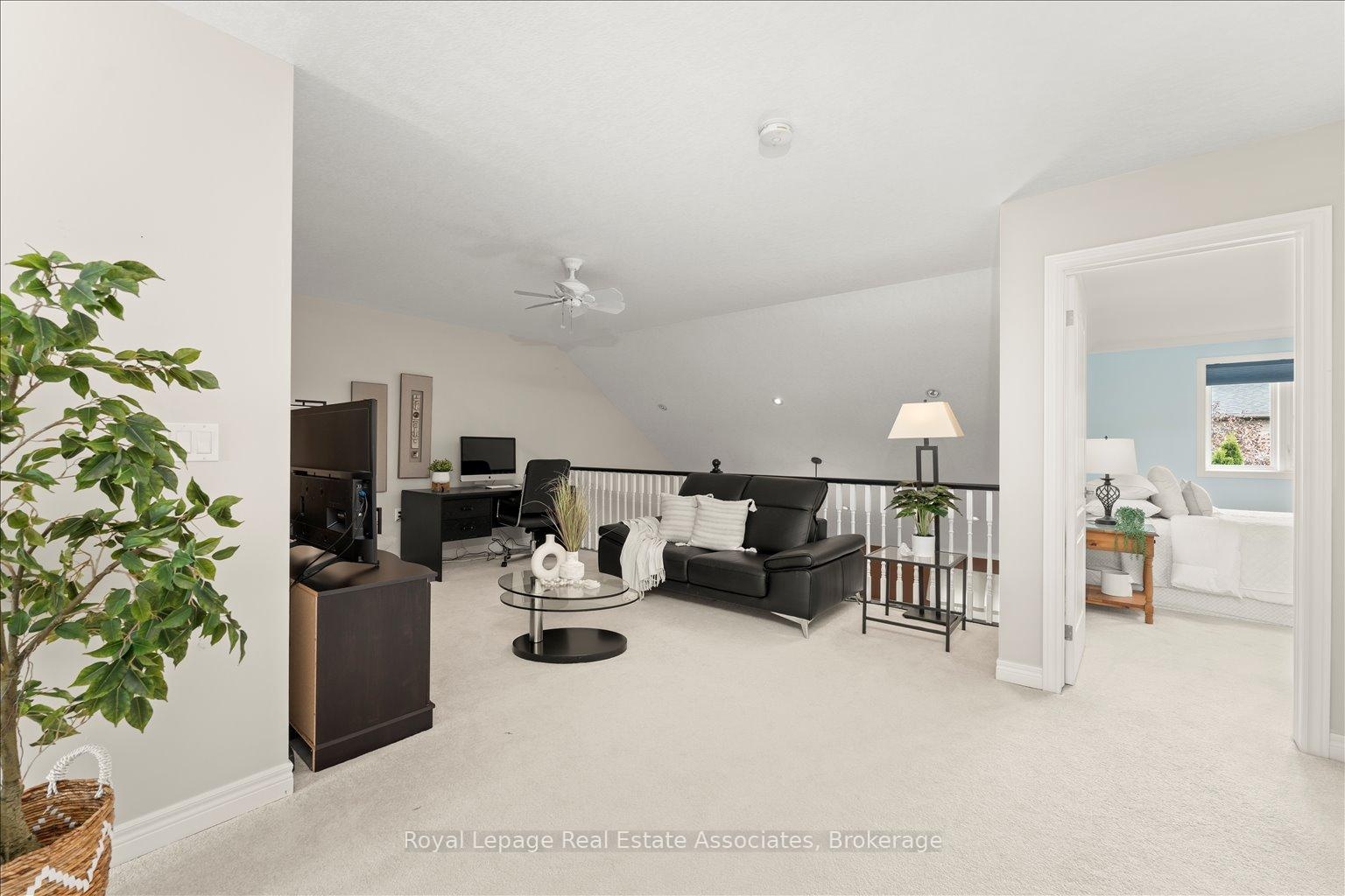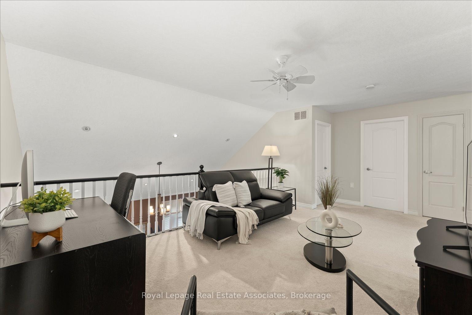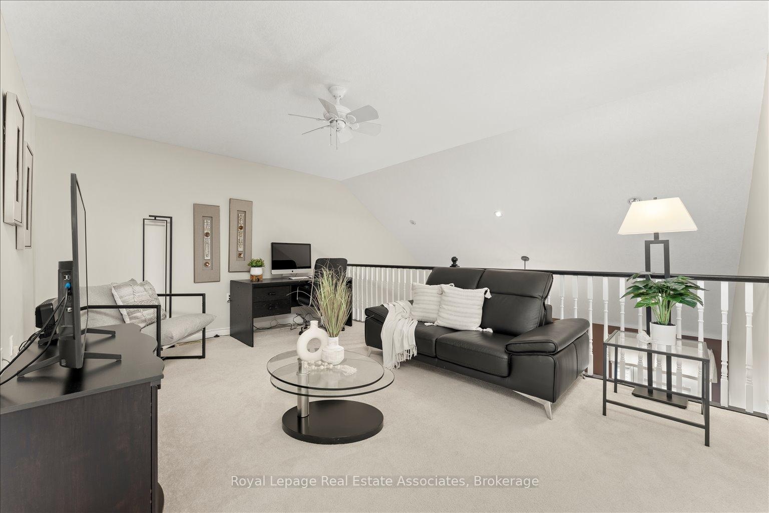 Beautifully maintained bungaloft in the highly sought-after Villages of Brantwell, a mature lifestyle community known for its welcoming atmosphere and convenient location. This thoughtfully designed home features an open-concept kitchen, dining, and living area with hardwood floors, cathedral ceilings, cozy fireplace and plenty of natural light. The kitchen is highlighted by updated counters, a stylish backsplash, pantry storage, and a new dishwasher (2025). The main-floor primary suite offers a private ensuite and a large walk-in closet, providing ease of one-level living as well as an additional bedroom perfect for guests or as your private den. Upstairs, the loft-style family room offers versatile space, complemented by an additional bedroom and an updated 4 piece washroom. Step outside to your private backyard with a custom patio, perfect for relaxing or entertaining on warm summer nights. A single-car garage adds everyday convenience. Residents of Brantwell enjoy access to a community clubhouse for social gatherings and are just minutes to Tansley Woods, parks, shops, restaurants, and major highways, combining comfort at home with a vibrant lifestyle.