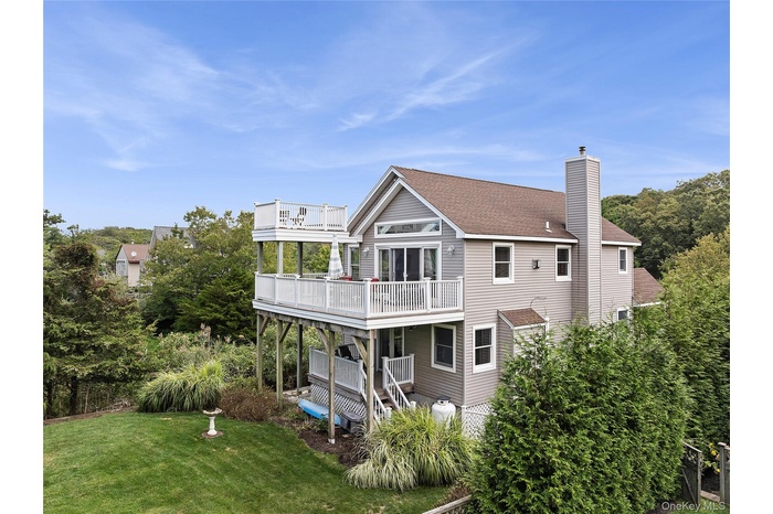 Located in Peconic near Goldsmith Inlet and the Long Island Sound, this post-modern 4-bedroom home blends modern comfort with the essence of coastal living. The open living, dining, and kitchen areas extend to a balcony that showcases beautiful sunsets and water views, creating a seamless indoor-outdoor experience.