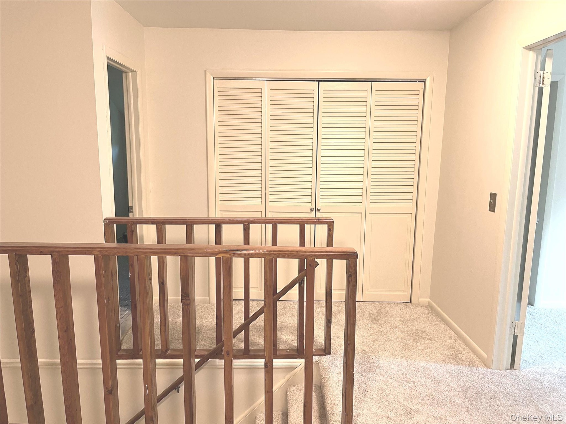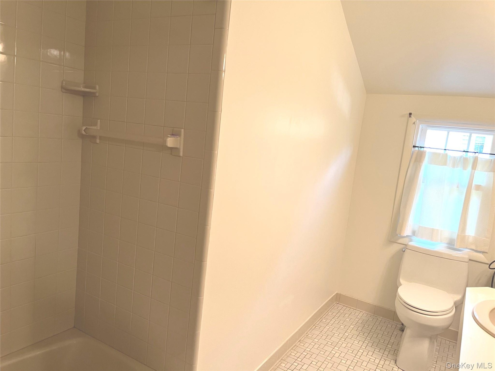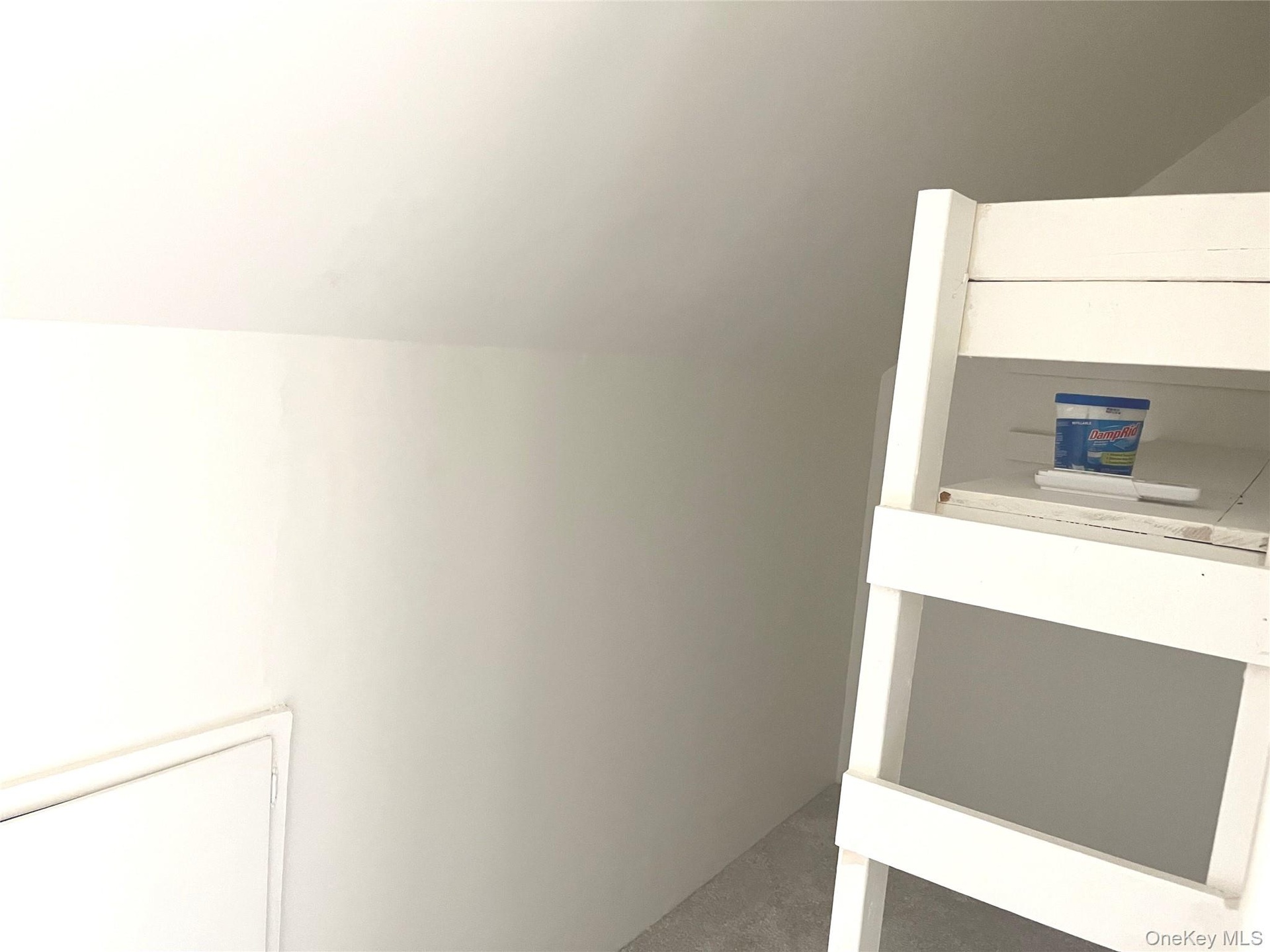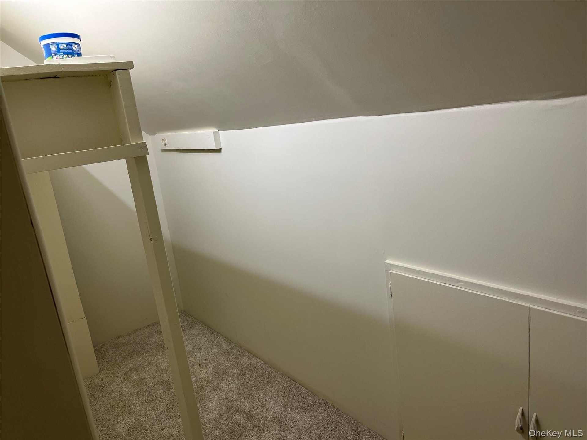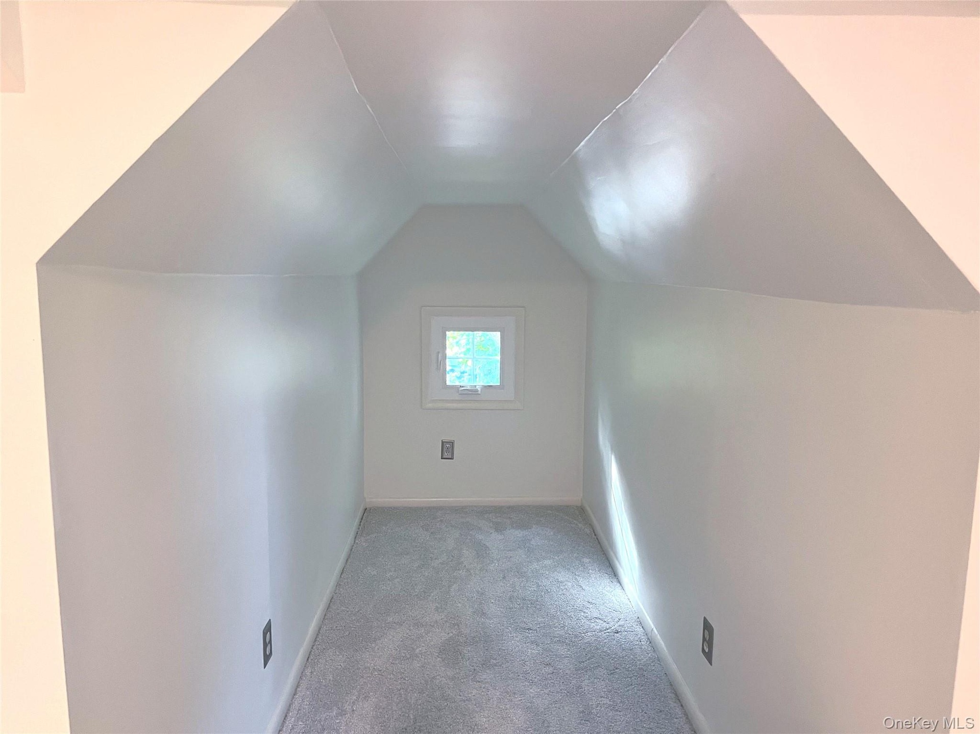 - Additional living space featuring light colored carpet, vaulted ceiling, ceiling fan, and a wall mounted air conditioner